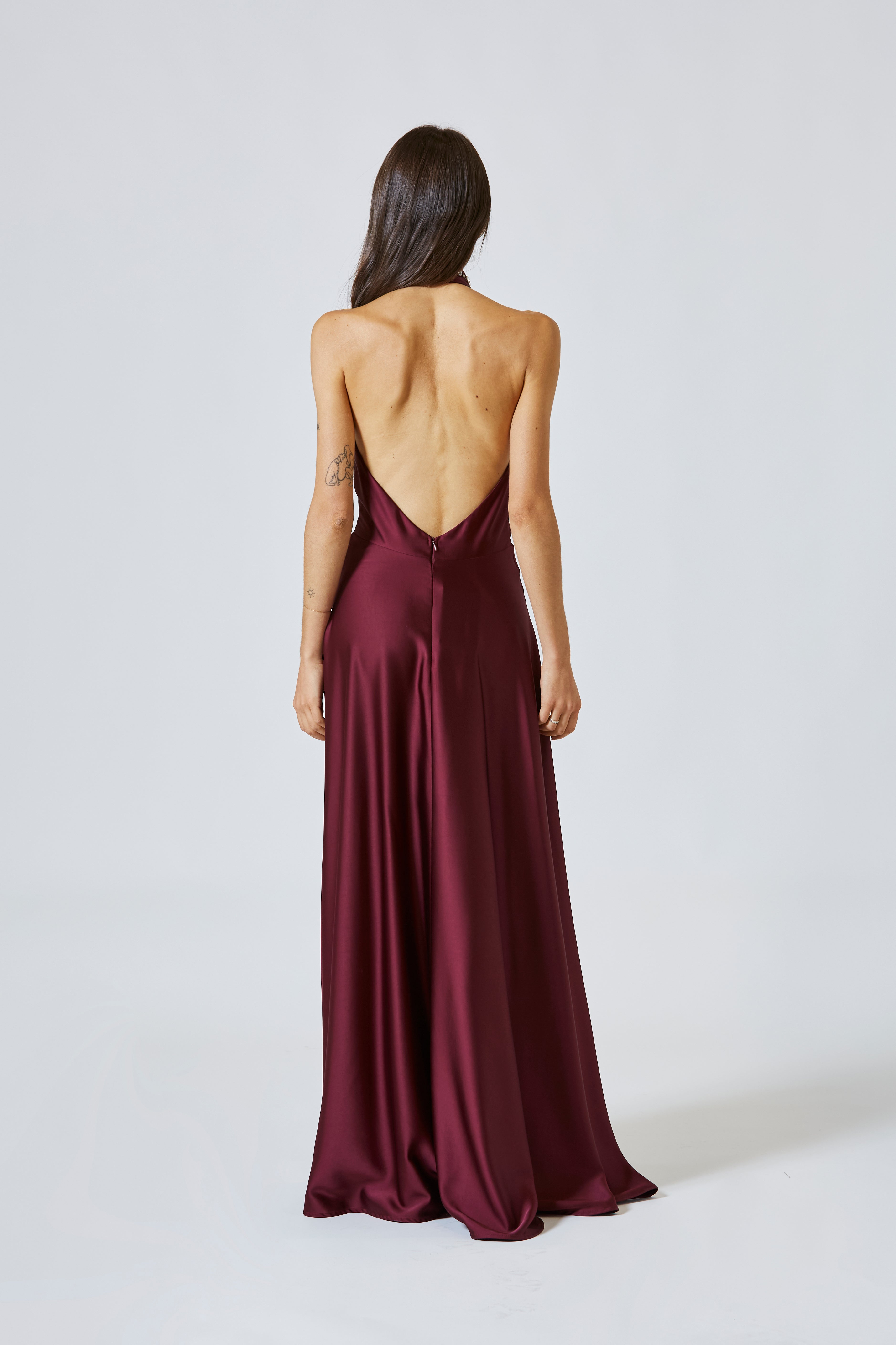 Scivola sul corpo come un sussurro di seta, come la notte che cade lenta su una terrazza vista mare. Il raso cattura la luce, la accoglie, la riflette con quella morbidezza liquida che accarezza la pelle, accende i riflessi, sfiora senza costringere.