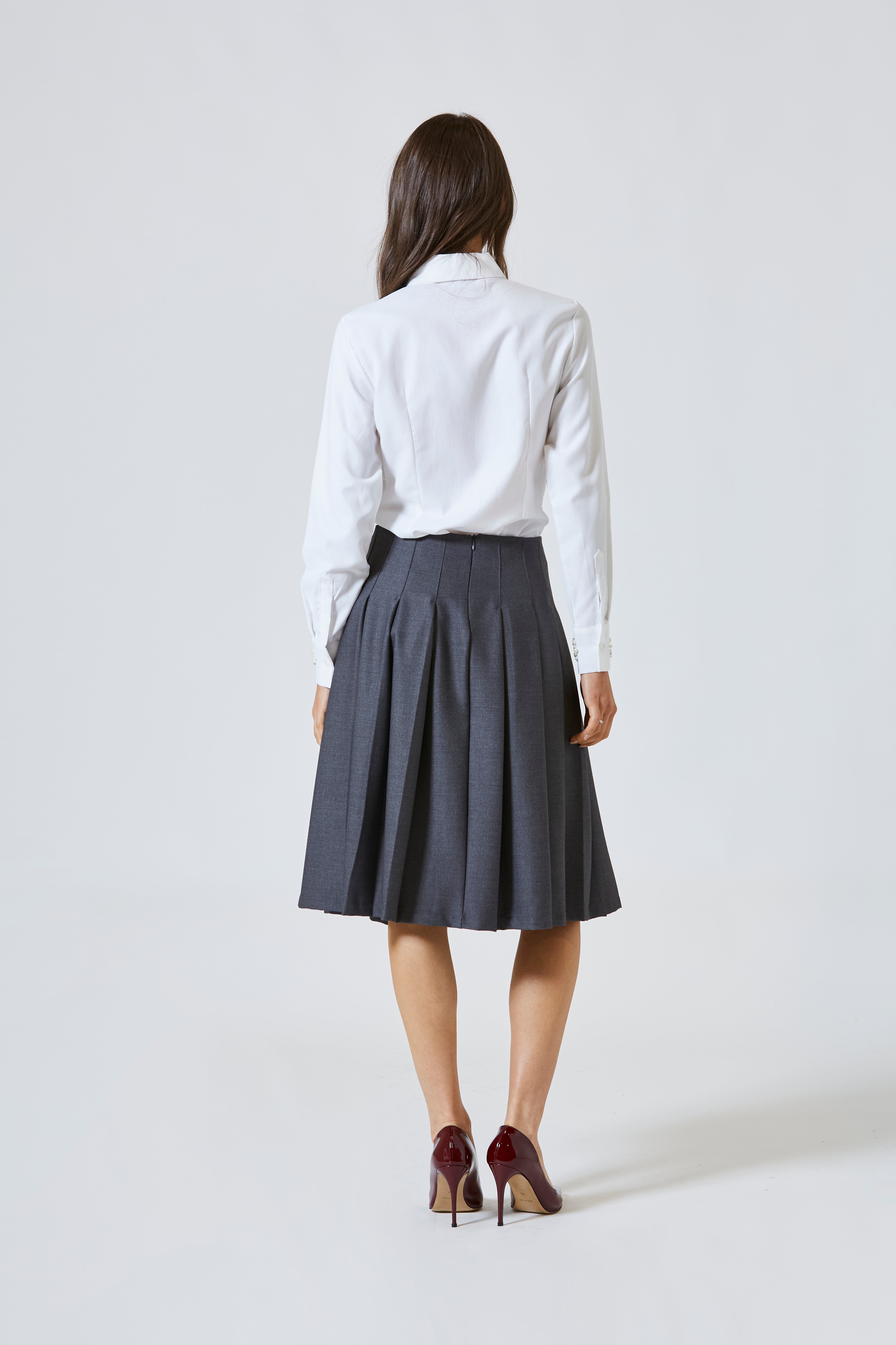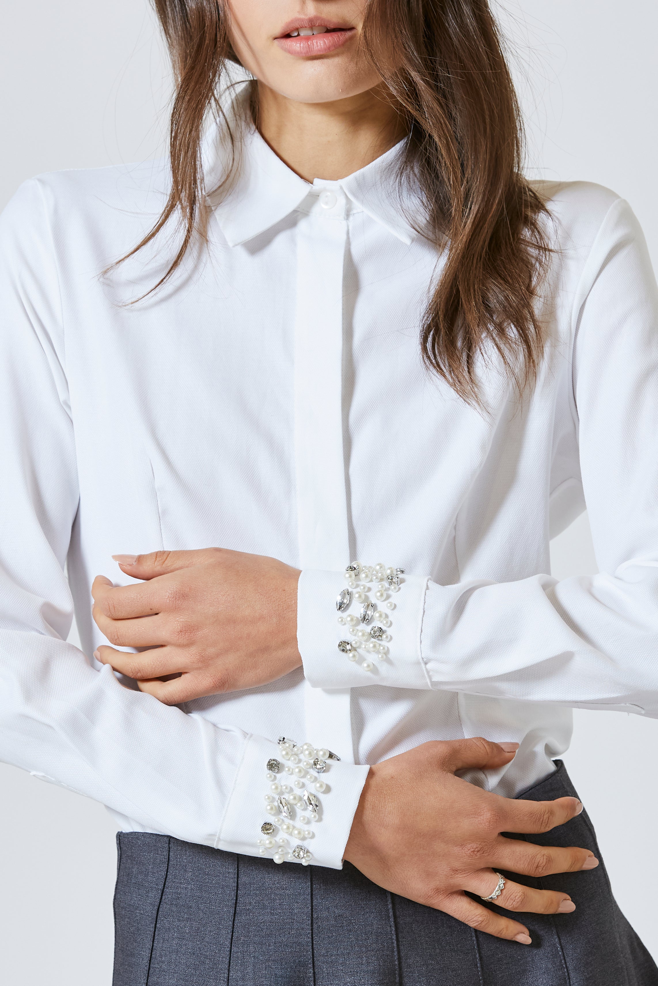 È una camicia che racconta l’equilibrio tra rigore e romanticismo, tra praticità e sogno. Perfetta per dare un tocco speciale a un outfit da ufficio, ideale anche per la sera se abbinata a un pantalone sartoriale, una longuette in ecopelle o una gonna gioiello.