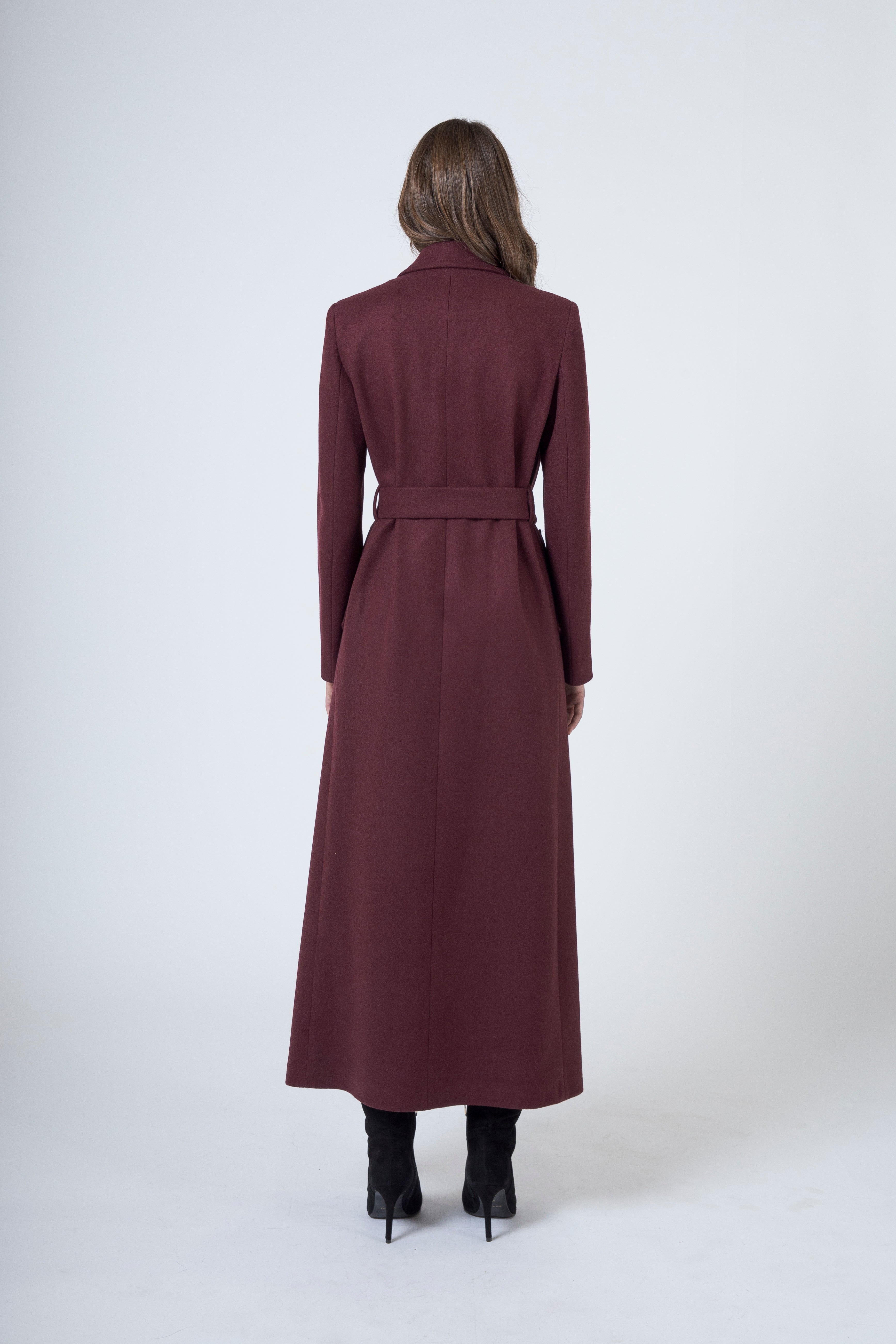 Il paricollo accarezza il collo come un gesto di poesia silenziosa, mentre le maniche lunghe scivolano lungo le braccia con la leggerezza di un pensiero che fluttua nell’aria. La lunghezza dell’abito avvolge la figura come un respiro lento, elegante, un invito a muoversi con grazia, consapevole di ogni passo.