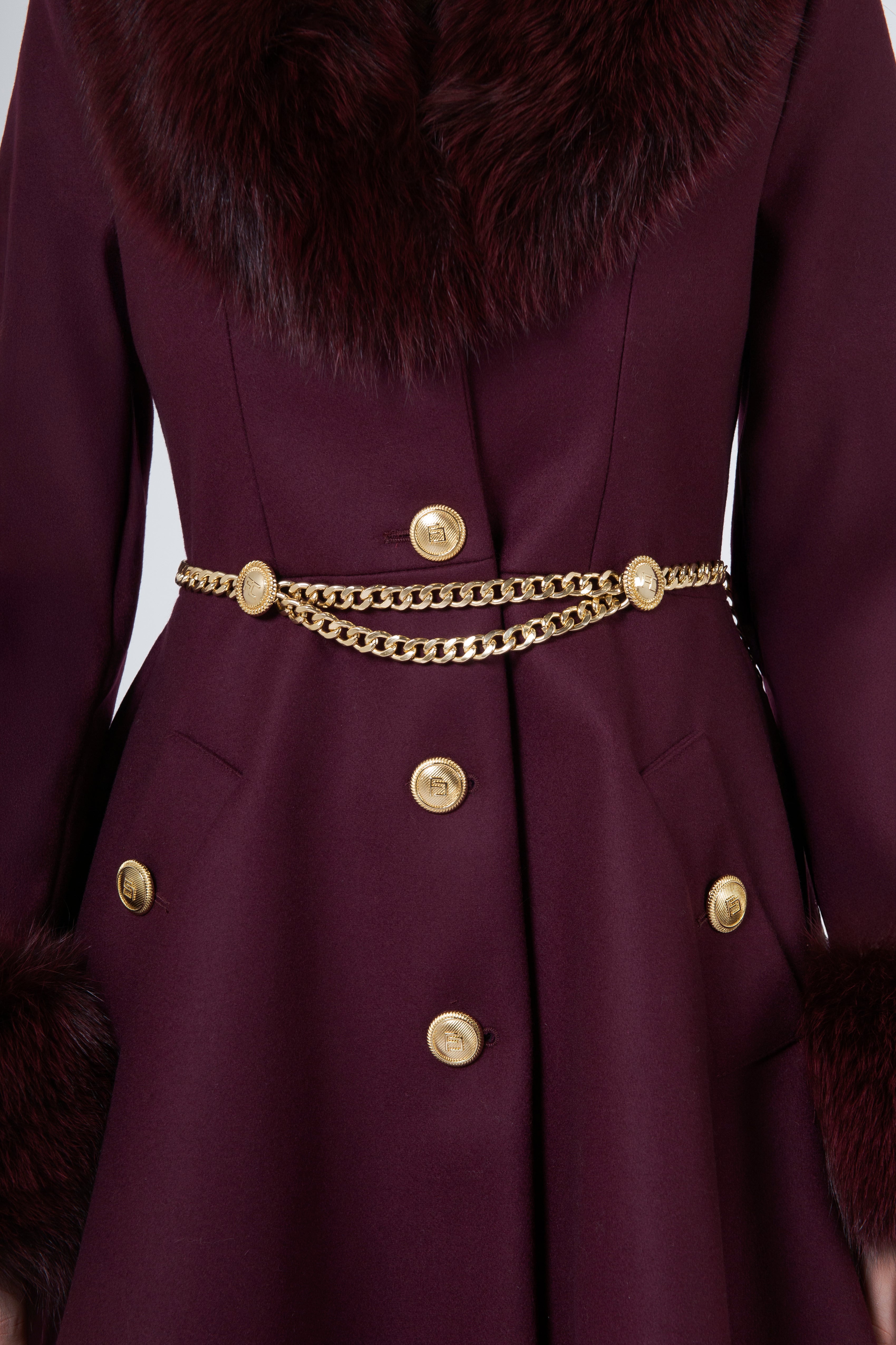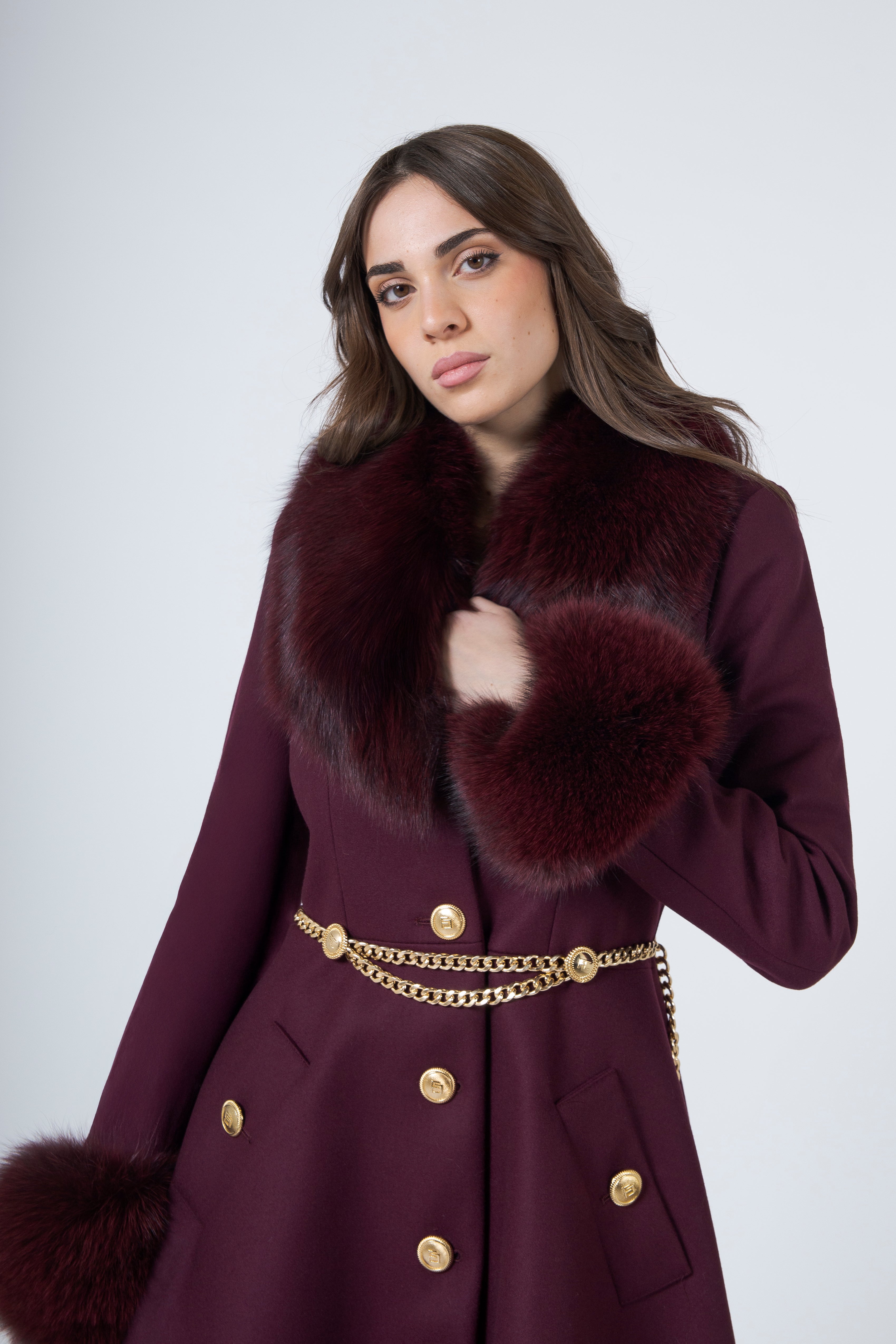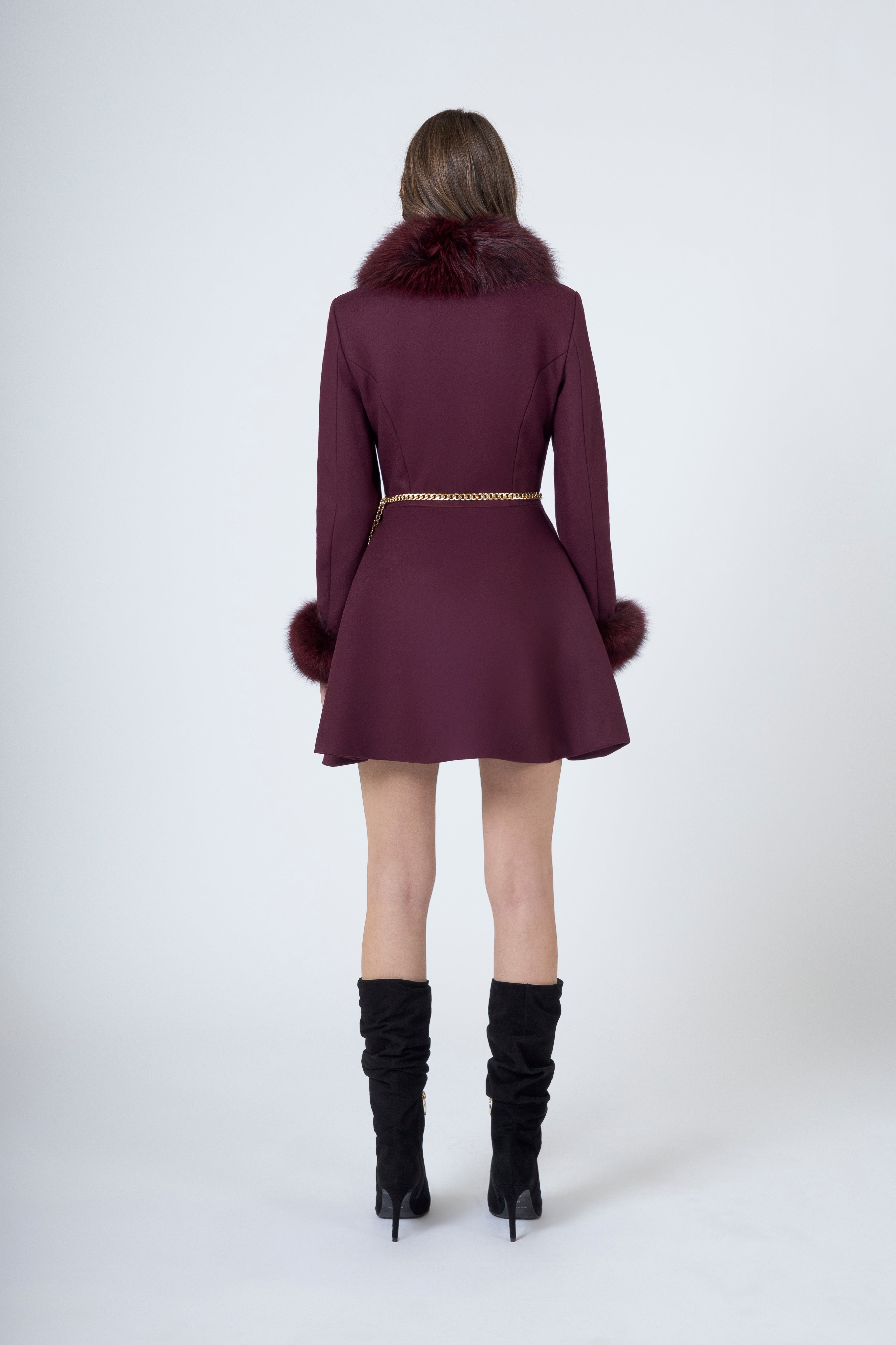Immagina un piccolo gioiello sartoriale, un capospalla che sembra uscito da una fiaba invernale: il cappotto corto svasato a bambolina, in lana, con pelliccia sul collo e manopole coordinate è un invito a vivere il freddo con grazia, leggerezza ed elegante delicatezza.