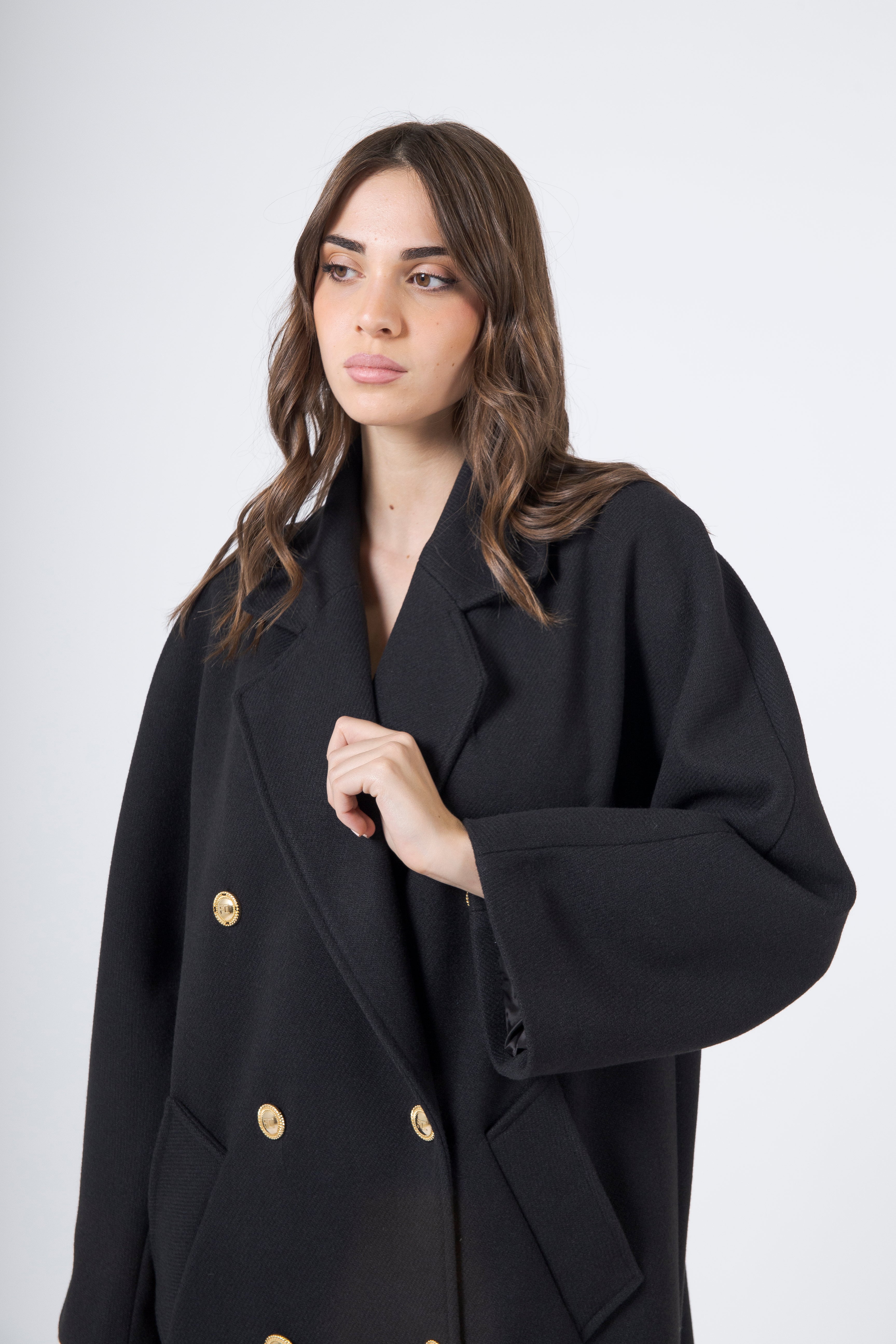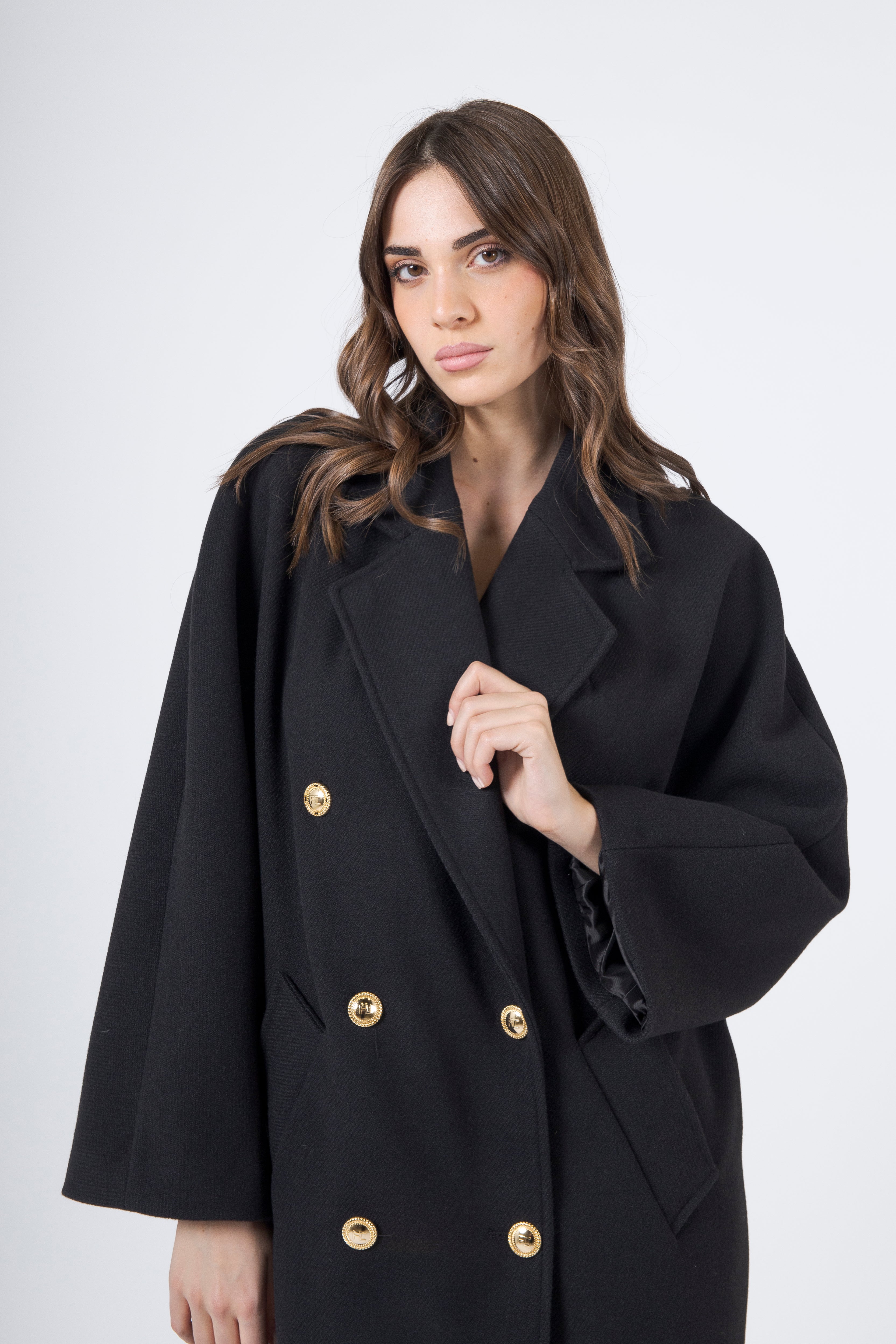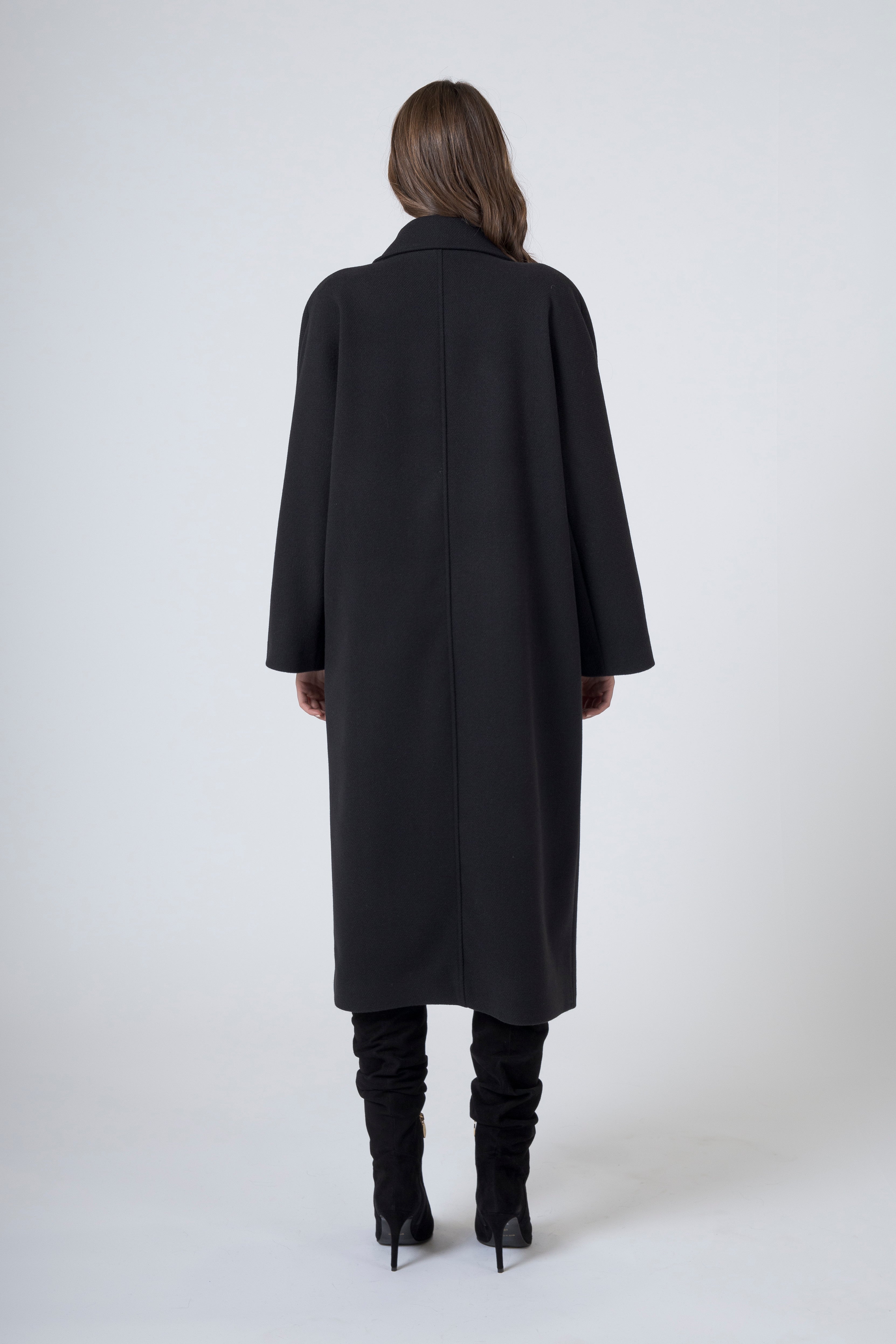 La sua linea over, morbida e importante, avvolge come un mantello urbano, dando la sensazione di muoversi dentro una scena elegante, fatta di strade lucide di pioggia e luci che si riflettono nei vetri delle vetrine. È un cappotto che non stringe, non impone: ti lascia respirare, ti lascia spazio, ti lascia essere. E proprio in questa libertà nasce la sua eleganza.