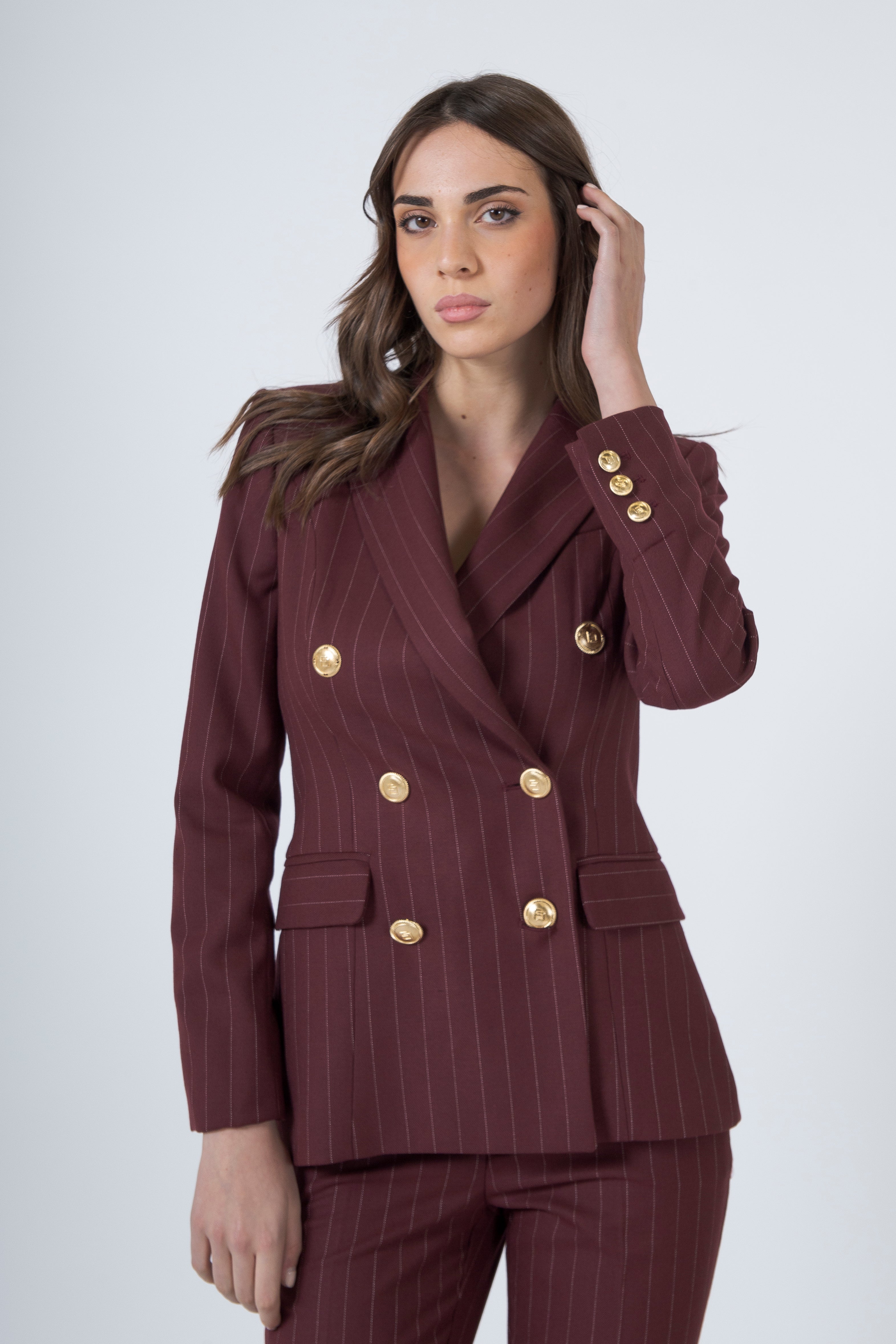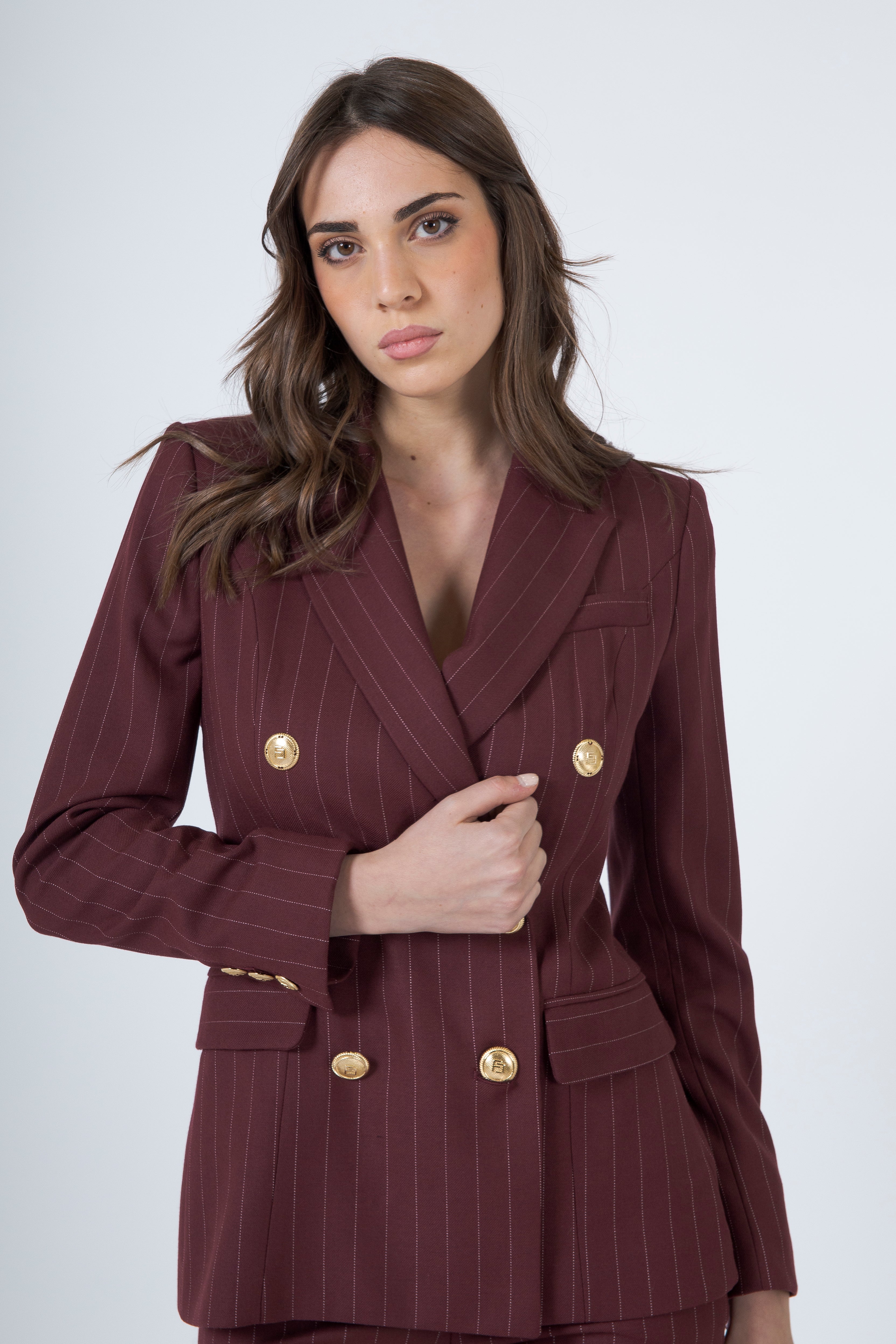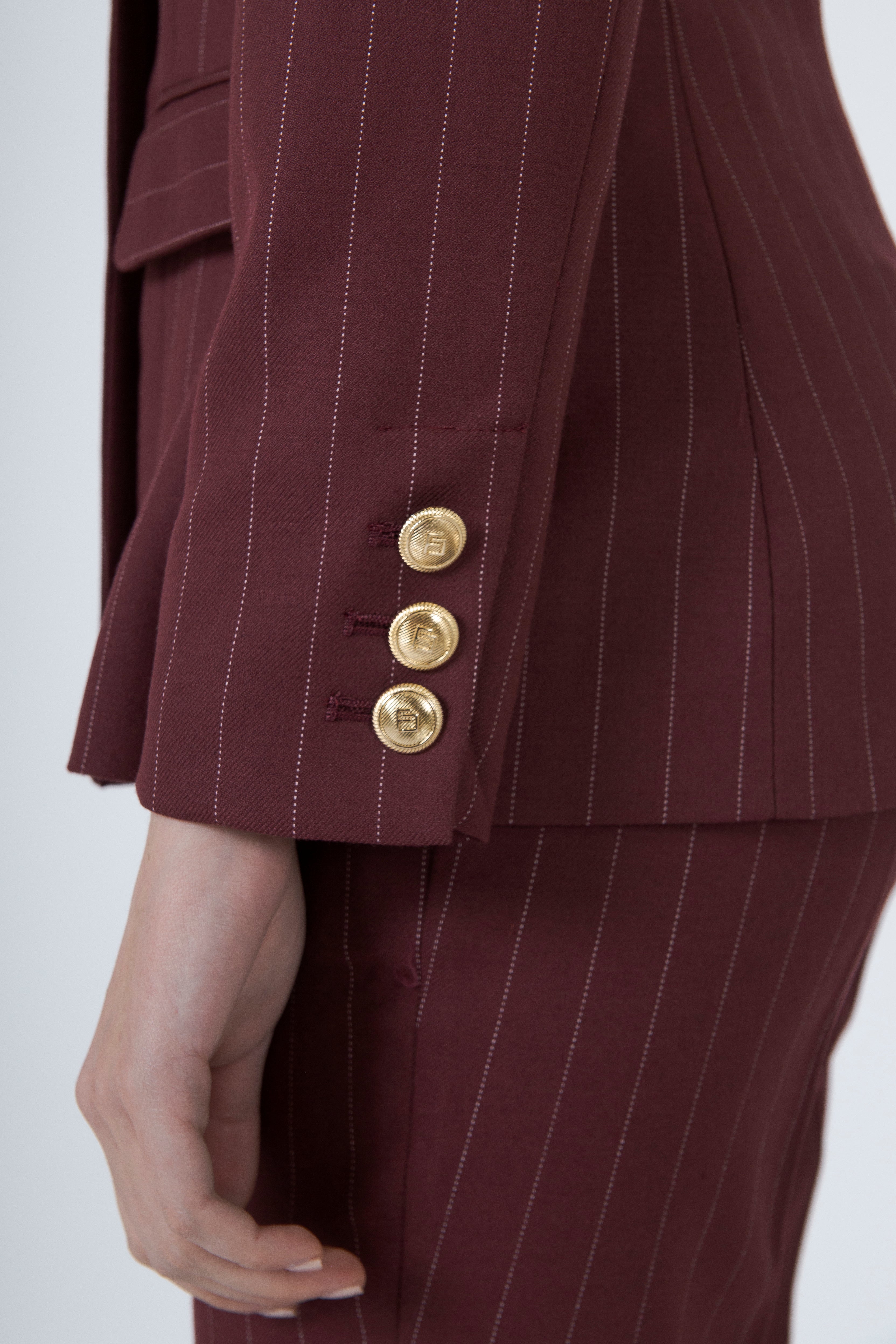 Questa giacca gessata doppio petto, firmata Flavio Castellani e rigorosamente Made in Italy, non era solo un capo: era un simbolo. Di autorità, di femminilità strutturata, di stile che affonda le radici nella tradizione sartoriale per poi evolversi con carattere.