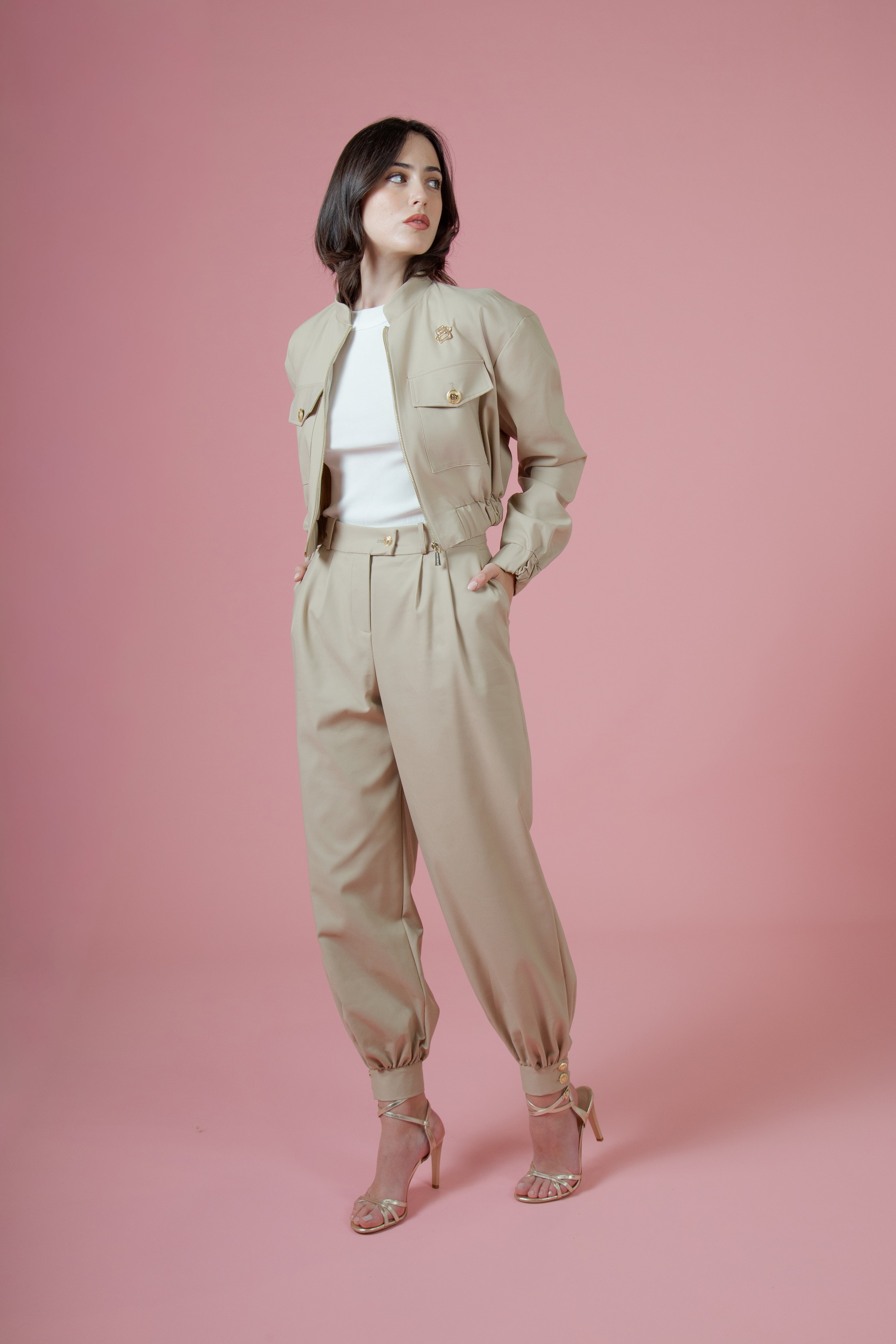 La linea crop, con l’elastico in vita, donava alla giacca un’anima giovane e audace. Si stringeva appena quanto bastava per valorizzare la figura, creando quel volume tipico del bomber, ma reinterpretato con una femminilità moderna e decisa. Era un capo che non chiedeva permesso: si faceva notare, ma con stile.
