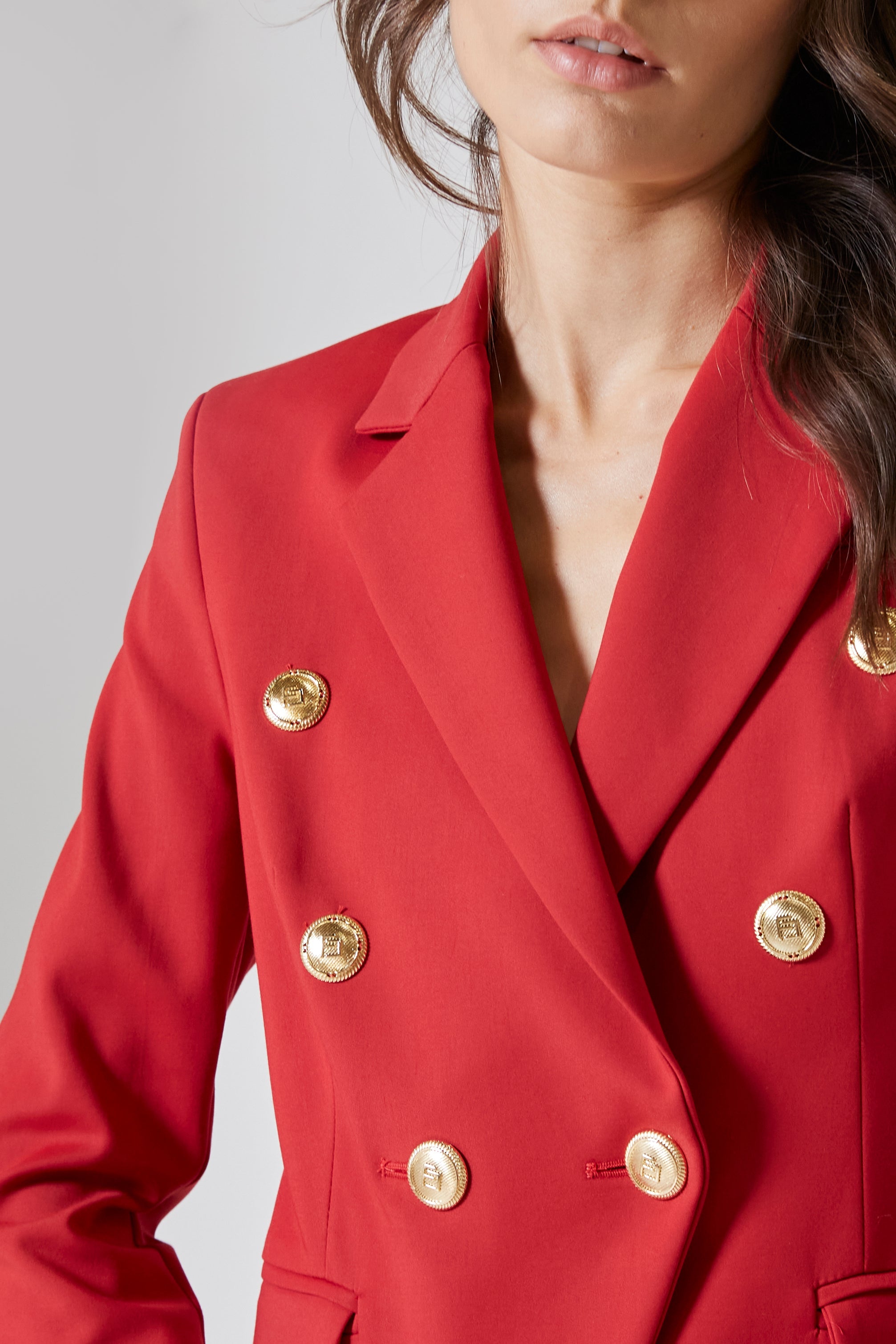 Il doppio petto, simbolo di eleganza classica, viene qui alleggerito da una costruzione moderna e versatile, capace di adattarsi a look metropolitani quanto a occasioni più sofisticate. Il rever ampio disegna il décolleté con autorità e delicatezza insieme, incorniciando il volto e donando slancio alla figura. È il genere di giacca che basta a sé stessa per definire un outfit, diventando la protagonista assoluta anche sopra un semplice abito o un pantalone dal taglio essenziale.