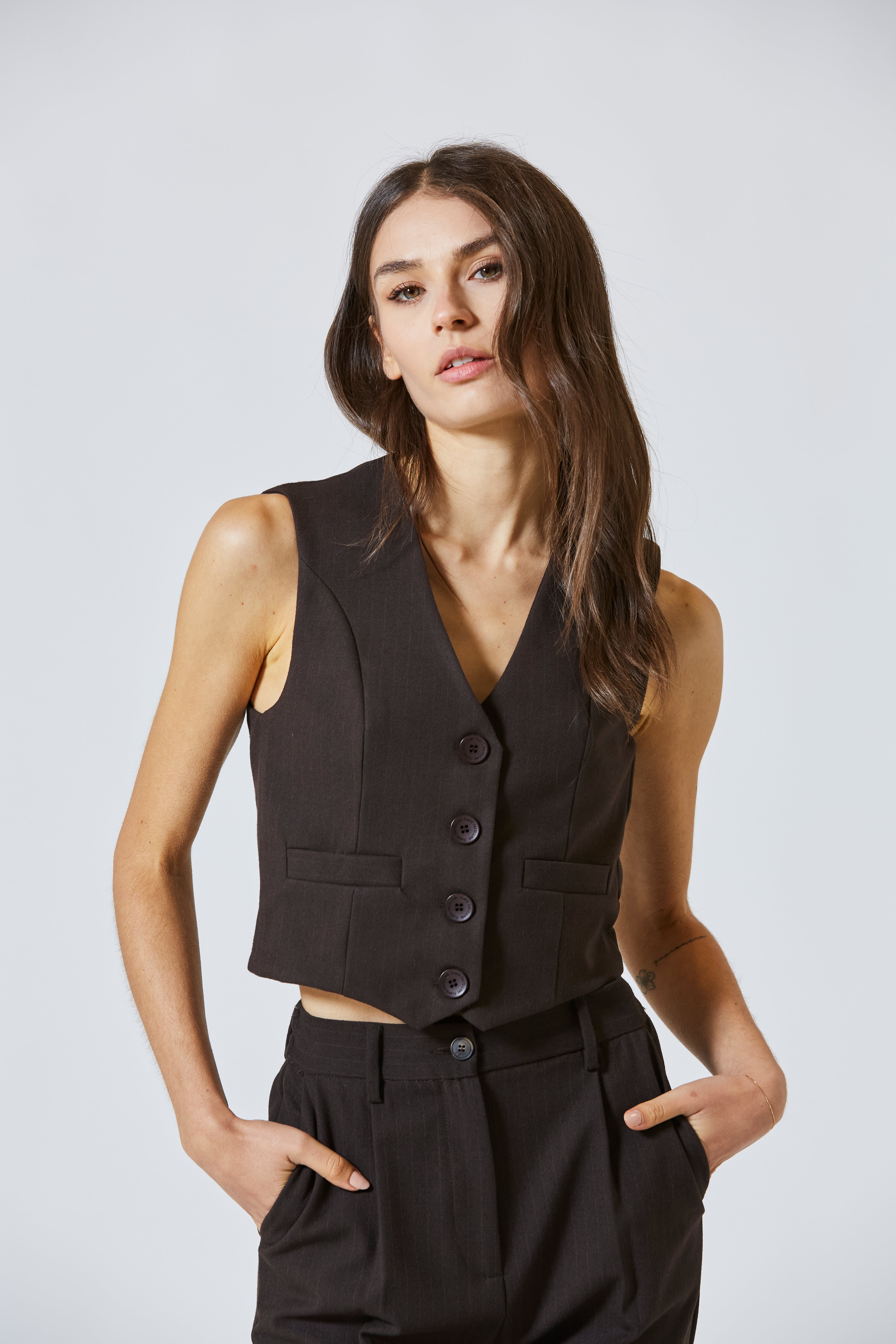 È il gilet delle donne che sanno dove stanno andando, ma non dimenticano da dove vengono. Delle donne che scelgono con consapevolezza, che non temono di essere notate, ma non ne hanno bisogno. Un gilet che non veste solo il corpo, ma anche l’attitudine.