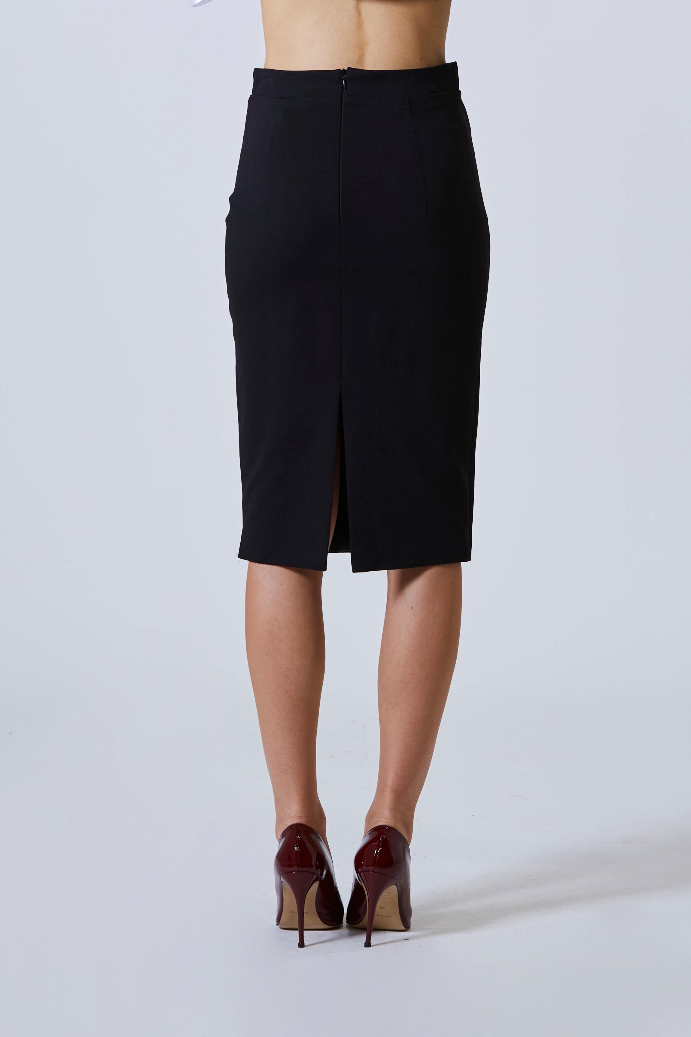 Questa longuette è pensata per chi sa che l’eleganza non sta solo in ciò che si vede davanti, ma anche in quello che si scopre voltandosi. Per chi ama la sobrietà, ma non rinuncia a un tocco di sorpresa. Perfetta per l’ufficio con una camicia maschile, spettacolare la sera con una blusa leggera o un top scultoreo. È un capo che si adatta, si plasma, ma non si dimentica.