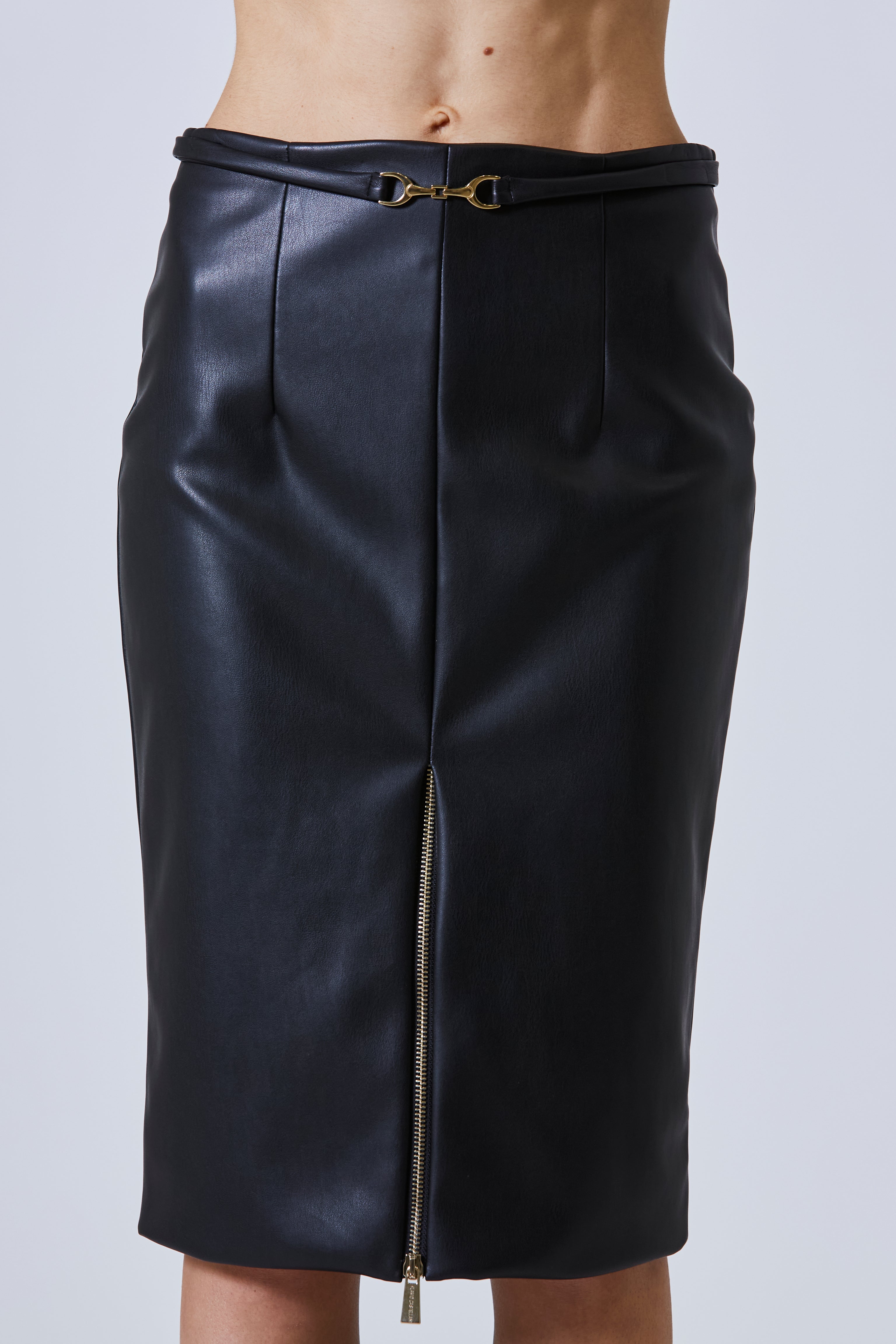 Quella gonna lougette in ecopelle era fatta per disegnare la figura con rigore e sensualità insieme.