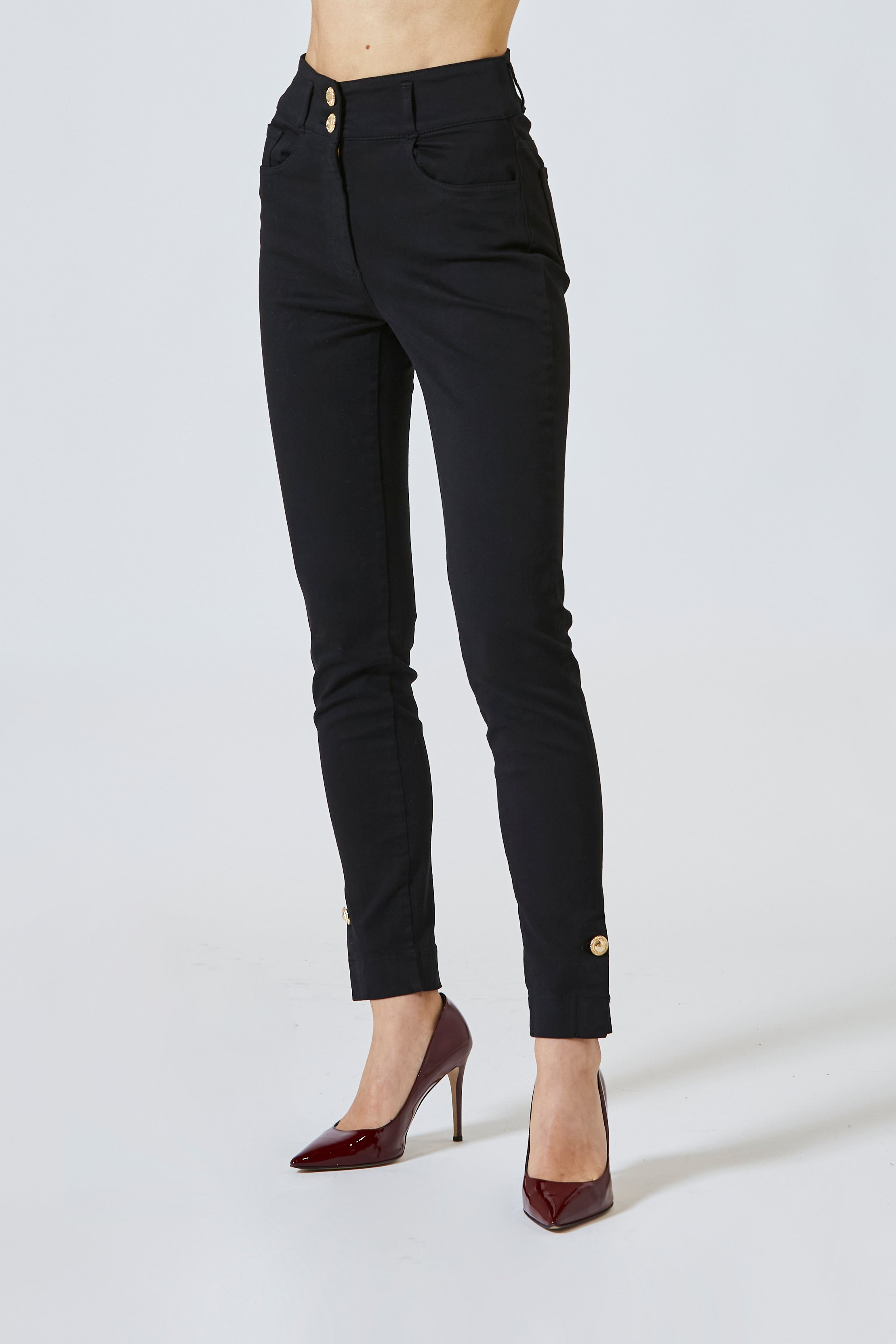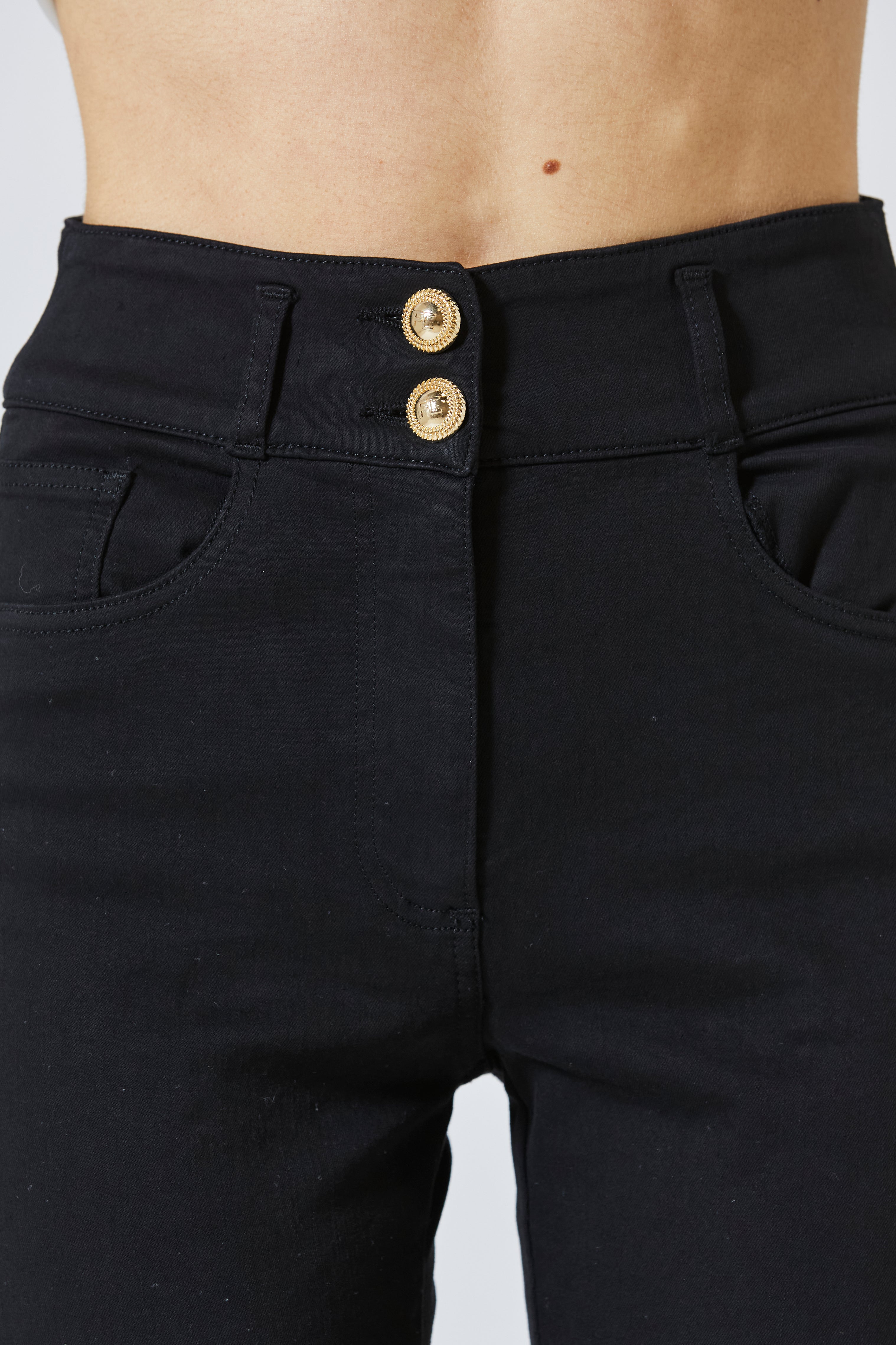 Realizzato in un denim morbido ed elastico, segue ogni movimento del corpo con armonia, offrendo comfort e fascino in egual misura. La linea skinny slancia la figura e scolpisce le gambe, mentre il colore nero profondo, intenso e vellutato, dona carattere e raffinatezza a ogni abbinamento — dal giorno alla sera.