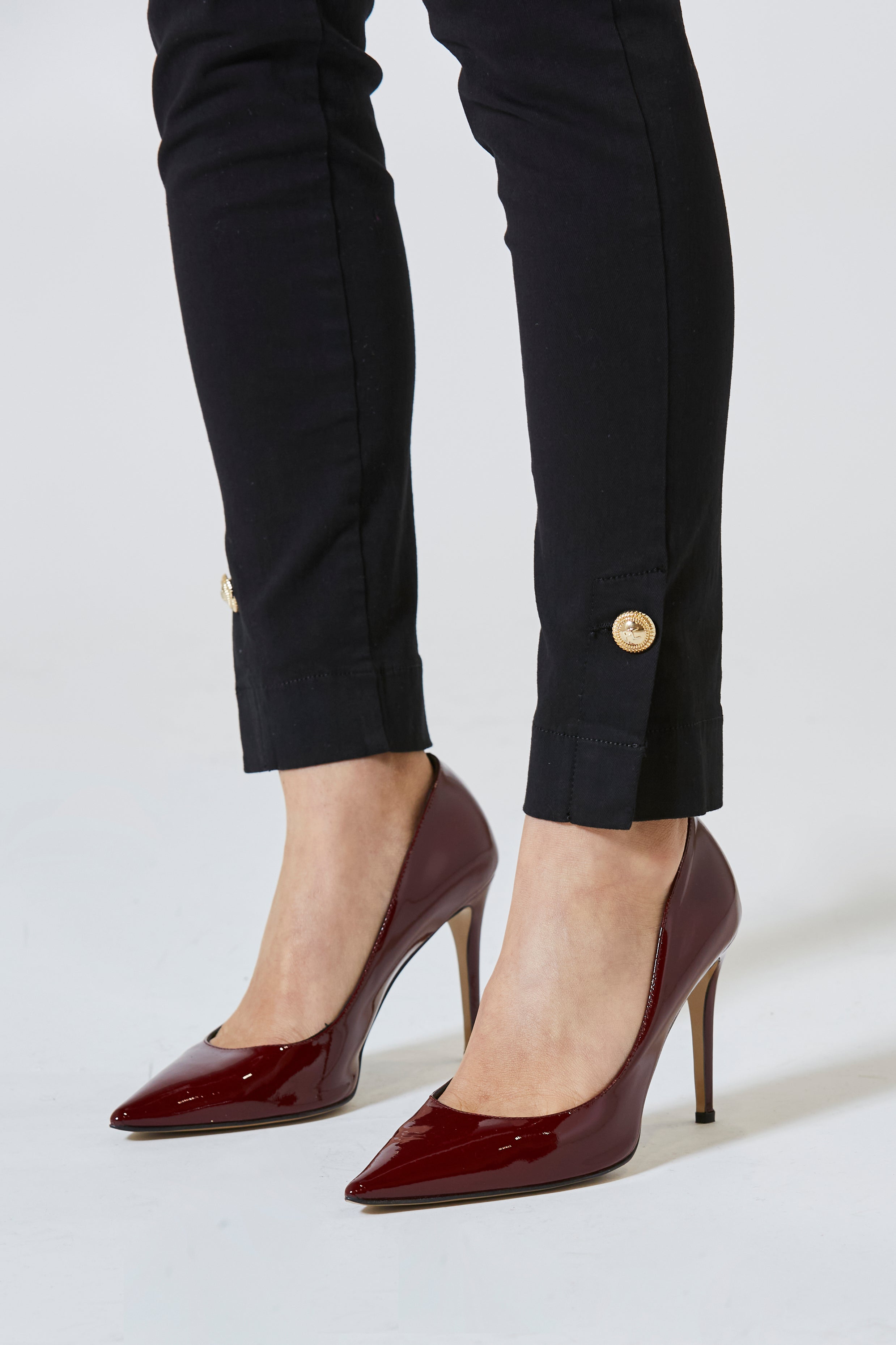 Sulla caviglia, un piccolo spacco laterale aggiunge un tocco inaspettato di sensualità e leggerezza: un dettaglio sottile, ma irresistibile, che rivela solo quel tanto che basta per rendere il passo elegante e sicuro.