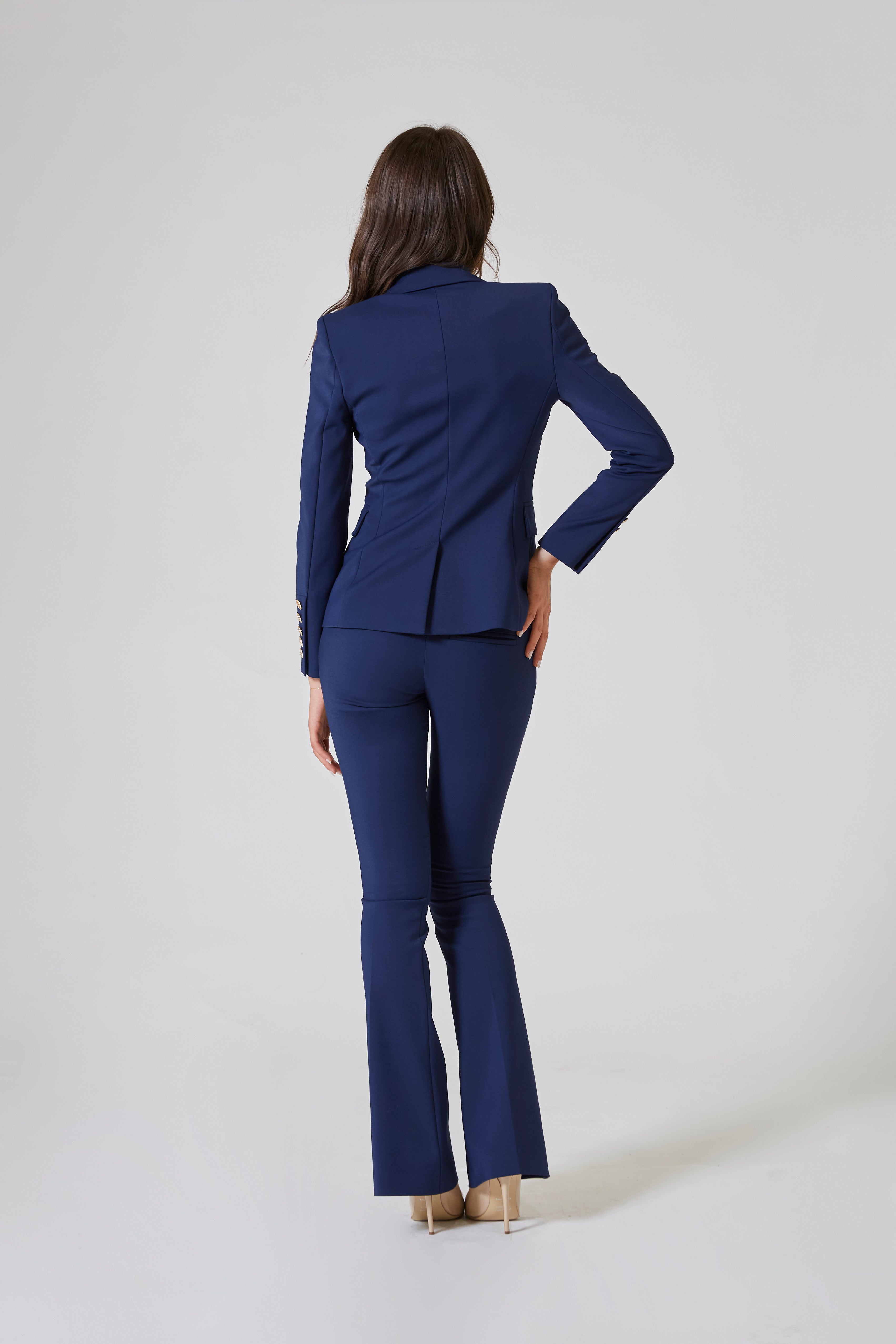 Abbinato alla giacca doppio petto con bottoni oro, crea un completo sofisticato, ricco di carattere e fascino sartoriale. Ma questo pantalone vive di luce propria anche indossato con una semplice camicia di lino, una blusa in seta o una maglia leggera, dimostrando tutta la sua versatilità.