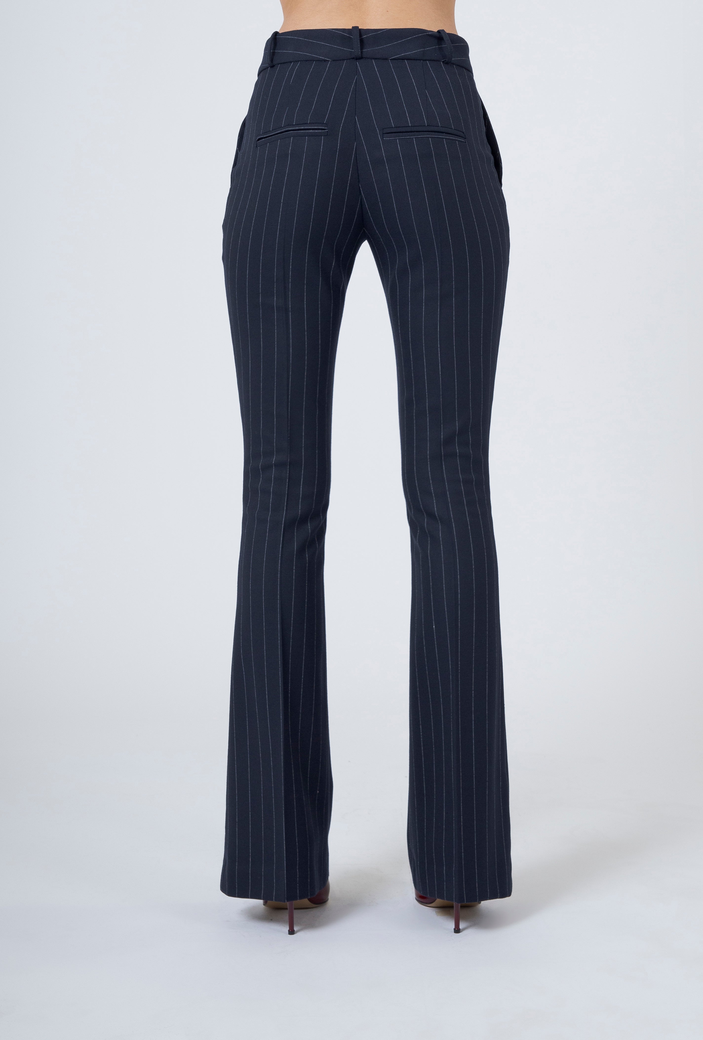 La vita alta scolpisce e slancia, aderendo con naturalezza al punto vita per poi aprirsi in una zampa ampia, che cade morbida fino a sfiorare le scarpe. È un dettaglio che non urla, ma incanta: un'eco discreta di libertà e movimento, capace di trasformare una semplice camminata in una passerella personale.