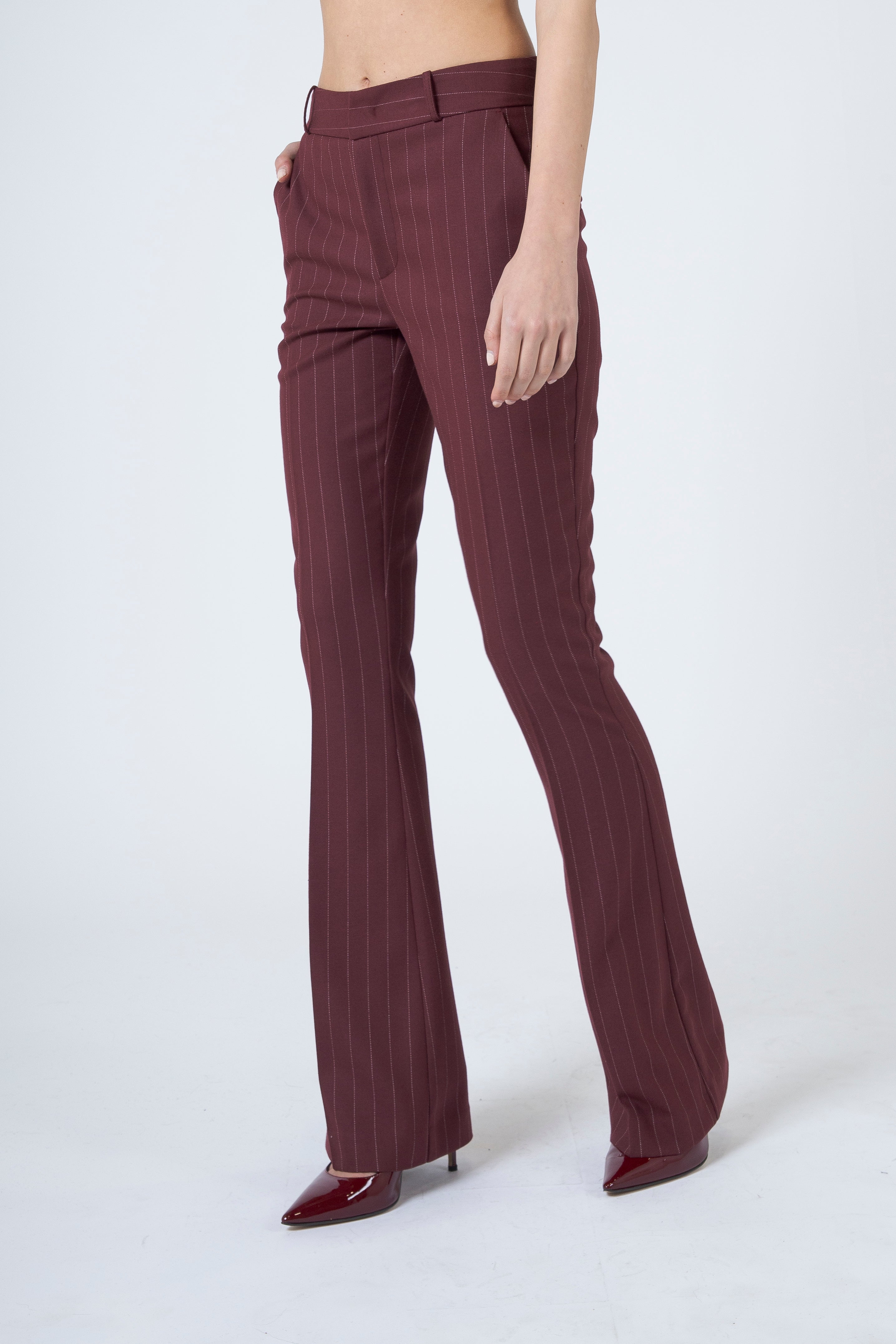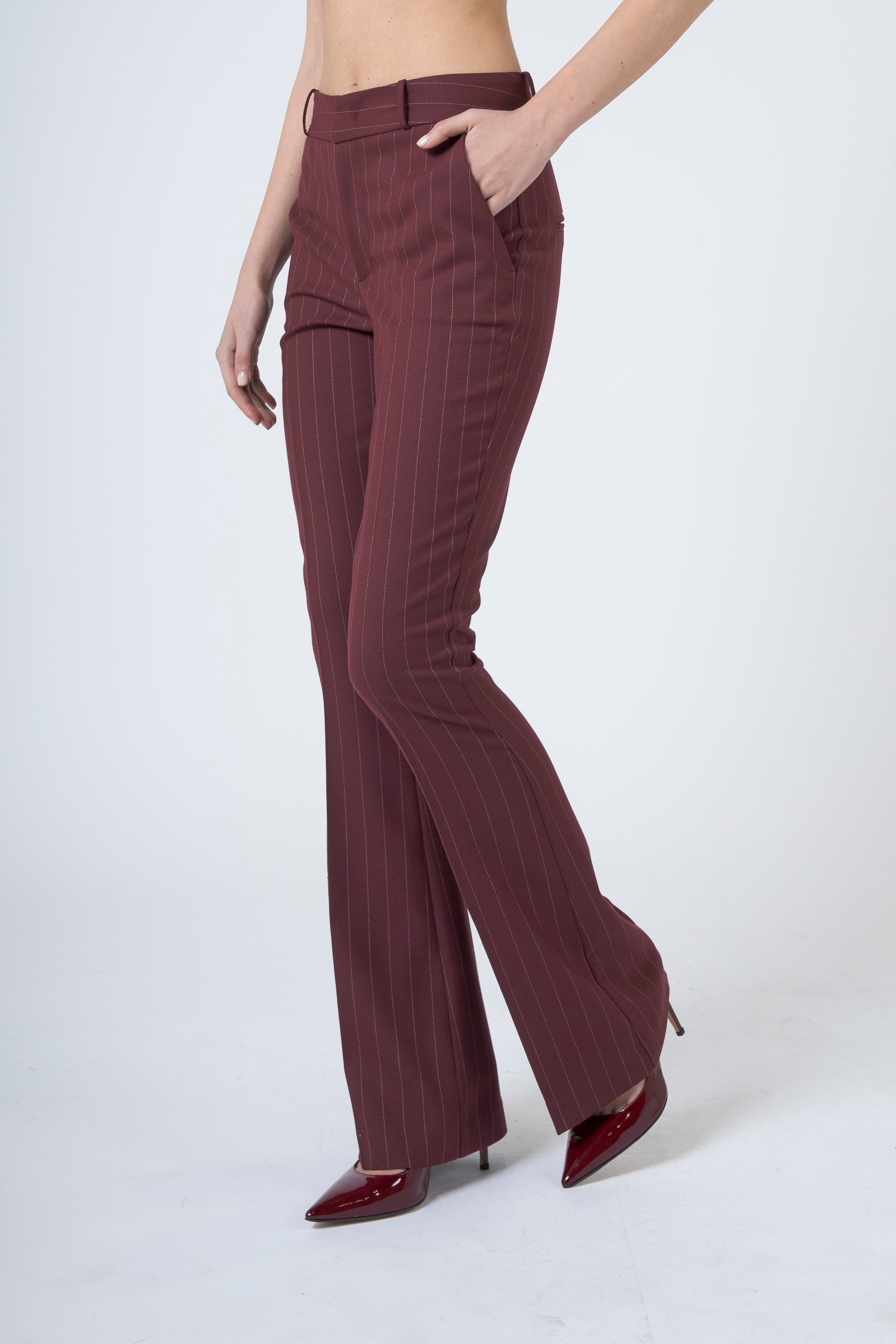 La vita alta scolpisce e slancia, aderendo con naturalezza al punto vita per poi aprirsi in una zampa ampia, che cade morbida fino a sfiorare le scarpe. È un dettaglio che non urla, ma incanta: un'eco discreta di libertà e movimento, capace di trasformare una semplice camminata in una passerella personale.