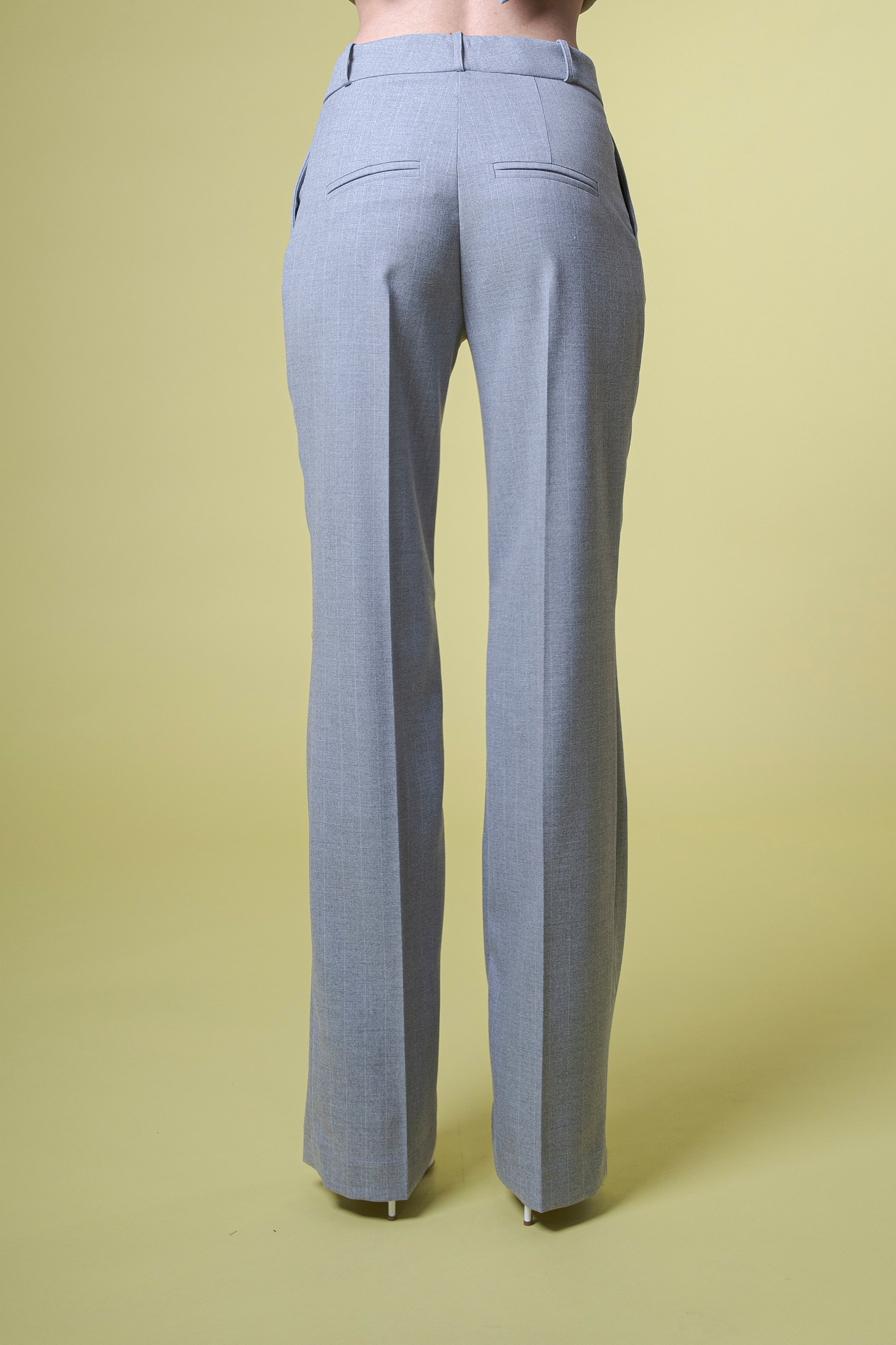 La vita è definita da pinces morbide, studiate per dare volume senza appesantire, per scolpire il punto vita e accompagnare naturalmente la linea dei fianchi. Questo dettaglio sartoriale richiama la tradizione maschile rivisitata con sensibilità femminile, rendendo il pantalone autorevole ma incredibilmente elegante.