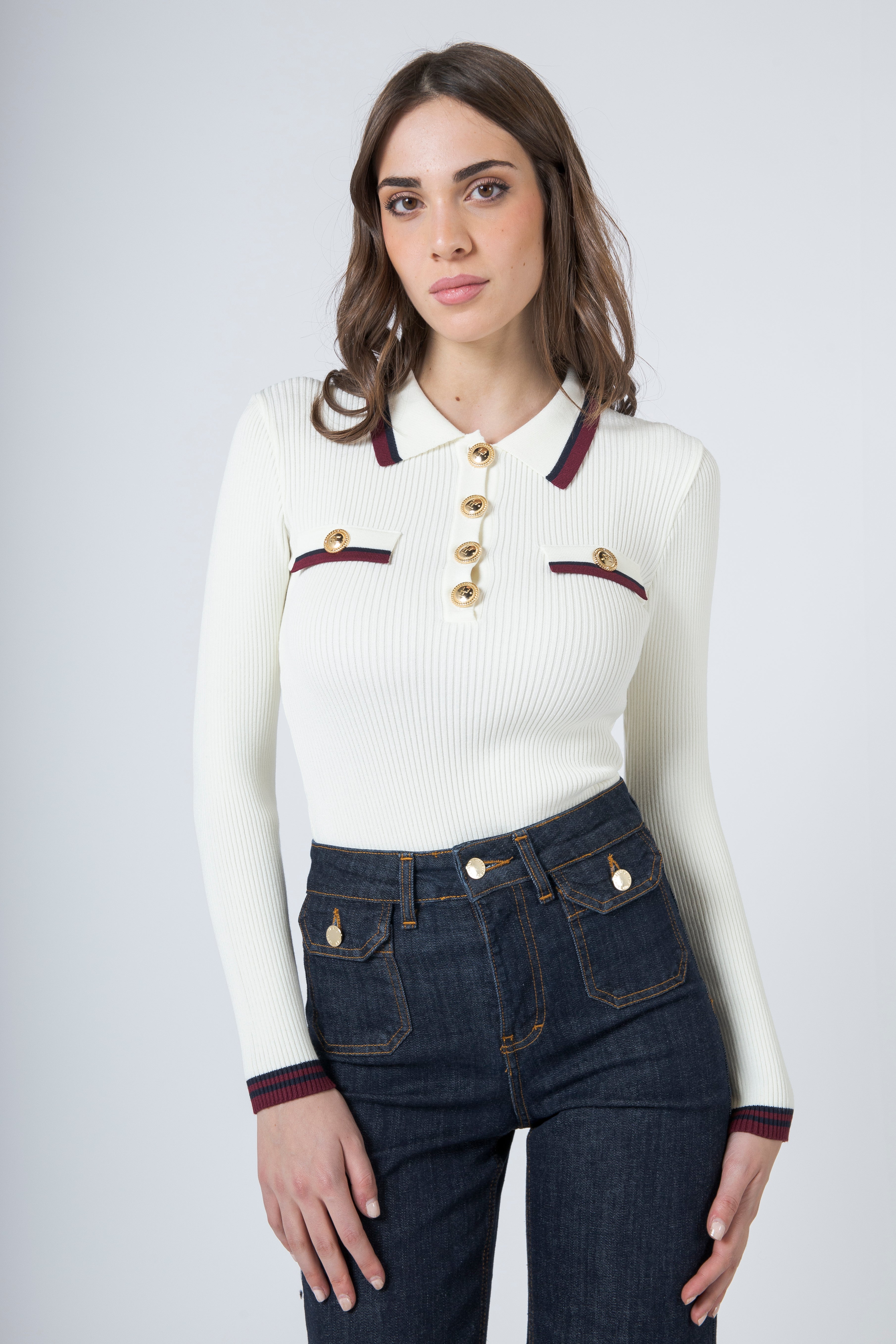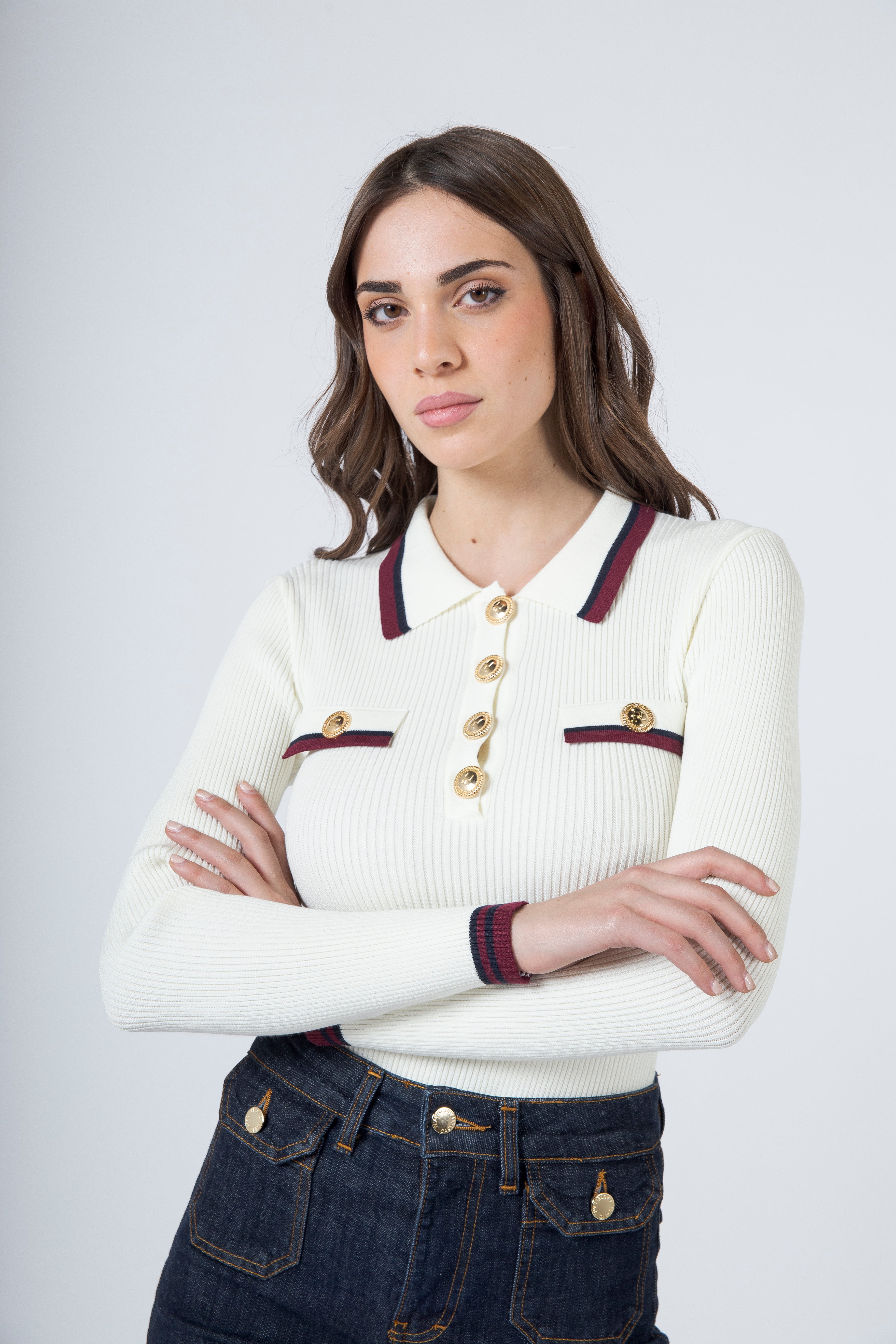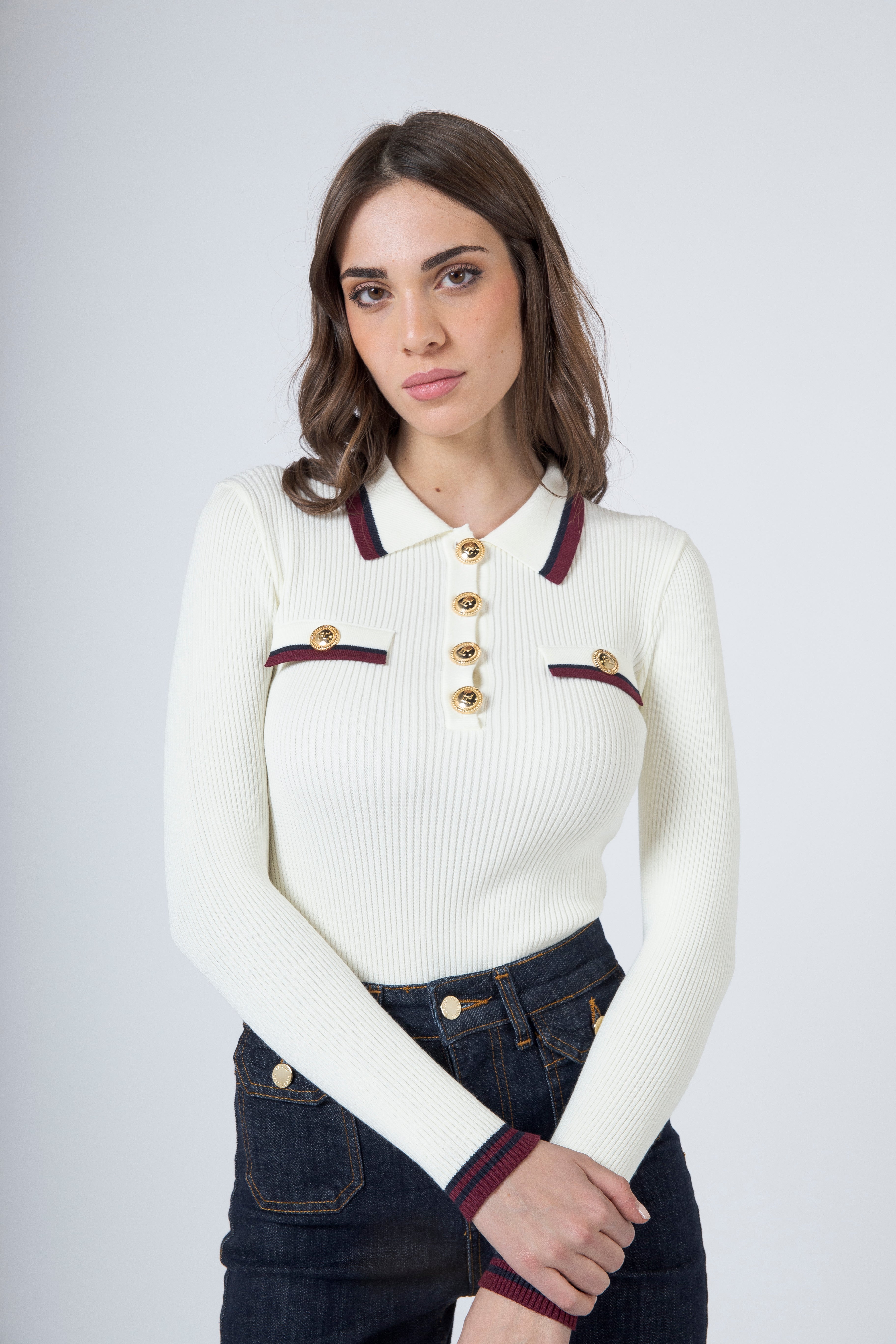 Questa polo costina con profili a contrasto e bottoni oro Catellani è molto più di un capo casual: