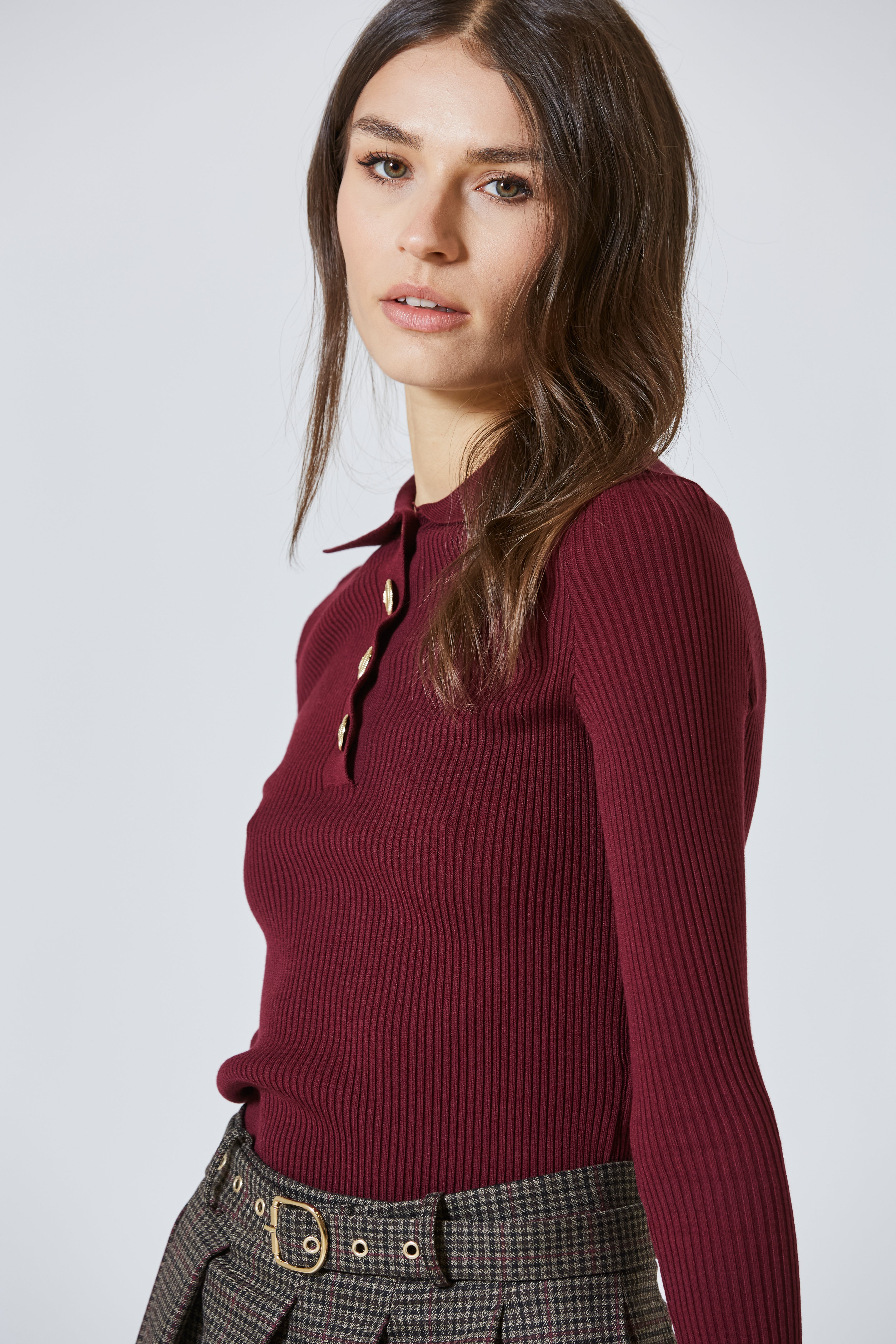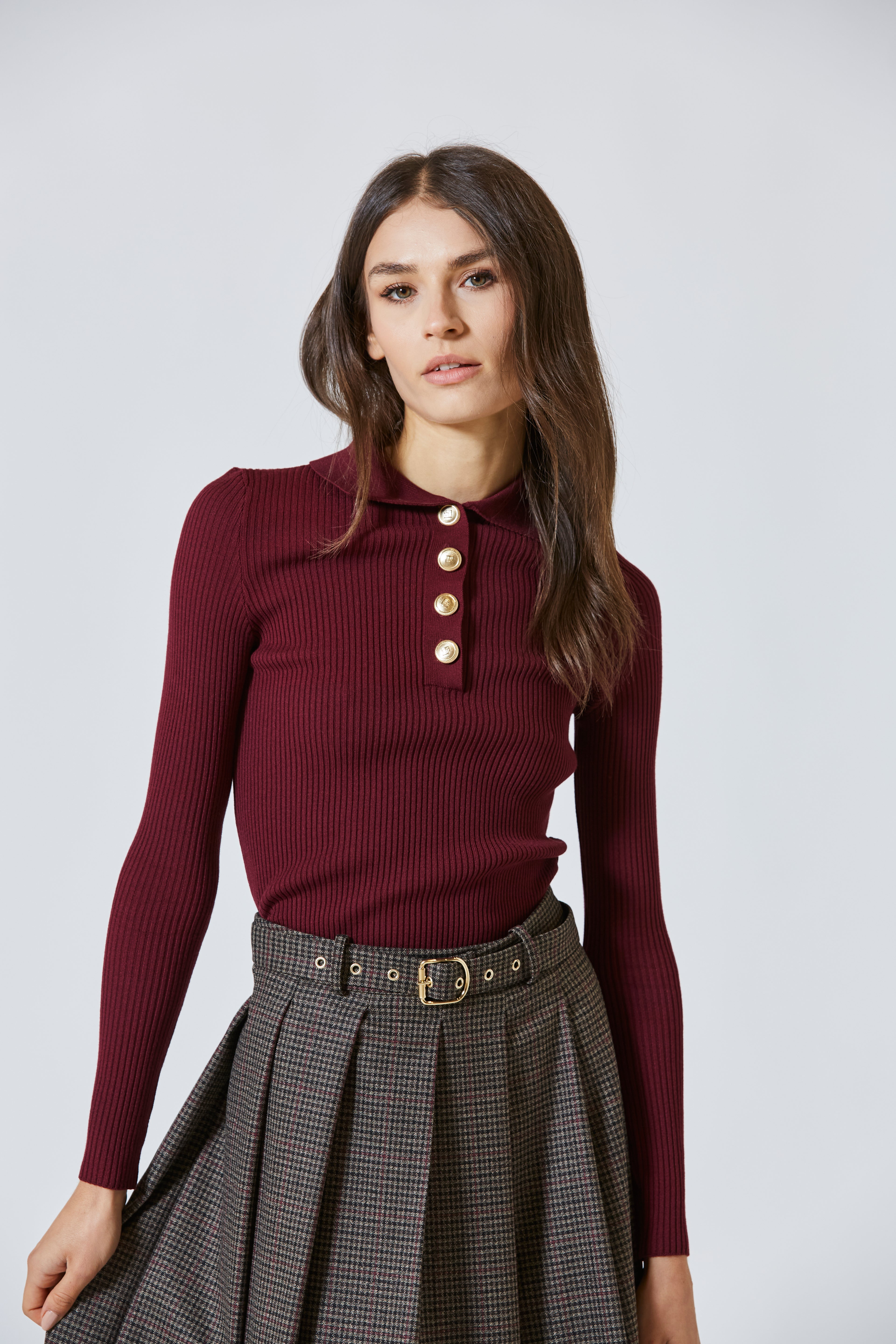 C’è una femminilità che non ha bisogno di eccessi. Una bellezza che si muove silenziosa, fatta di dettagli precisi e tessuti che sfiorano la pelle come un pensiero gentile. È la stessa bellezza che prende forma in questa polo a costina, realizzata in un pregiato misto viscosa, pensata per chi cerca l’equilibrio perfetto tra essenzialità e carattere.