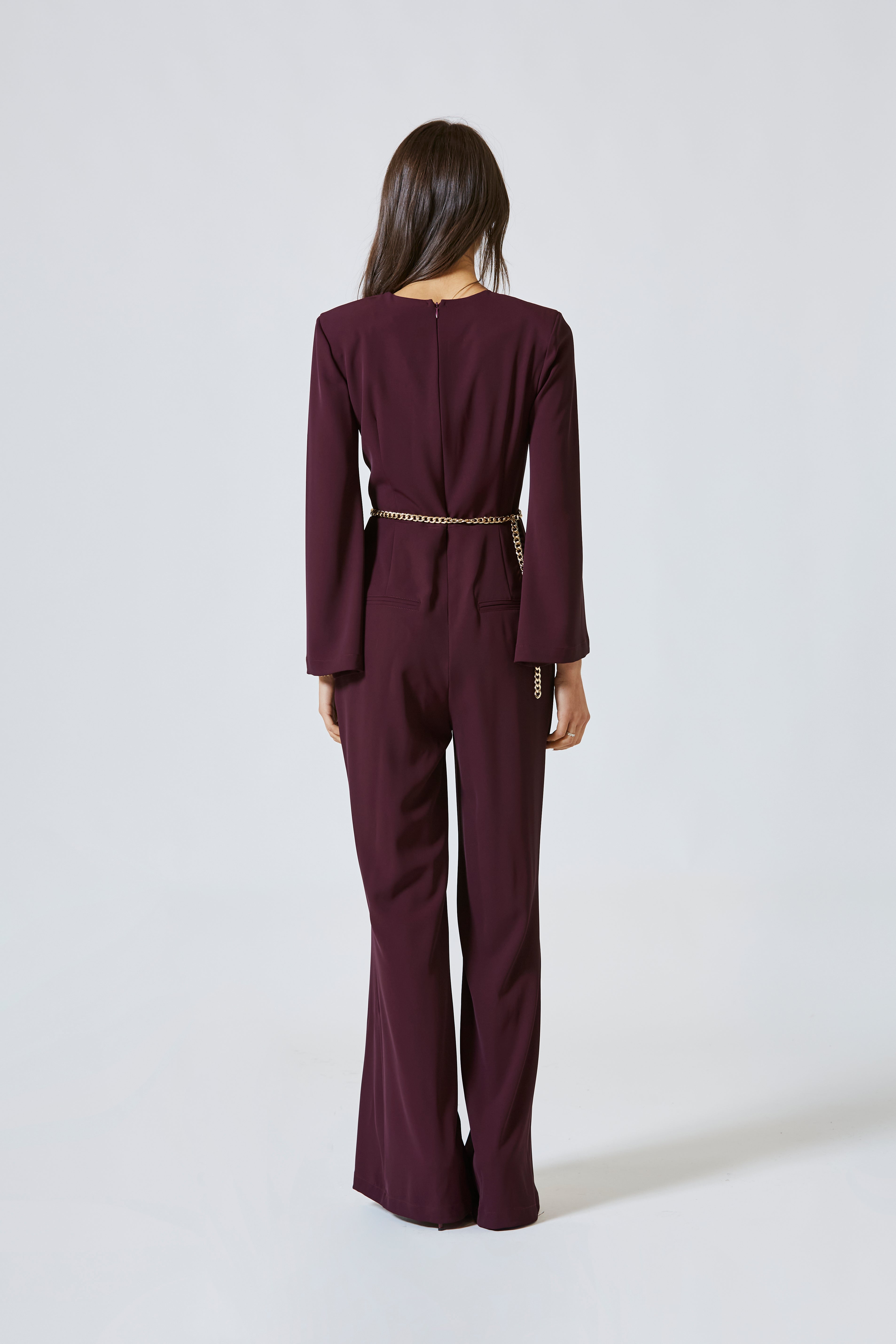 Realizzata in un tessuto morbido ma compatto, la tuta si adatta con naturalezza alle forme, mantenendo il suo portamento anche dopo ore di indosso. È un capo nato per accompagnare con disinvoltura le occasioni più importanti: una cena elegante, un evento serale, una giornata di lavoro dove la presenza conta.