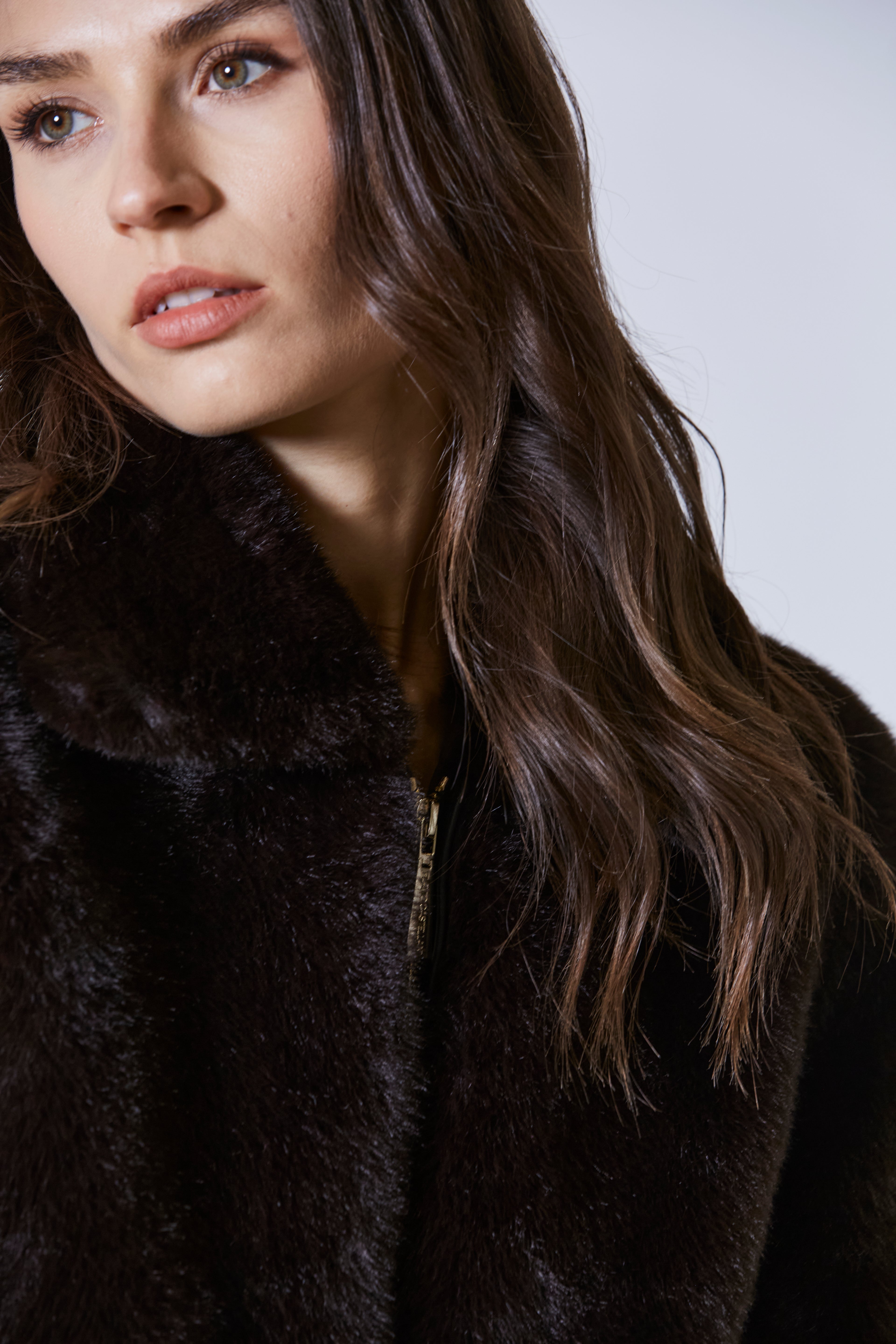 Il finish effetto visone, compatto e lussuoso, regalava alla superficie una morbidezza visiva che si traduceva al tatto in una sensazione avvolgente e ricercata. Era il tipo di pelliccia che non aveva bisogno di urlare il proprio valore: lo sussurrava, con ogni fibra.