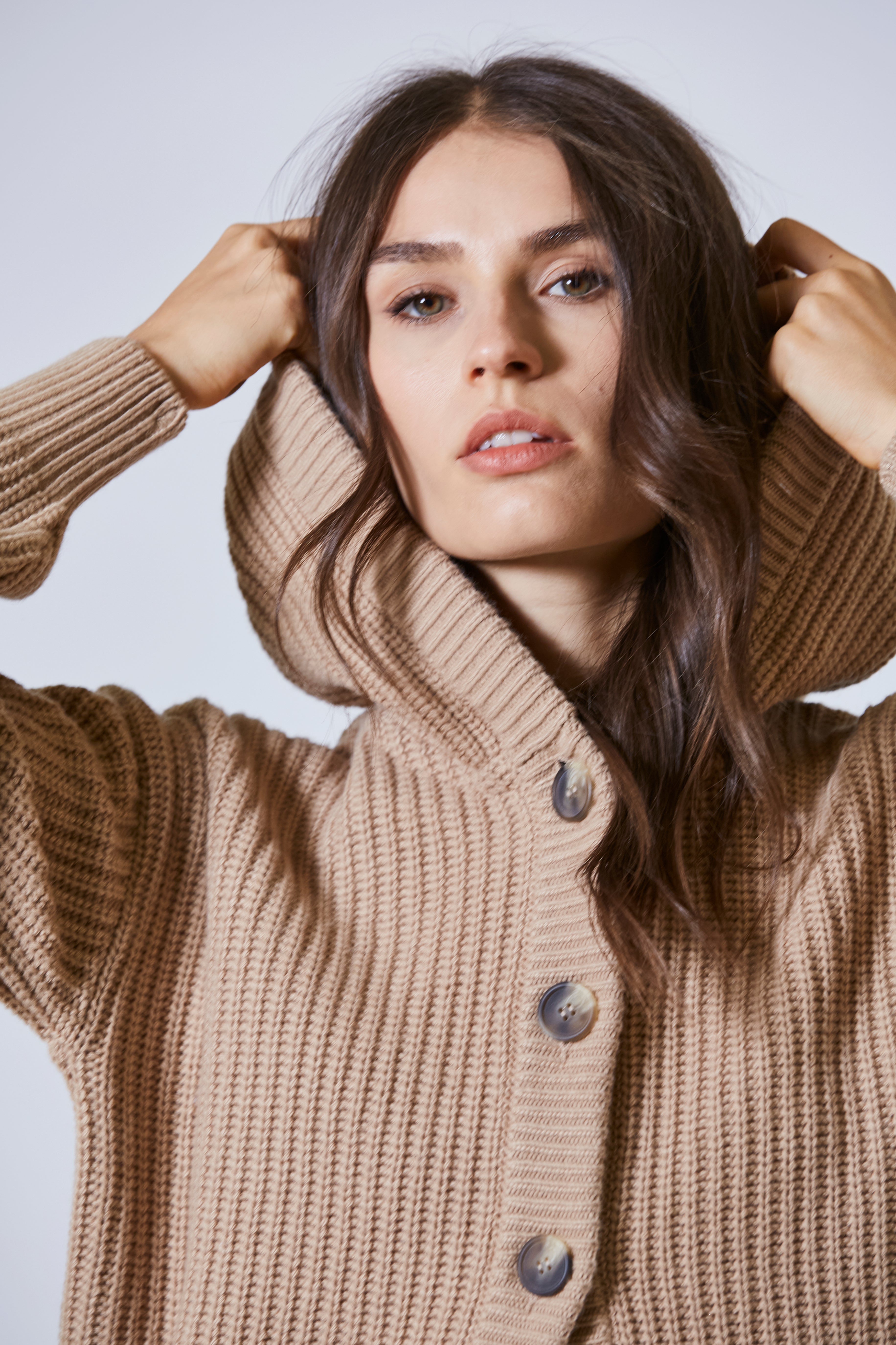 È un cardigan pensato per avvolgere, non solo per vestire.