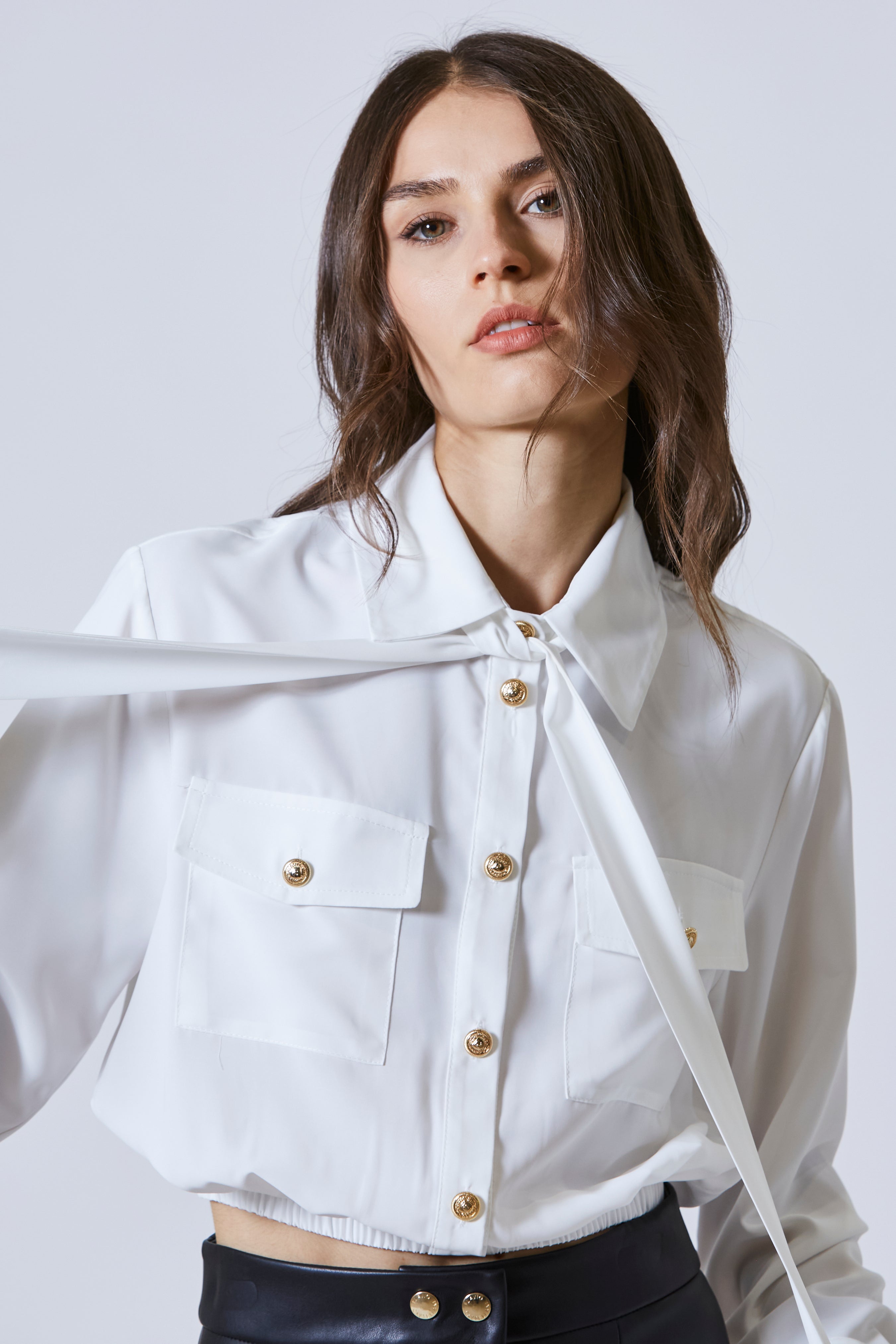 C’è un’eleganza nuova, fatta di tagli moderni, dettagli ricercati e un’equilibrata leggerezza che cattura lo sguardo senza bisogno di eccessi. Questa camicia crop è l’emblema perfetto di questo stile: femminile, contemporanea e ricca di carattere, pensata per chi vuole distinguersi con naturalezza.