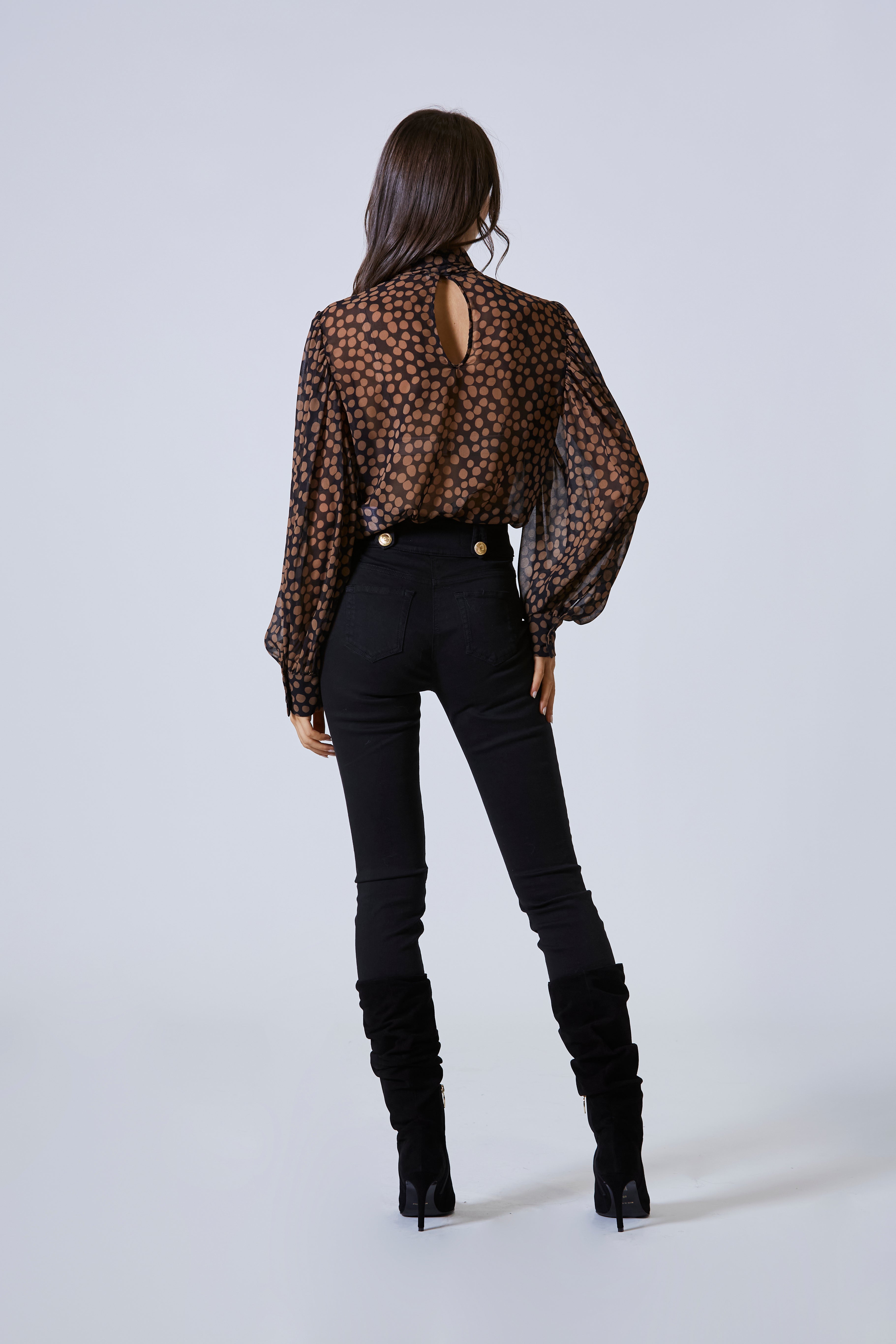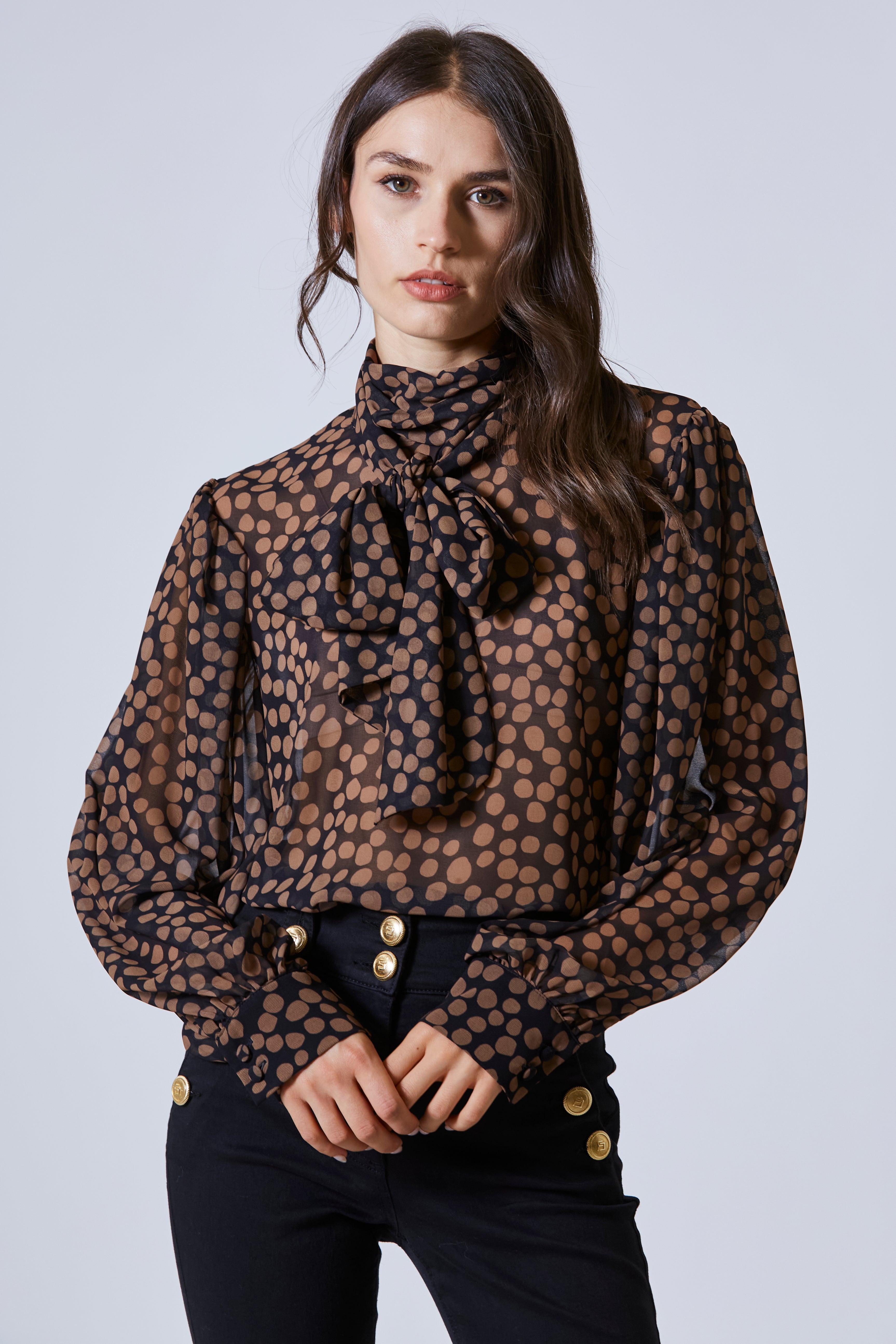 Perfetta da indossare con un pantalone sartoriale, una gonna fluida o anche sotto un blazer maschile per giocare con i contrasti. Questa casacca è un classico rivisitato con charme, pensato per tutte le ore del giorno — e per tutte le donne che amano raccontare la propria femminilità con eleganza, un pois alla volta.