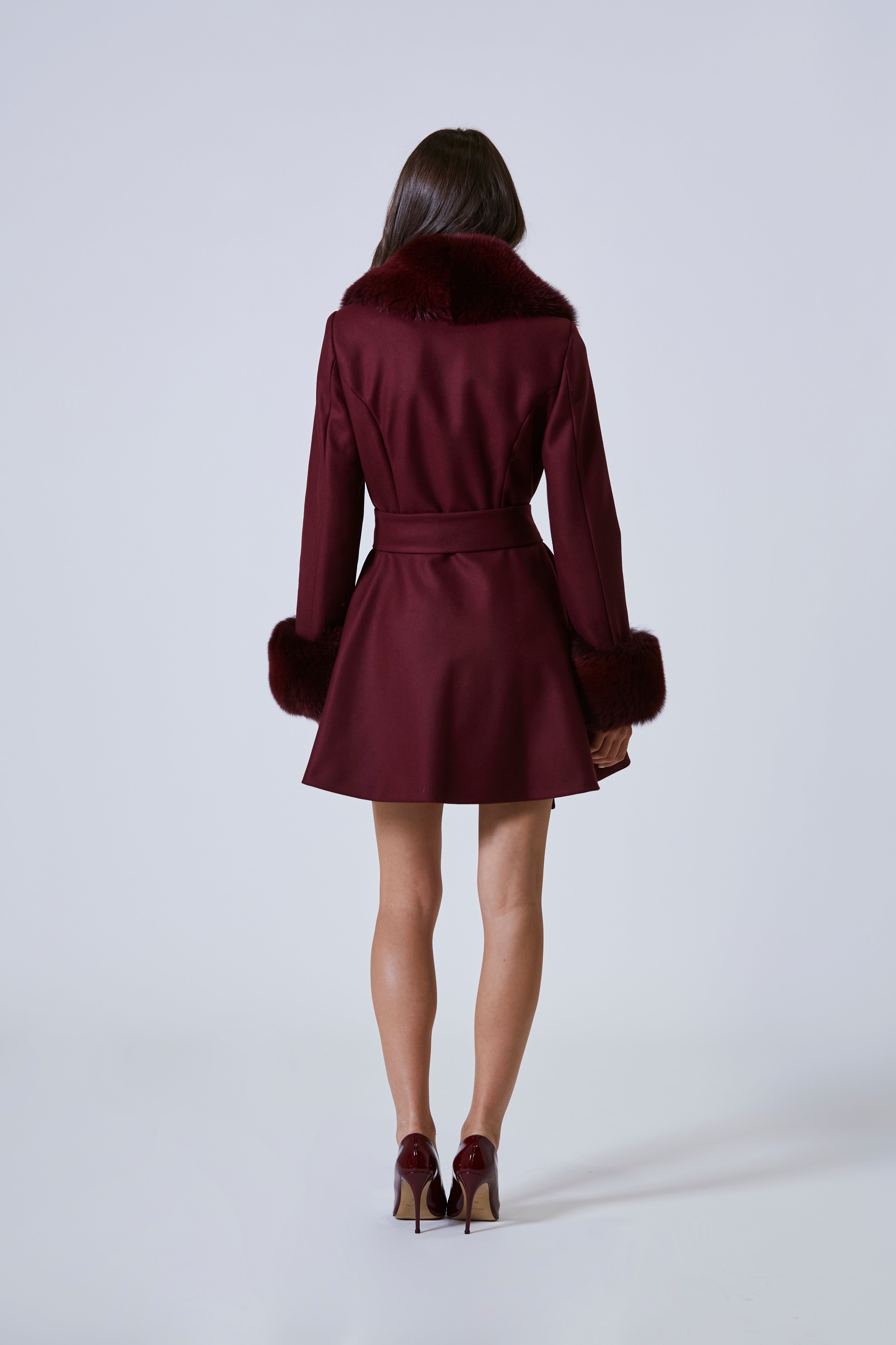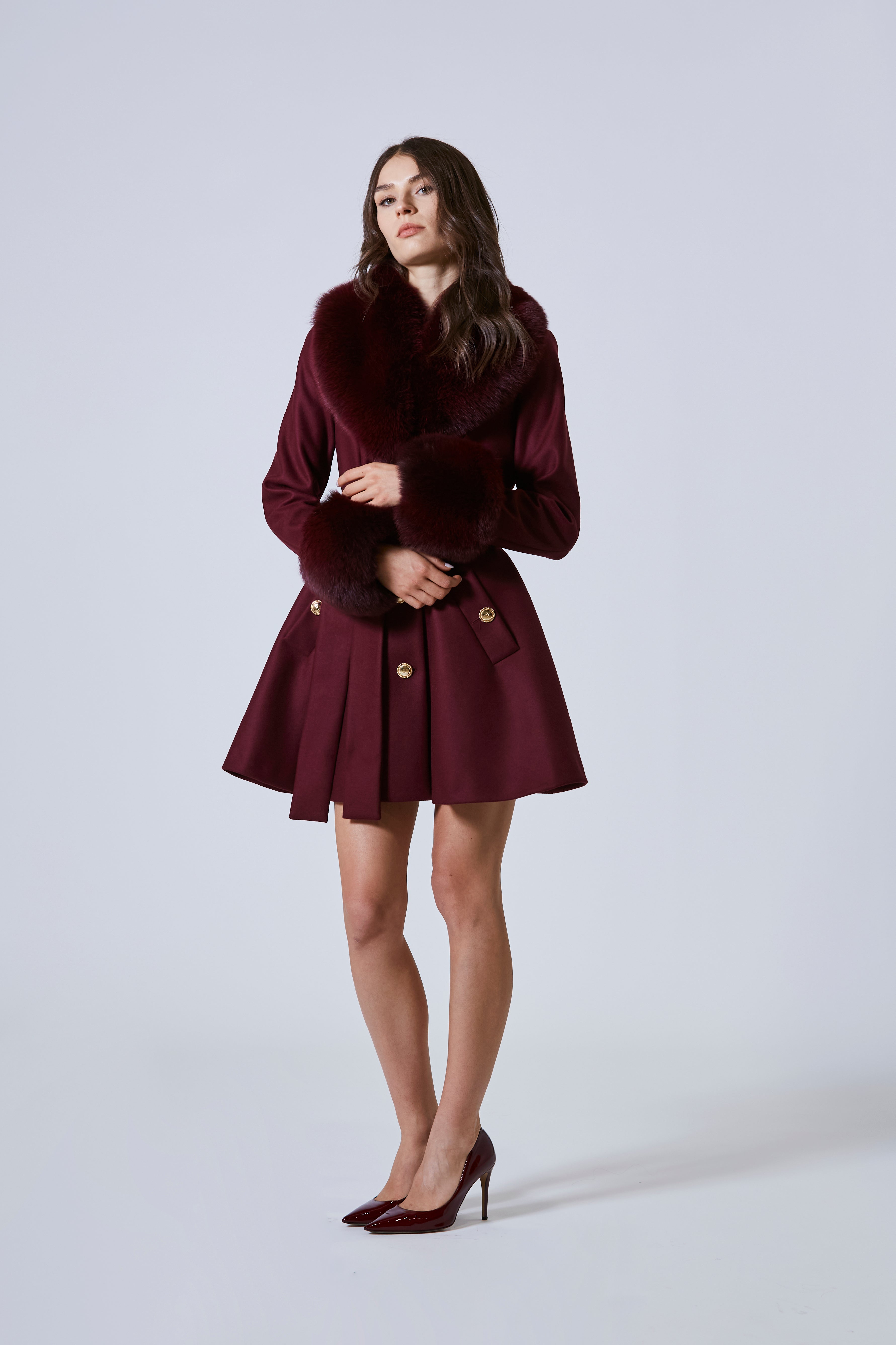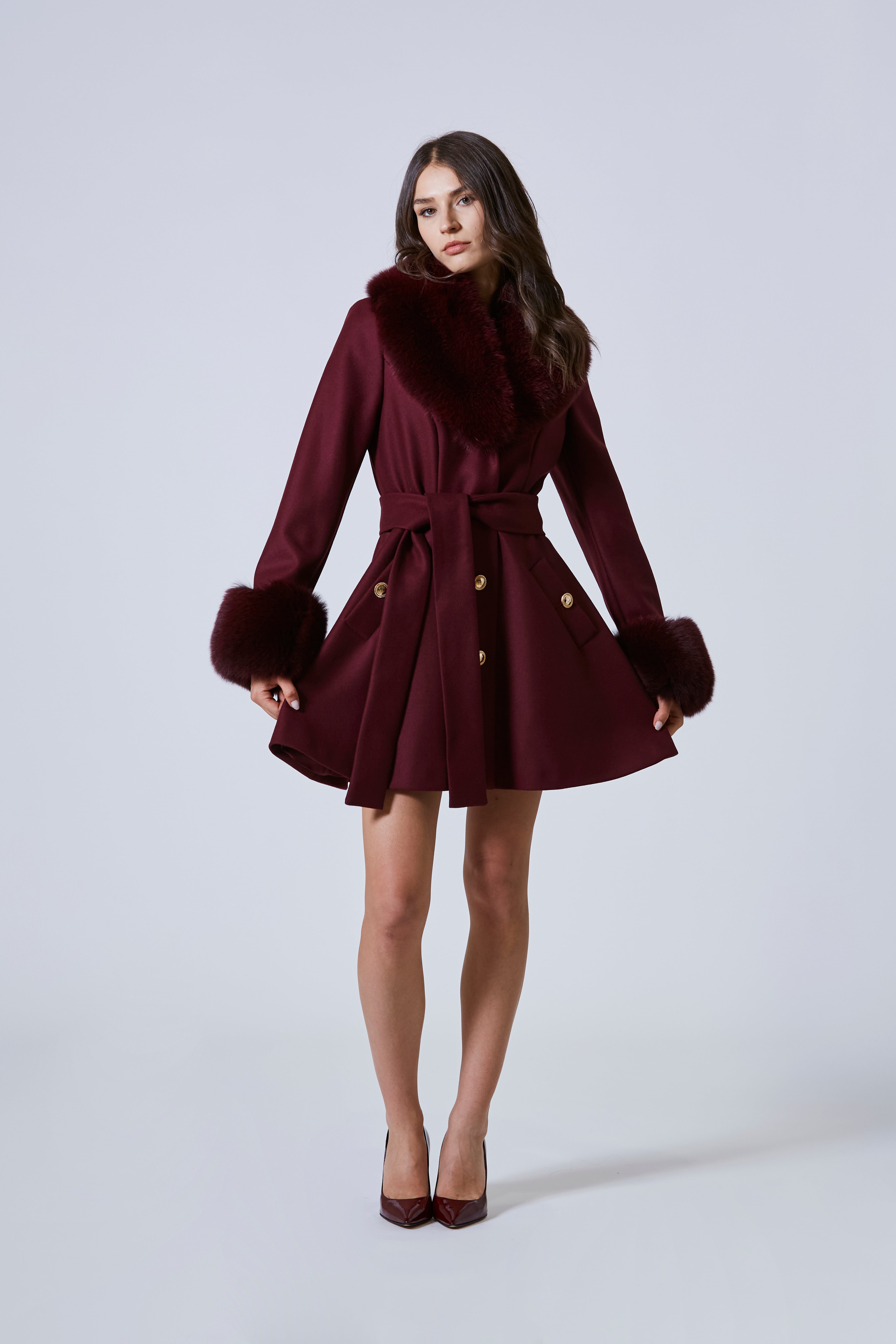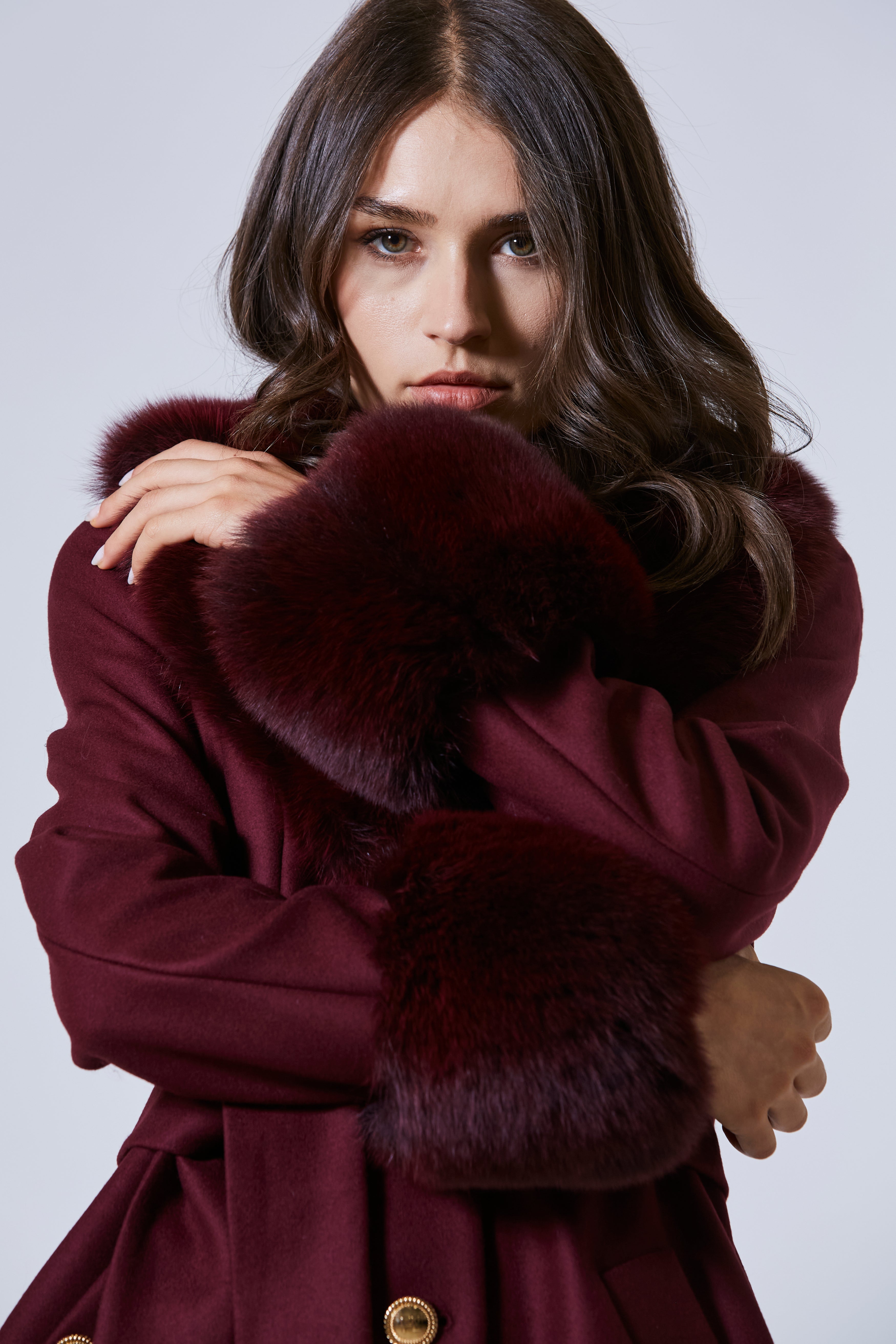 I polsini, accarezzati dalla stessa pelliccia, sono come un richiamo, un dettaglio che gioca con il mistero, che rende questo cappotto ancora più speciale. Ogni movimento del braccio, ogni gesto, sembra diventare più importante, più carico di grazia, come se fosse possibile fermare il tempo per ammirare la perfezione di un piccolo dettaglio.