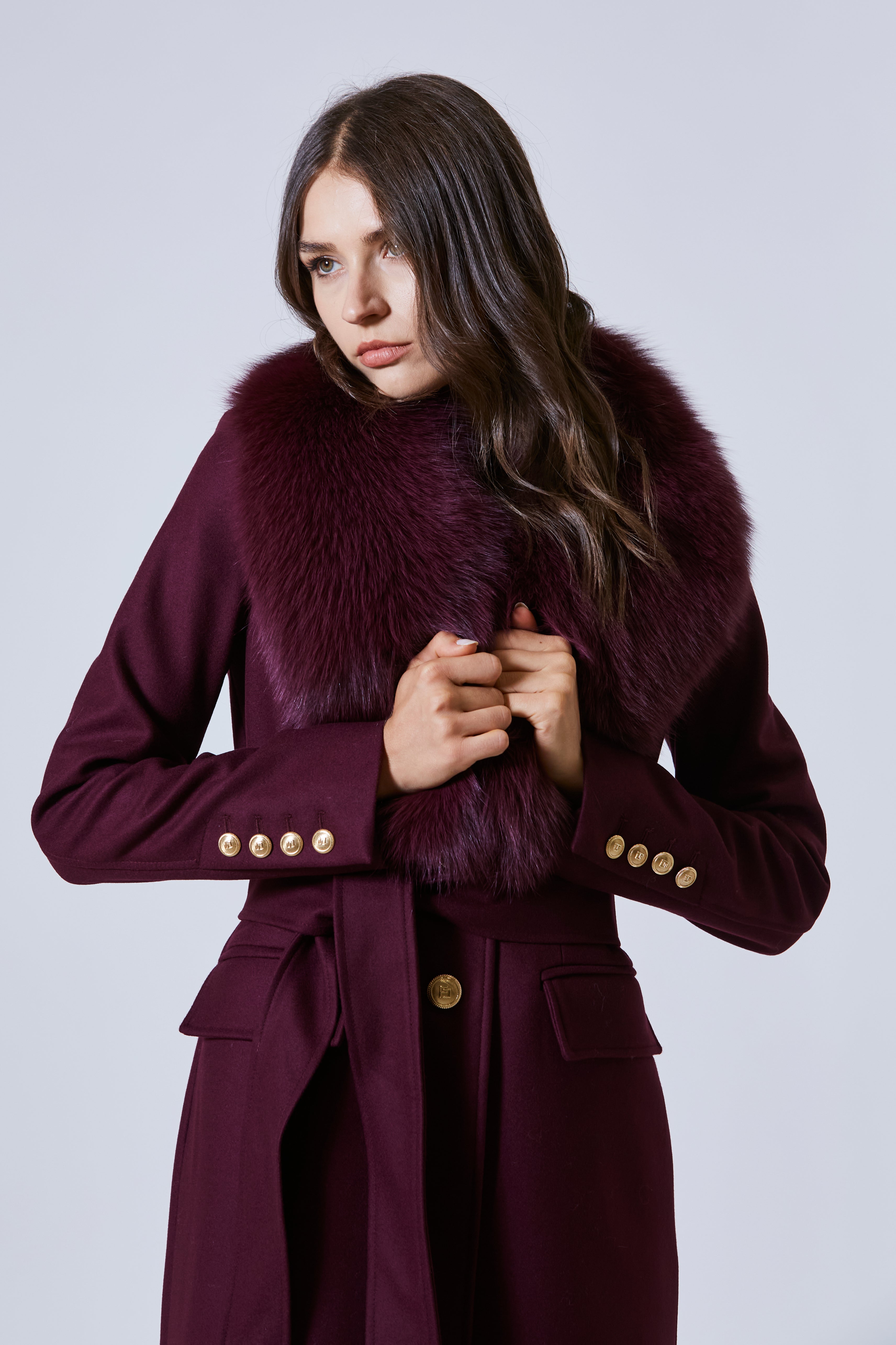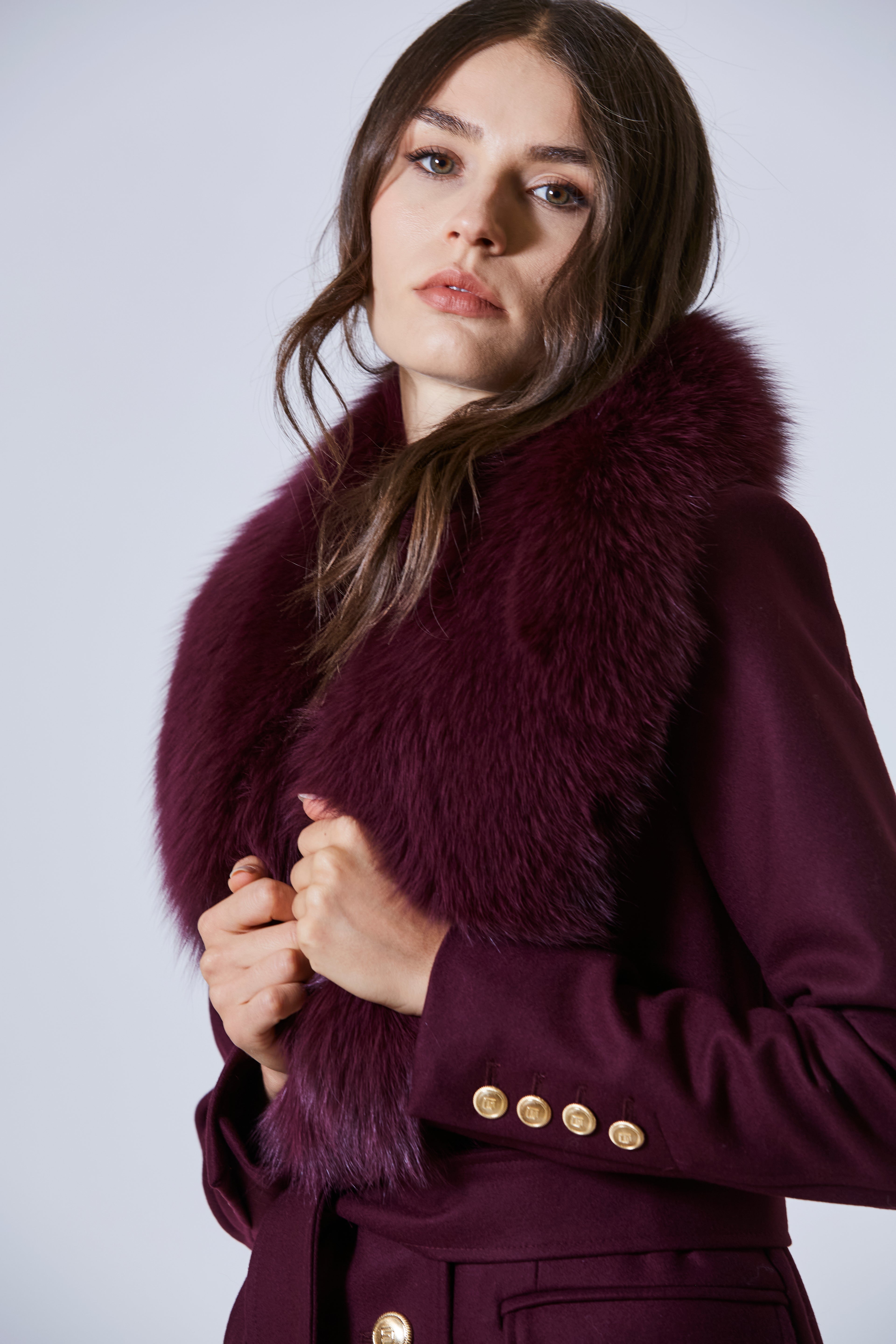 Il taglio era classico, ma non antico. Era pensato per attraversare il tempo, non per inseguirlo. Linee pulite, essenziali, ma scolpite quanto basta per accompagnare il corpo con autorevolezza. E poi, il dettaglio che catturava lo sguardo con la forza quieta di un simbolo: il collo, ricoperto da una pelliccia generosa, che non gridava lusso, lo respirava. Avvolgente, calda, impeccabile. Un abbraccio, ma anche una cornice.