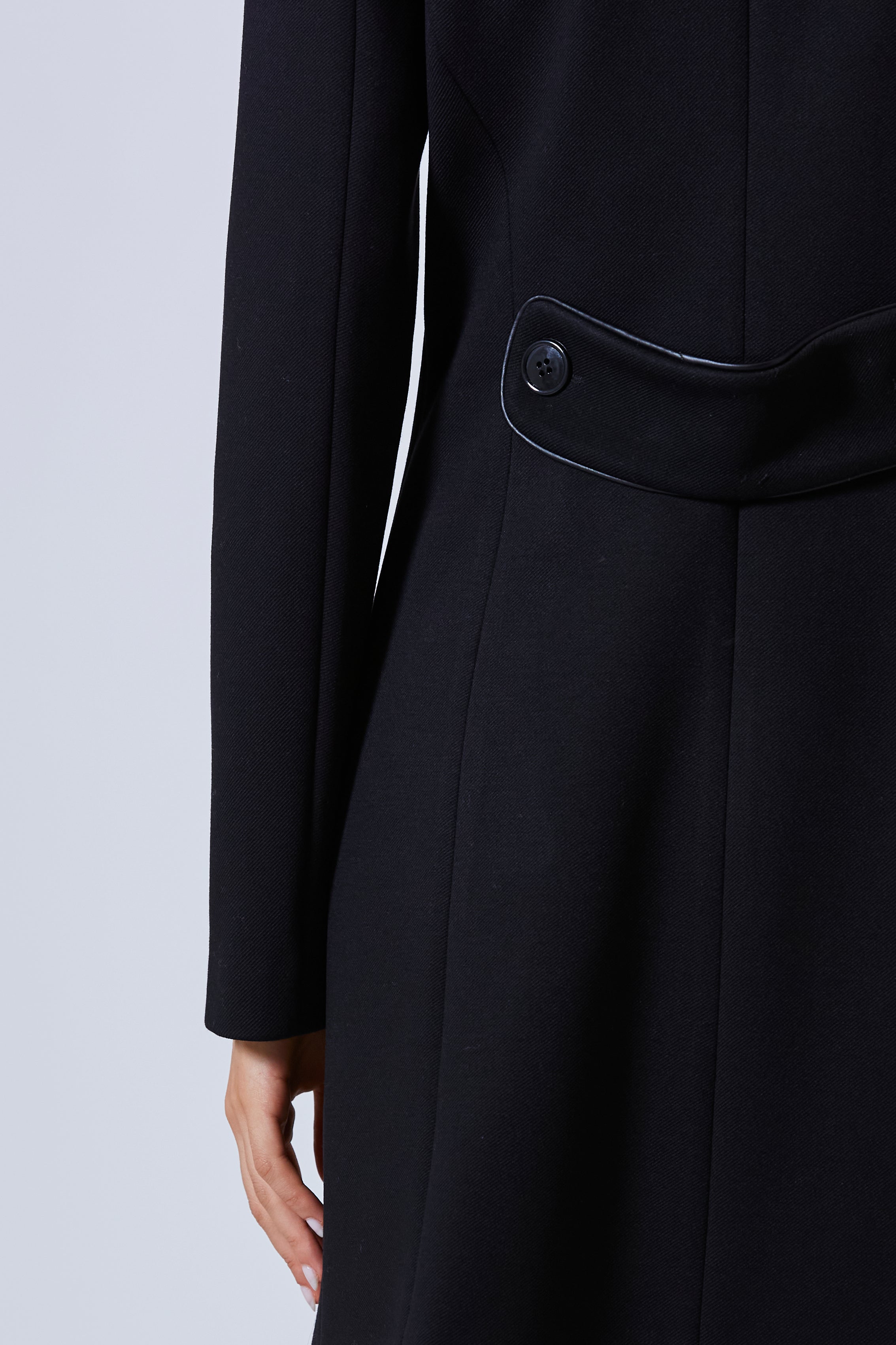 La struttura è definita, netta. Niente è lasciato al caso. Le spalle sono disegnate con rigore geometrico, i fianchi seguono la linea del corpo con garbo architettonico. È un capo che scolpisce, non comprime; che dà forma senza togliere spazio. Quando lo si indossa, si ha la sensazione di assumere una nuova postura — più eretta, più sicura, come se il tessuto stesso ricordasse alla pelle chi sei davvero quando ti permetti di occupare tutto lo spazio che meriti.