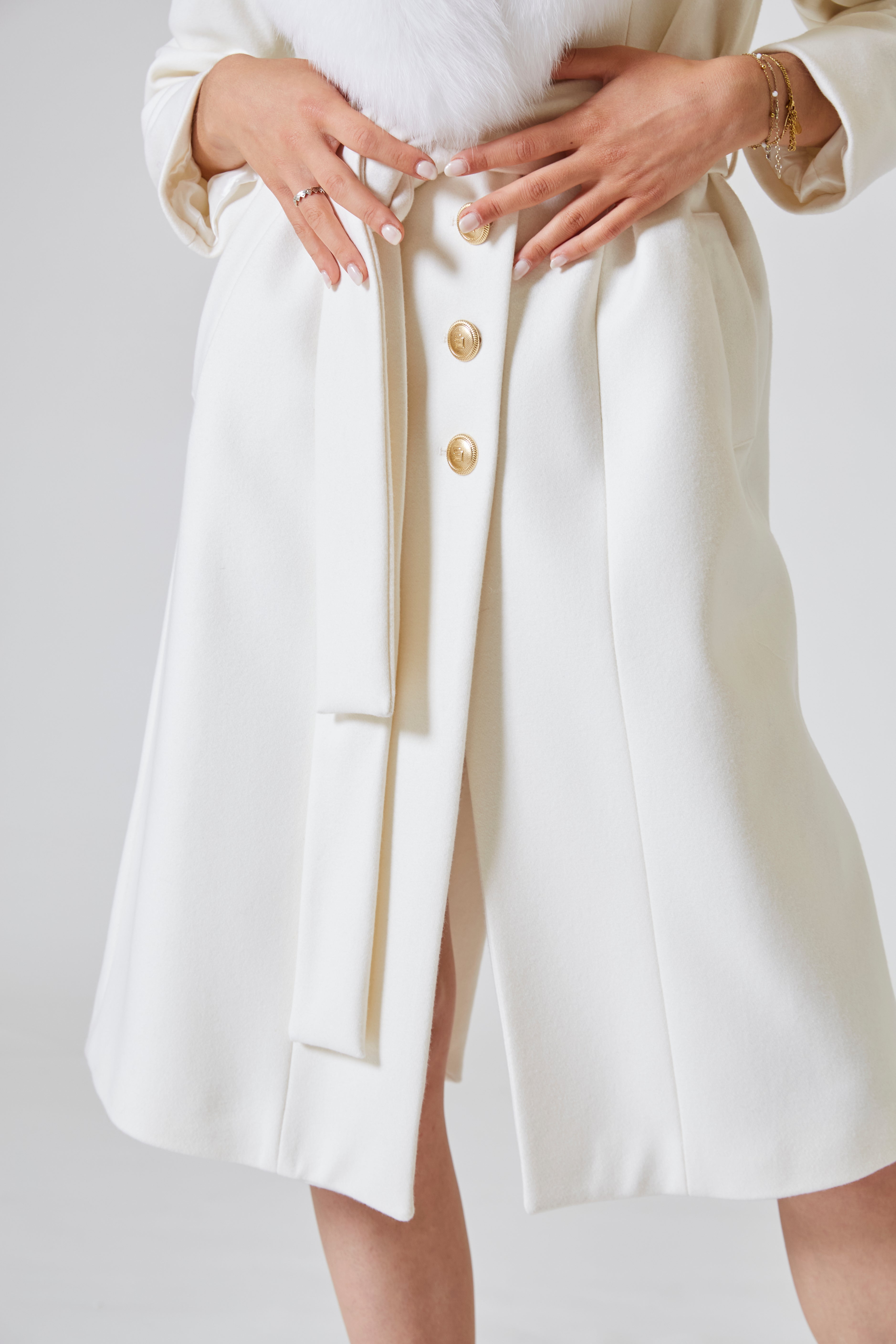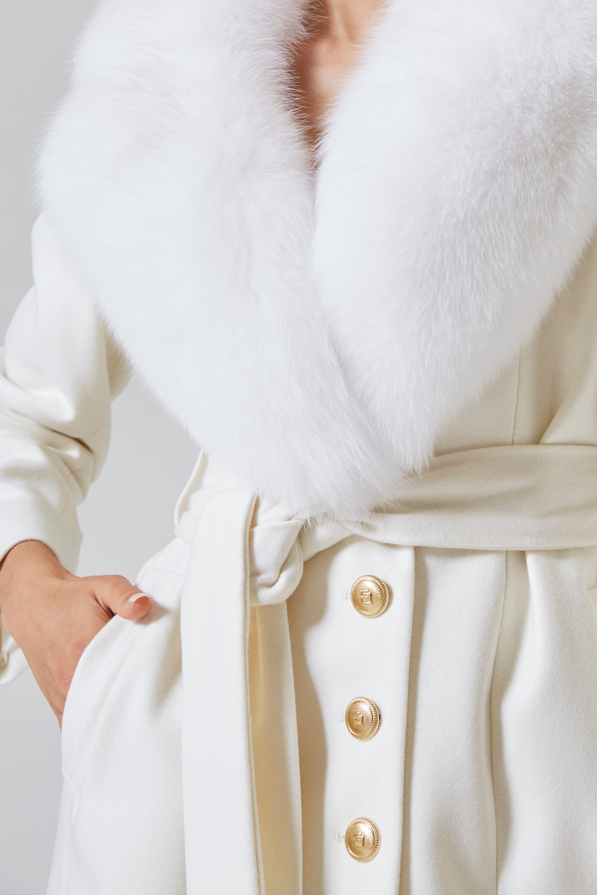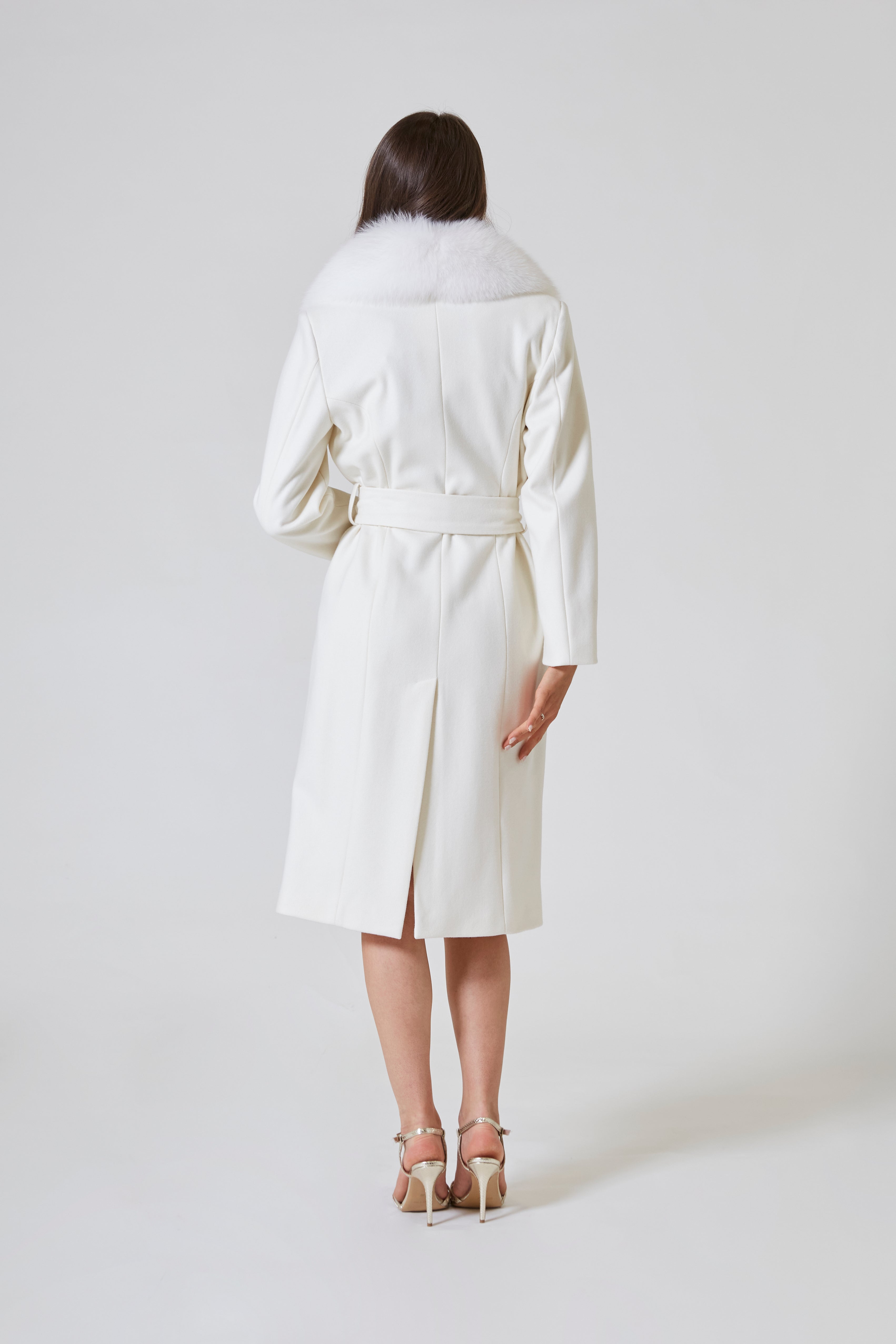 Il collo, che si ergeva alto e fiero, sembrava una torre che custodiva il mistero della bellezza più pura. Lì, dove il vento dell'inverno si infrangeva, il cappotto rivelava il suo segreto: un reverse di pelliccia che scivolava come una carezza preziosa. Morbida, lucente, quasi sussurrante, la pelliccia era come un bacio che si faceva strada tra il freddo, promettendo calore e tenerezza in ogni istante. Era un invito a lasciarsi avvolgere dalla bellezza, a farsi cullare dal lusso senza mai esserne sopraffatti.