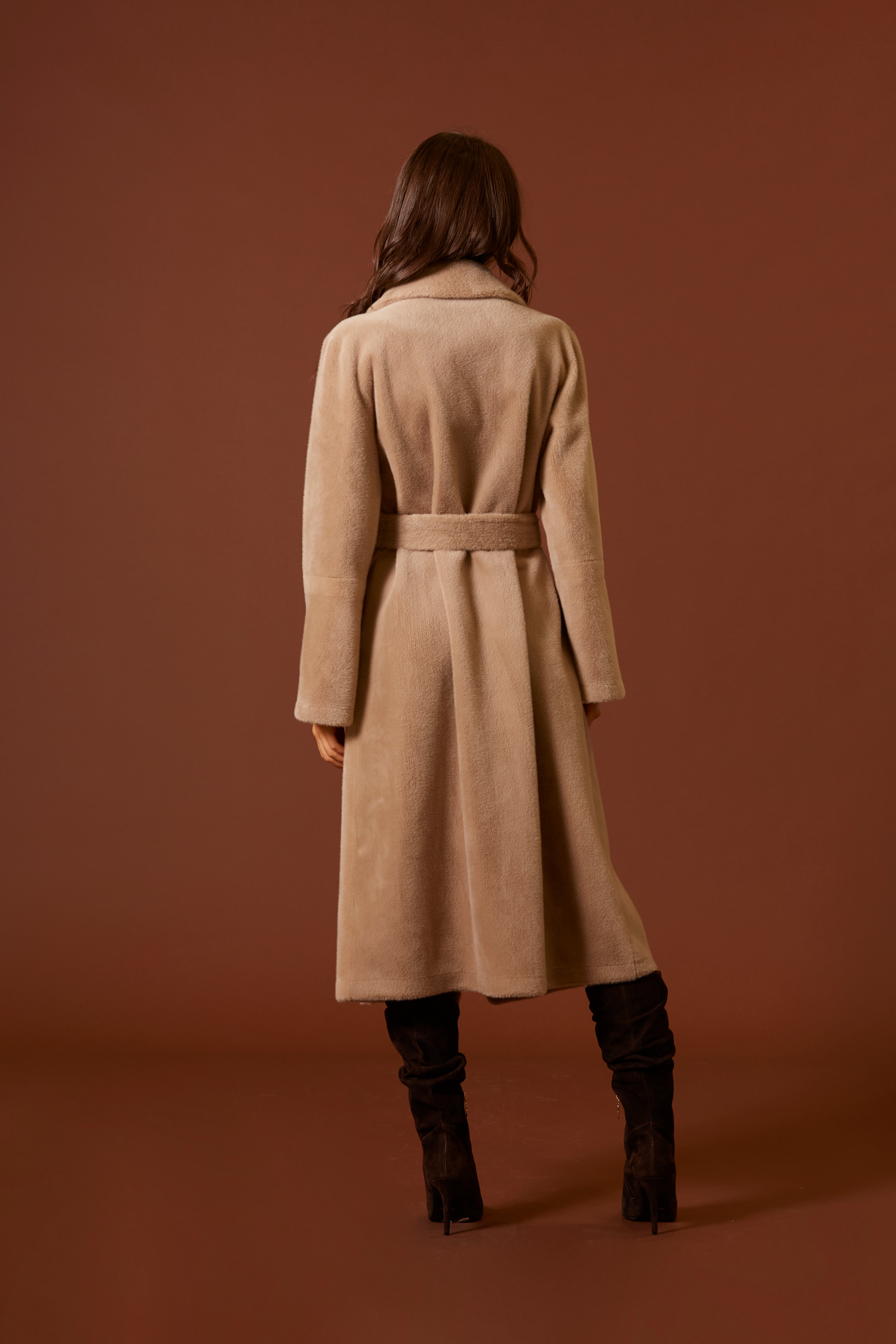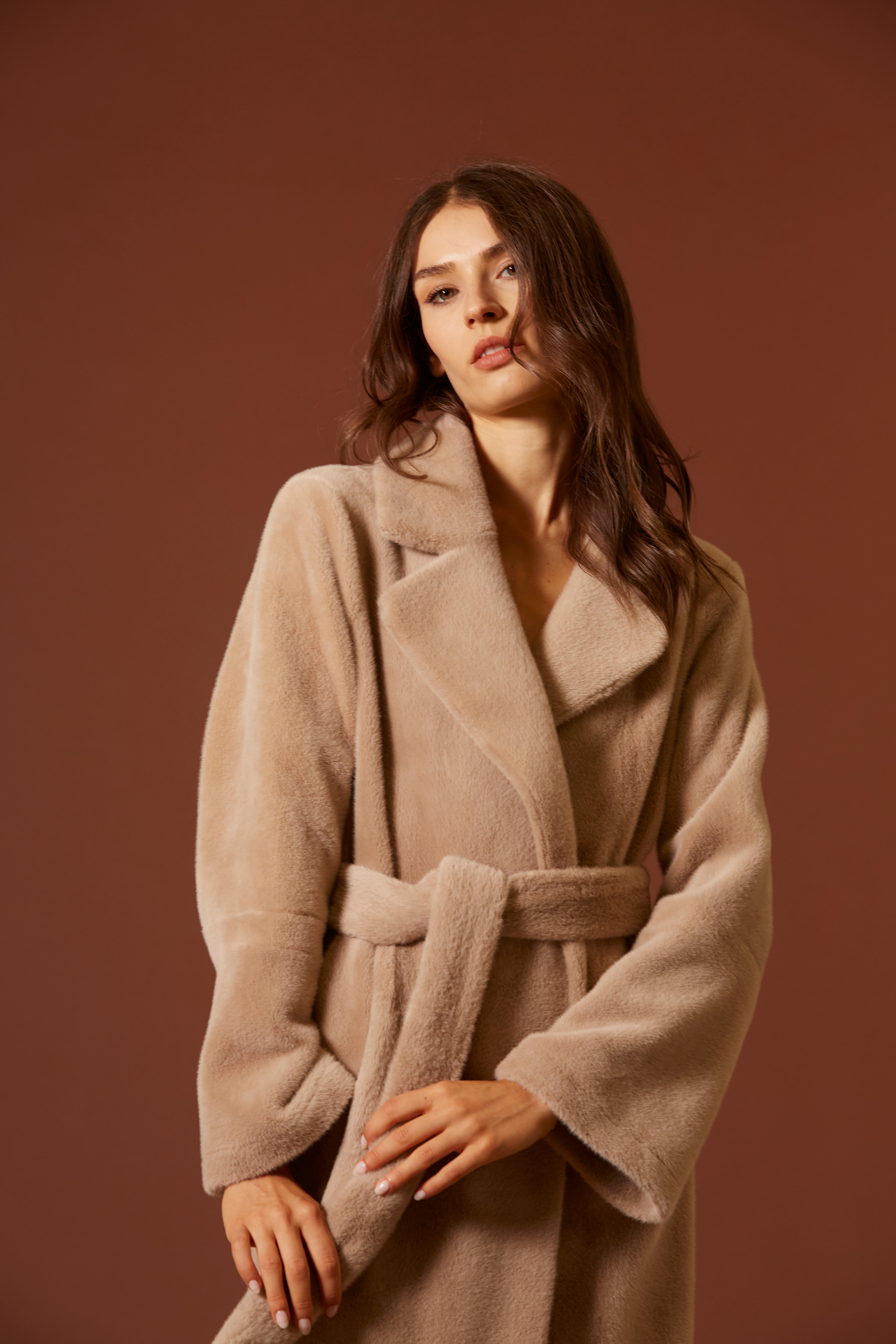 Era una pelliccia che non imitava, ma interpretava. Lunga, avvolgente, costruita per lasciare il segno senza mai chiedere il permesso. Non gridava lusso, lo sussurrava con la voce profonda delle cose fatte con cura — e con coscienza. Eco, sì, ma senza rinunciare a niente: né alla morbidezza, né alla presenza scenica.