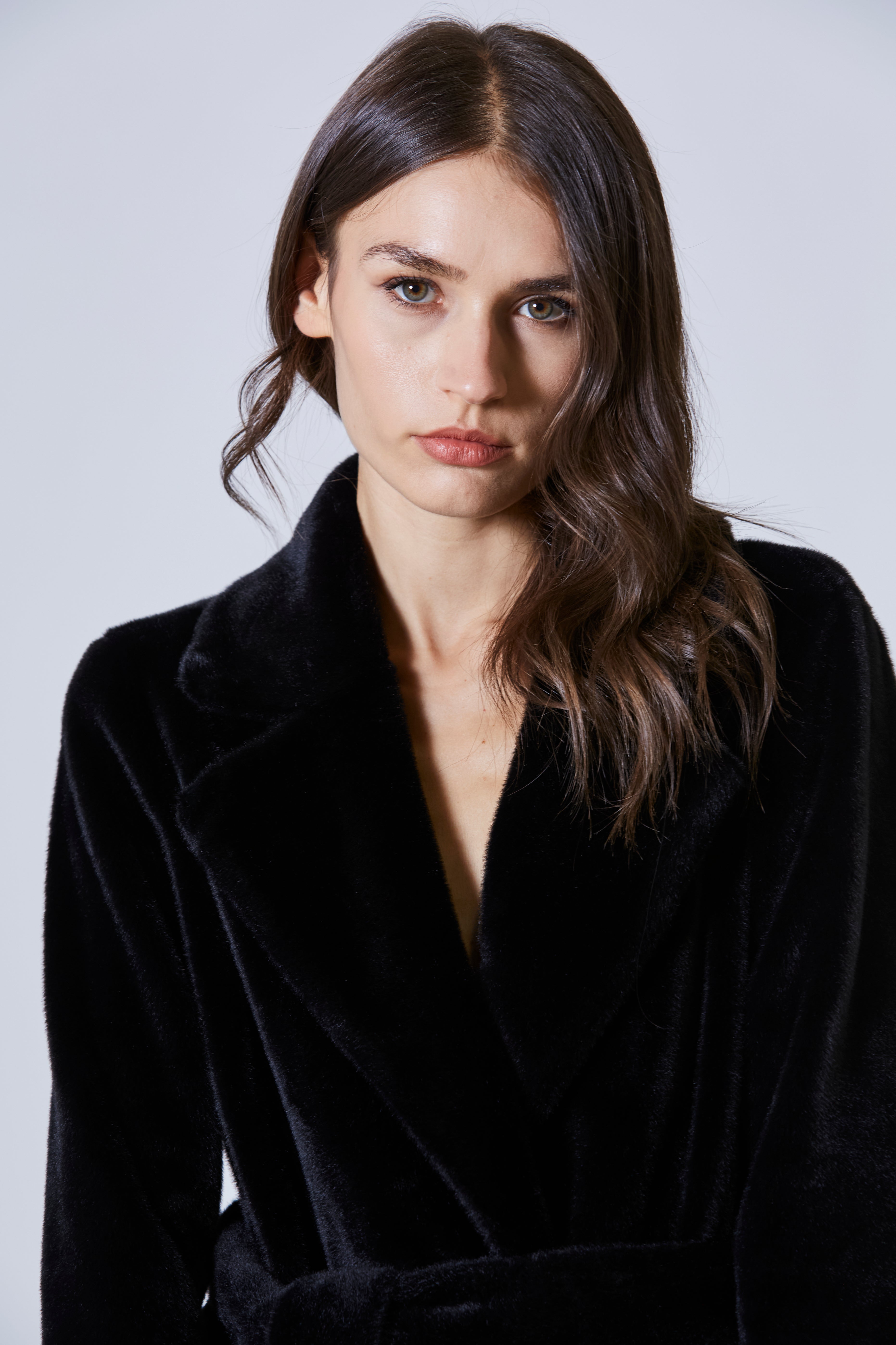 Era una pelliccia che non imitava, ma interpretava. Lunga, avvolgente, costruita per lasciare il segno senza mai chiedere il permesso. Non gridava lusso, lo sussurrava con la voce profonda delle cose fatte con cura — e con coscienza. Eco, sì, ma senza rinunciare a niente: né alla morbidezza, né alla presenza scenica.