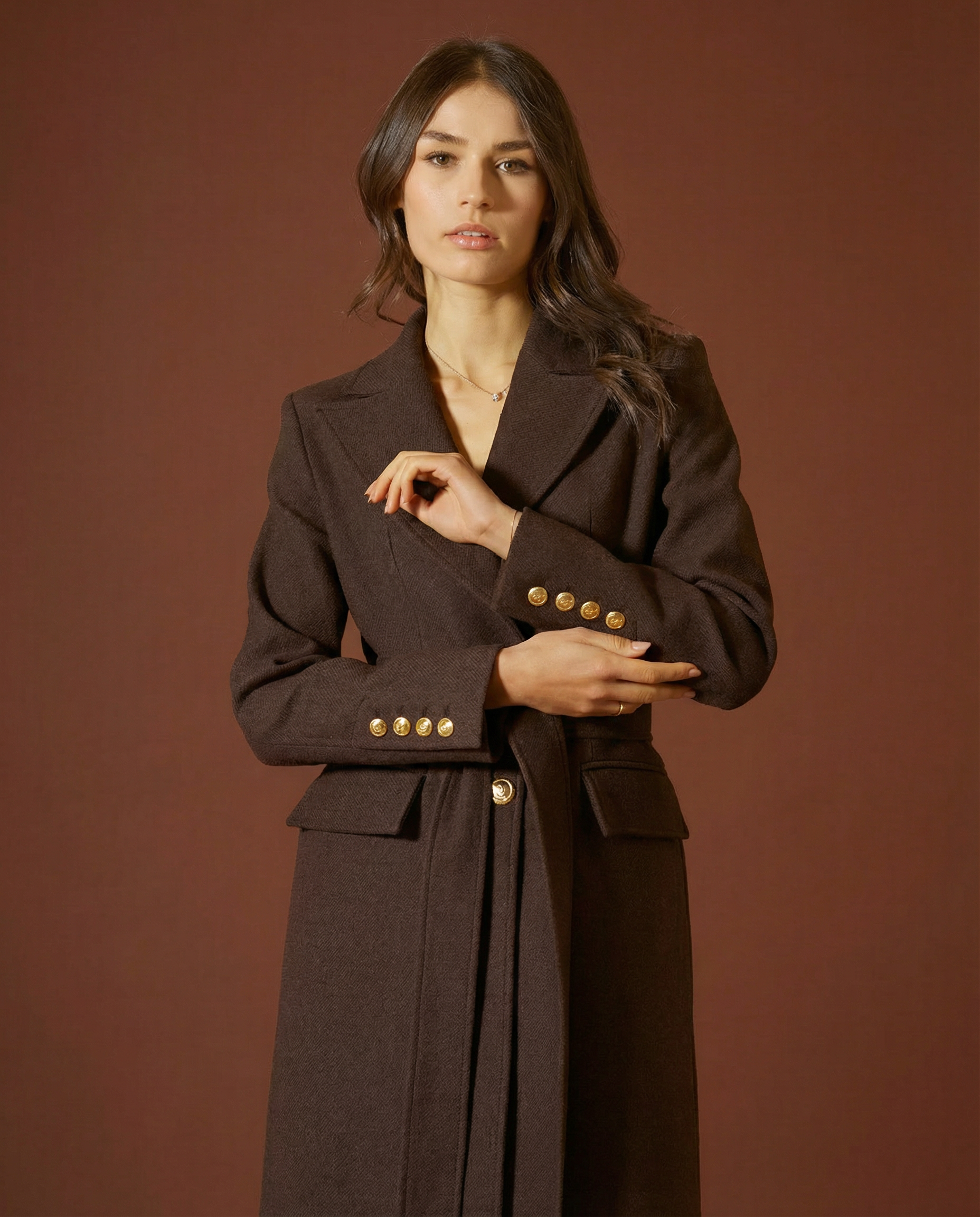 C’era un’eleganza silenziosa, quasi cinematografica, in quel cappotto lungo che scivolava fino a sfiorare le caviglie. Non era solo un capo d’abbigliamento, ma un modo di camminare nel mondo: deciso, raffinato, consapevole. Il tessuto, compatto e fluido al tempo stesso, cadeva con la perfezione di una linea disegnata a mano, seguendo i movimenti del corpo con la grazia di una sciarpa portata dal vento.
