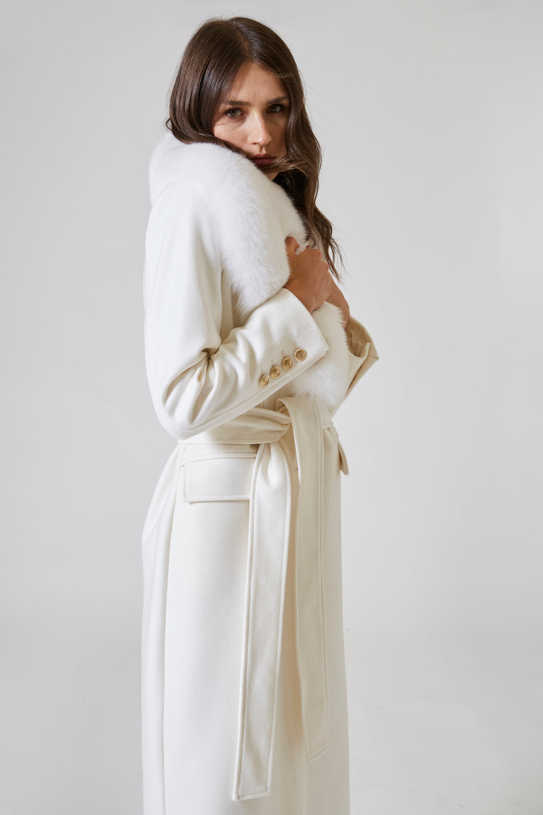 Indossarlo non è solo un gesto, è un’esperienza che trasforma chi lo porta in una versione più affascinante di sé stessa. È come essere avvolti in una nuvola di eleganza, camminando con la grazia di chi sa che la bellezza non ha bisogno di essere ostentata, ma si fa riconoscere dal suo silenzioso splendore. Ogni passo in questo cappotto è un passo verso l’eleganza eterna, un viaggio senza tempo in cui il lusso e la raffinatezza sono compagni di viaggio.