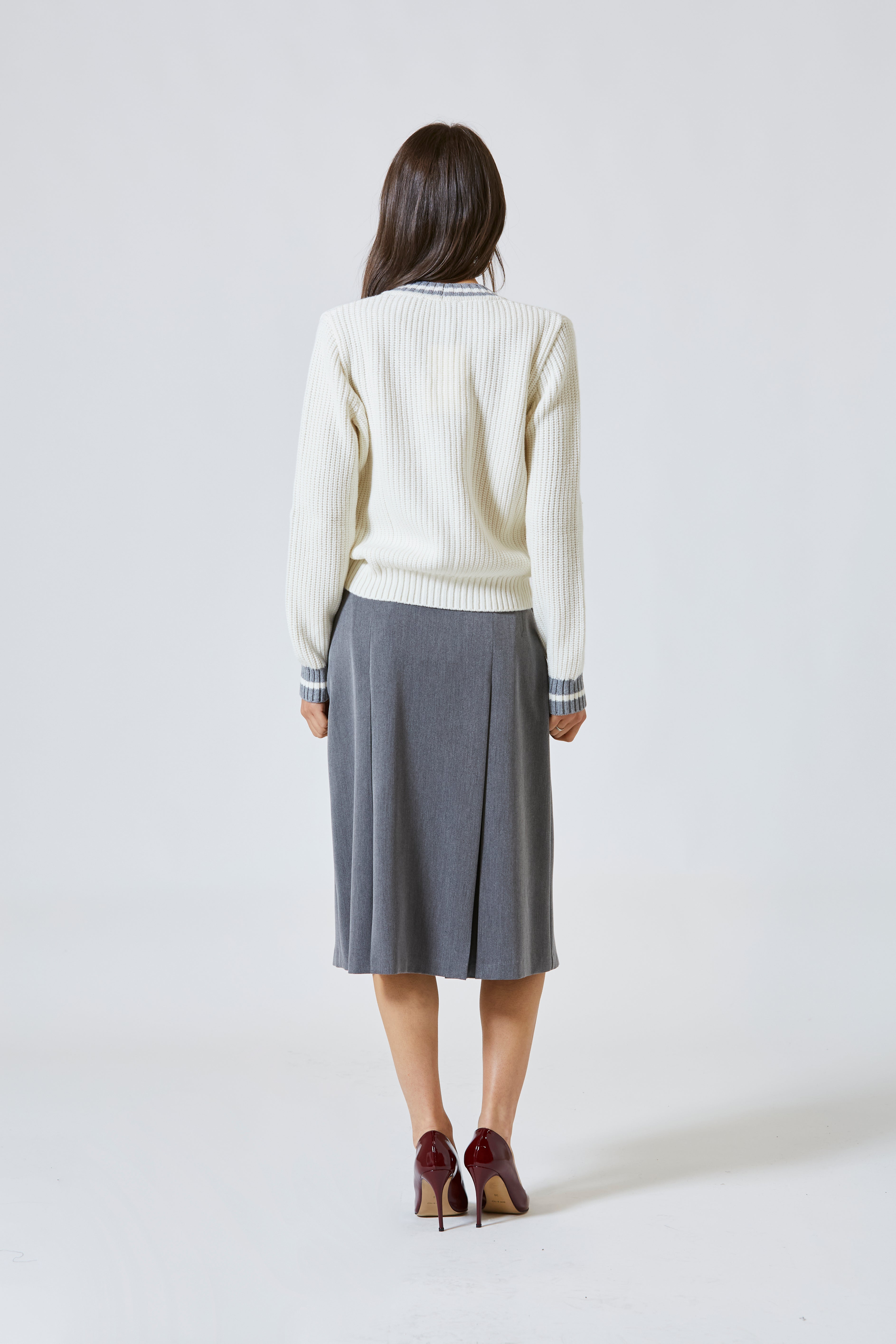 Il profilo bianco a contrasto, netto ma non invadente, correva lungo il bordo e i polsi con la precisione di una virgola in una frase perfetta.