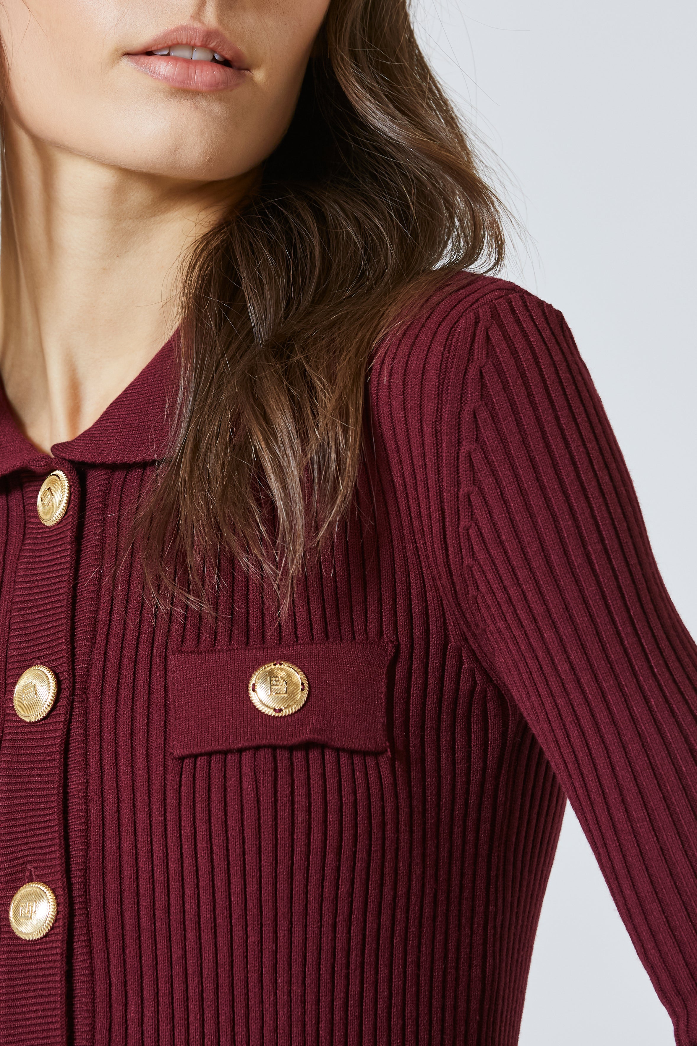 Sui lati dello scollo e sui polsi, piccoli bottoni oro FC scintillano come piccole gemme, aggiungendo un dettaglio di luce e preziosità senza mai risultare eccessivi. Le maniche lunghe scivolano morbide fino ai polsi, dove i bottoncini dorati chiudono il capo con un gesto di eleganza sartoriale, quasi un piccolo gioiello da indossare.