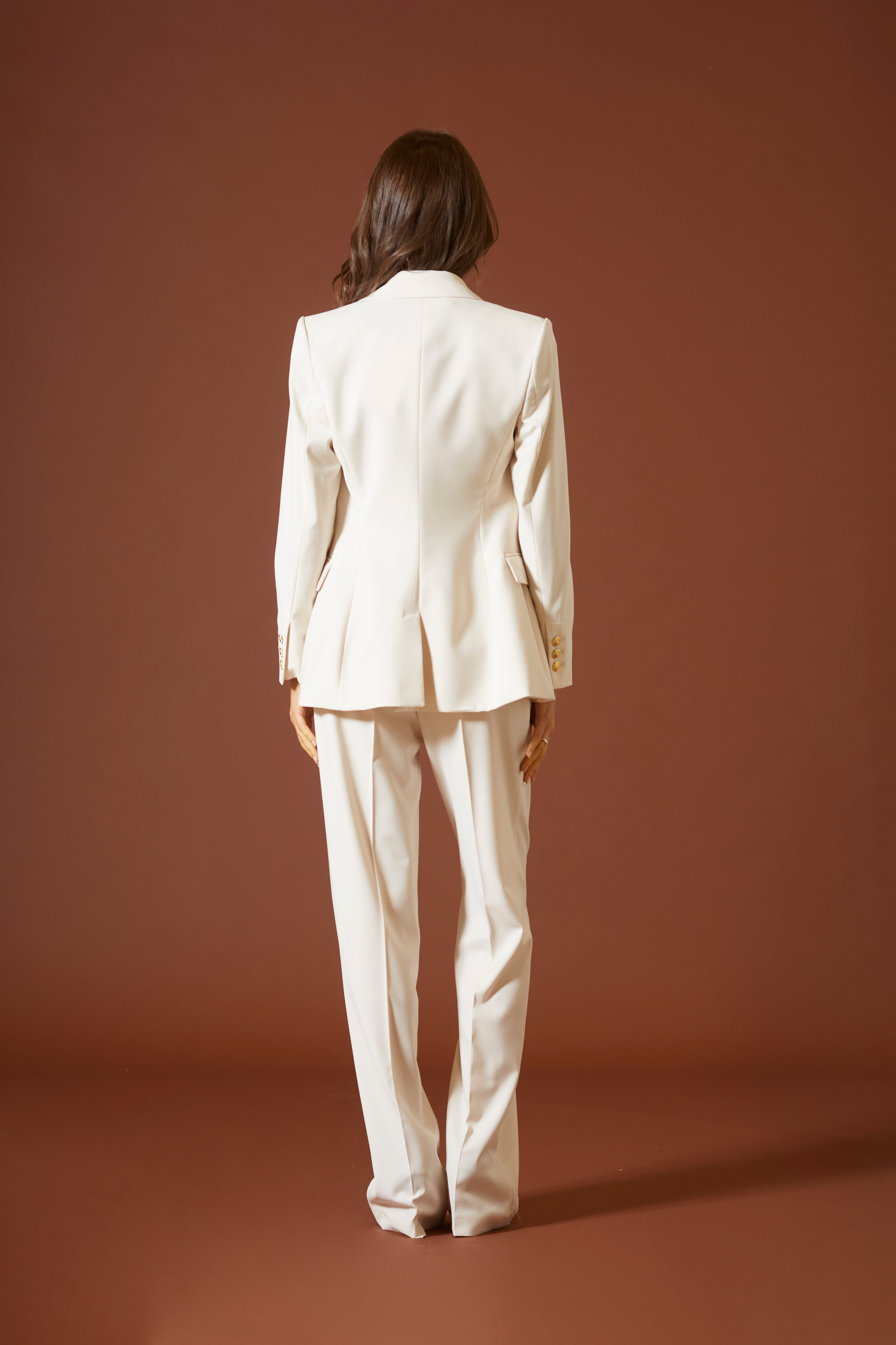 C’era una bellezza naturale, quasi disarmante, nella linea fluida di quella giacca doppiopetto. Avvolgeva il corpo con la sicurezza di un capo importante, ma con la delicatezza di un gesto gentile. Era il perfetto equilibrio tra rigore e morbidezza, tra il taglio sartoriale e la leggerezza di chi sa interpretare la femminilità in chiave moderna.