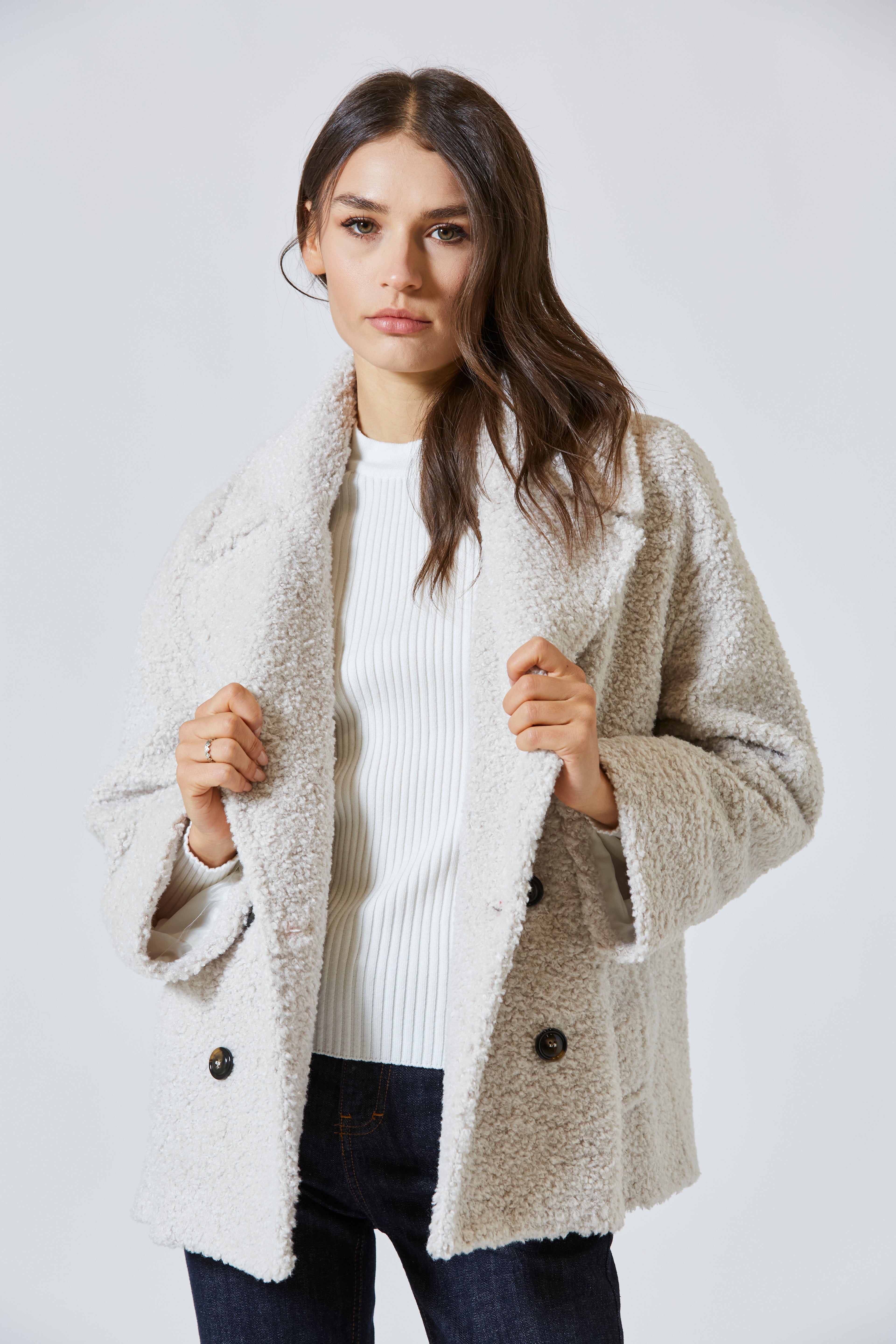 Perfetto da indossare sopra pantaloni ampi, abiti morbidi o anche con jeans e stivali chunky per un contrasto urbano, questo cappotto corto è pensato per la donna moderna: forte, libera, sofisticata, ma sempre con un tocco di morbidezza.