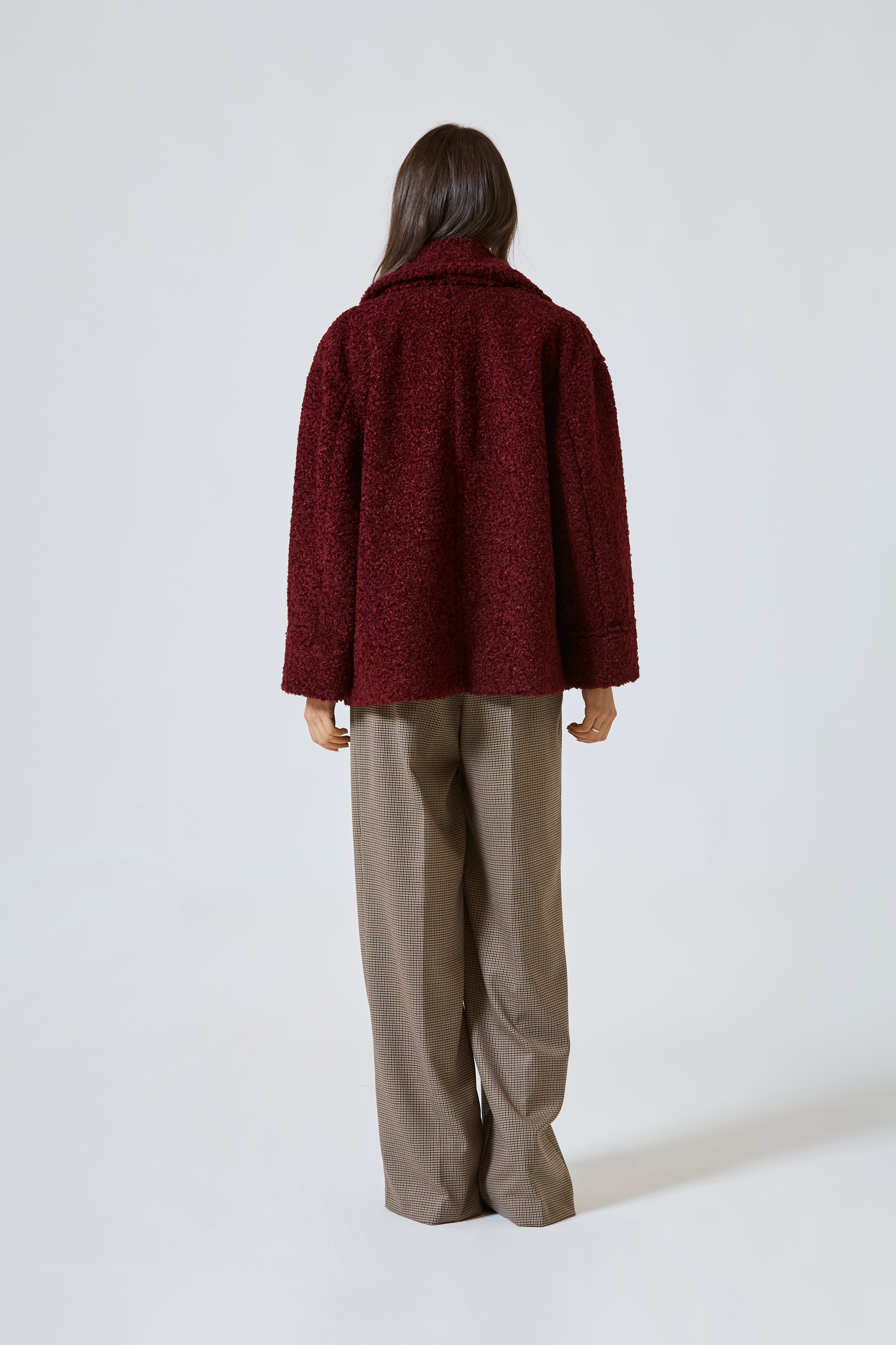 Perfetto da indossare sopra pantaloni ampi, abiti morbidi o anche con jeans e stivali chunky per un contrasto urbano, questo cappotto corto è pensato per la donna moderna: forte, libera, sofisticata, ma sempre con un tocco di morbidezza.