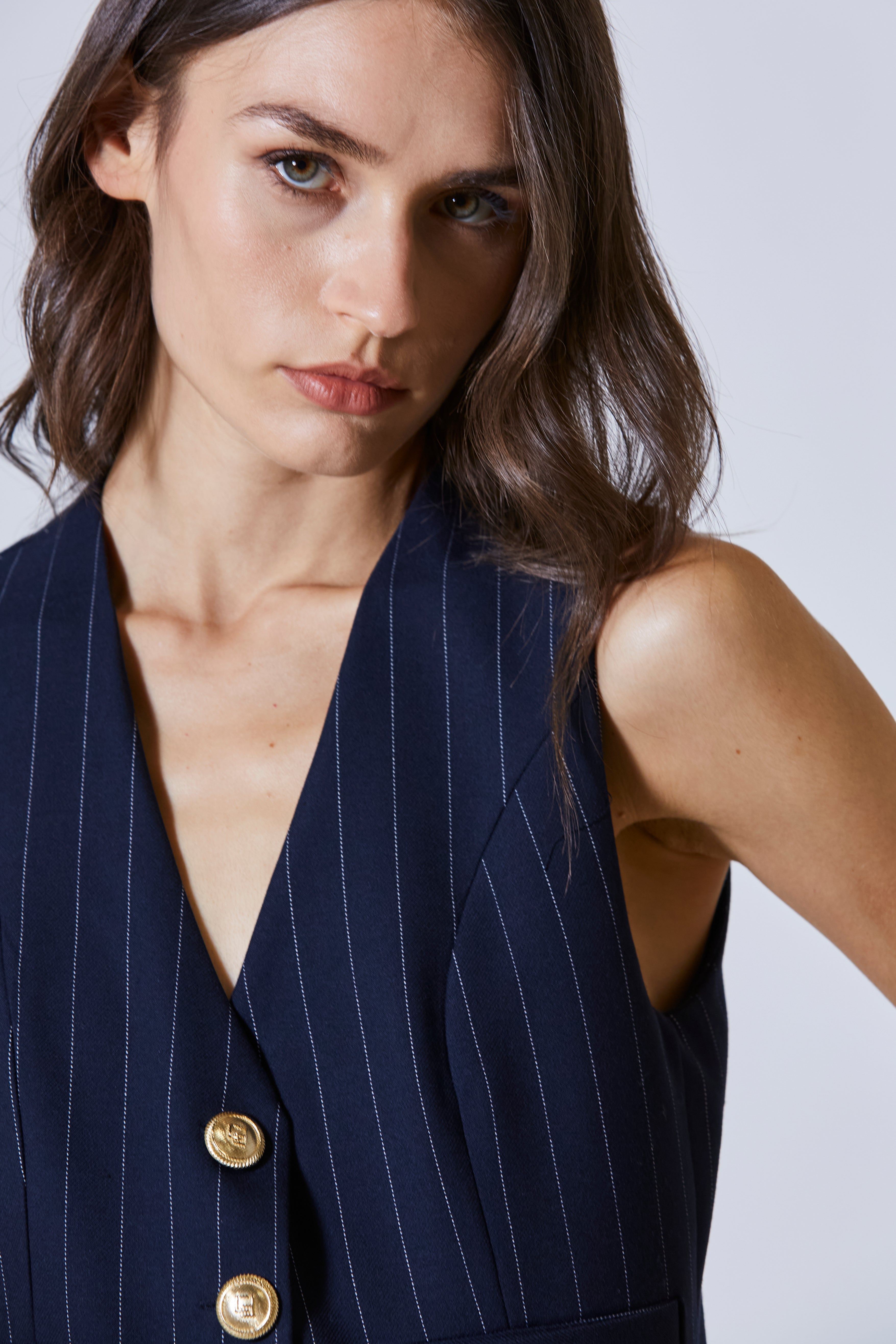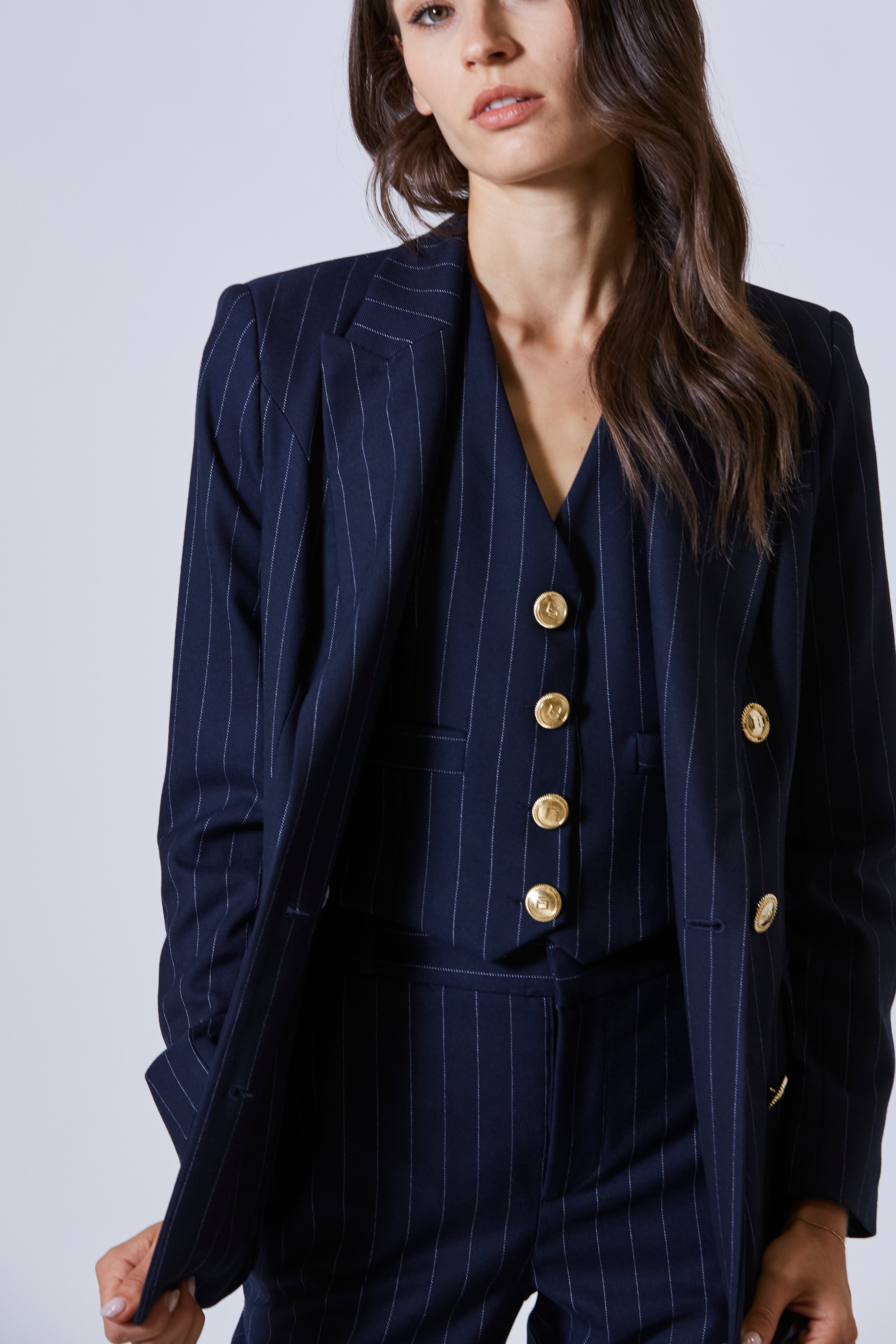 Un richiamo sottile alla sartoria maschile, riletto con grazia femminile e tutta l’audacia di chi sa giocare con i codici del classico.