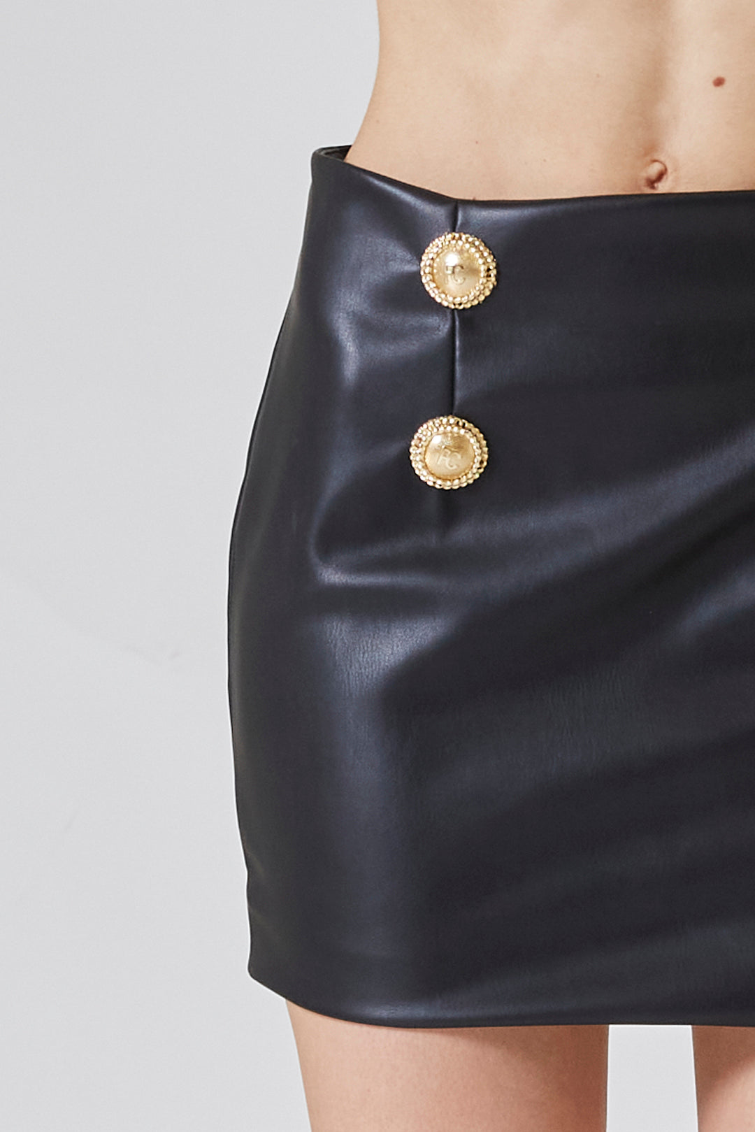 Realizzata in una ecopelle lucida, profonda, avvolgente, la gonna disegna il corpo con precisione sartoriale, seguendo la curva dei fianchi e fermandosi appena sopra le cosce, come un frammento di carattere ritagliato nel tessuto. Non scivola, non ondeggia: sta ferma, decisa, come se conoscesse già il proprio effetto.