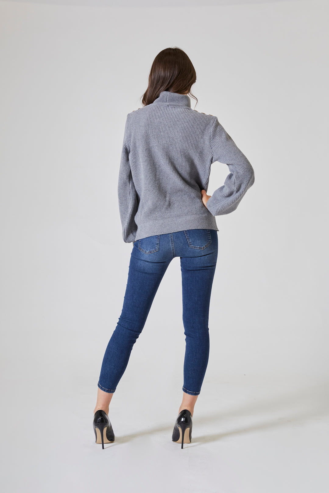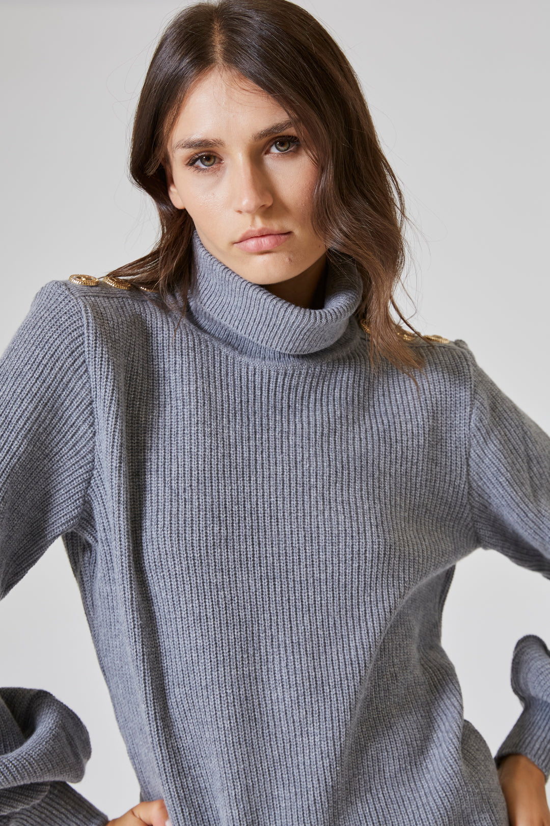 Il collo alto, ampio e morbido, si sollevava con grazia intorno al viso, come una carezza invernale — discreta ma presente. Non era rigido, non imponeva struttura: si adattava, seguiva, proteggeva.