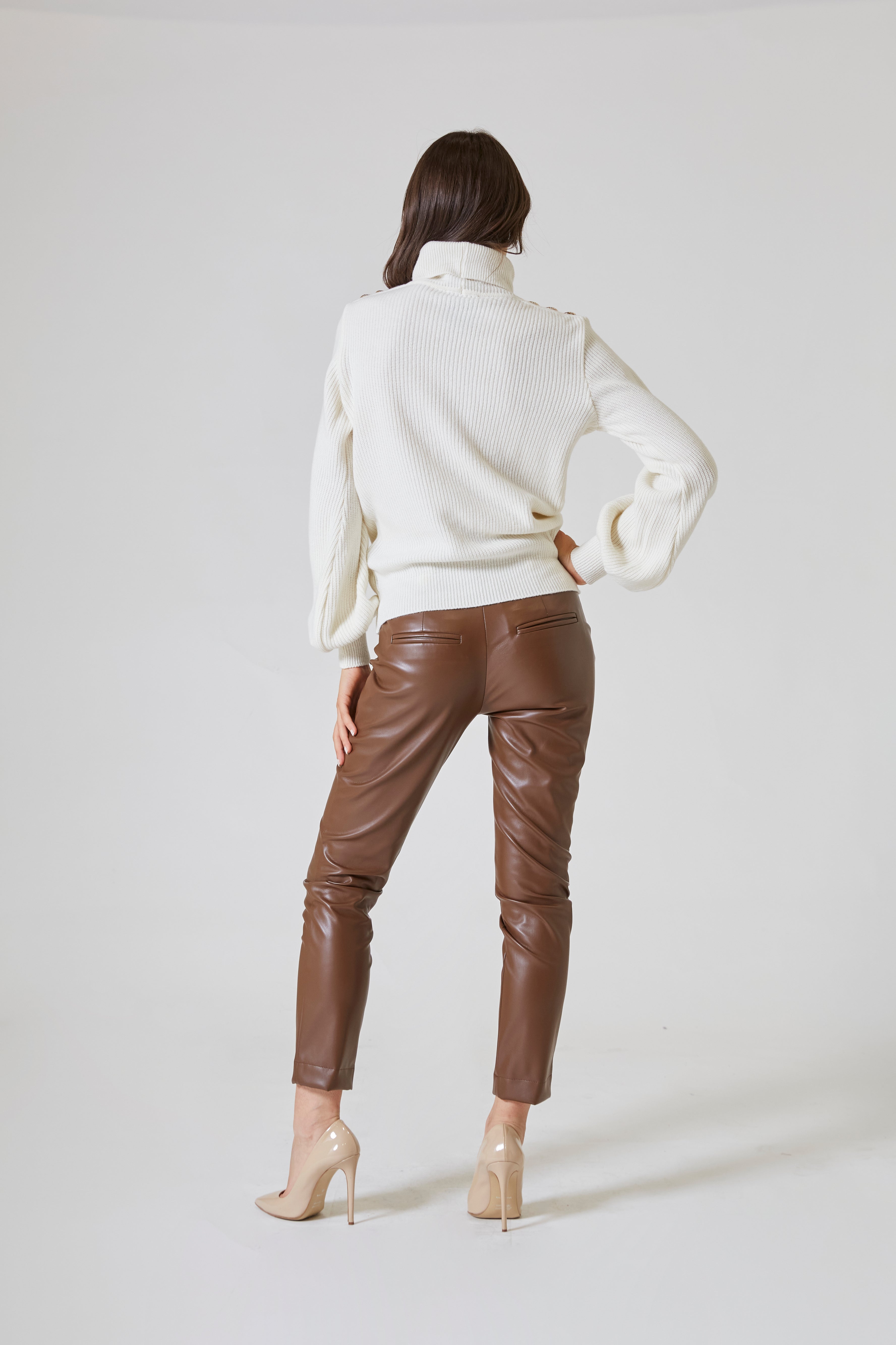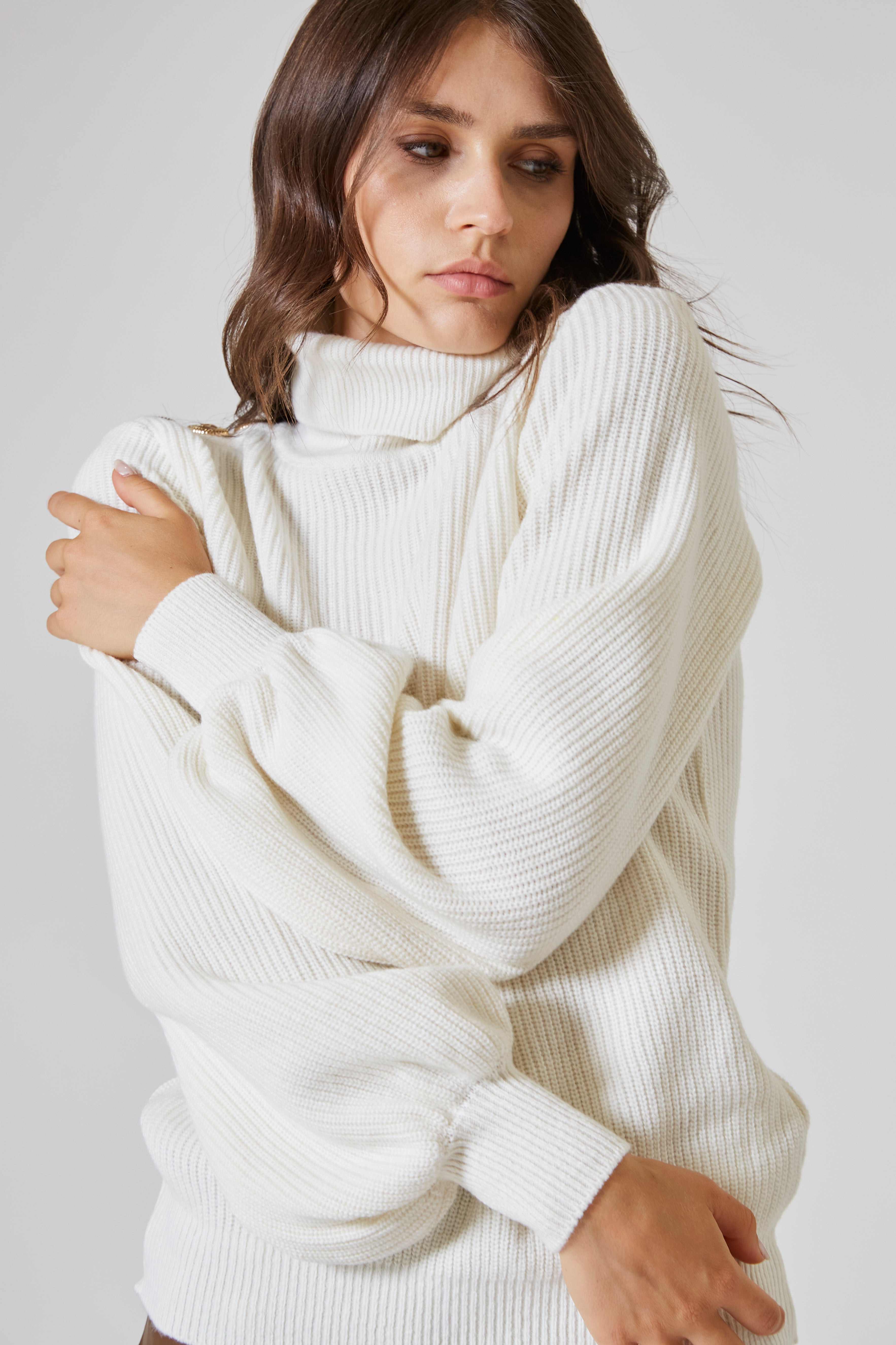 Il collo alto, ampio e morbido, si sollevava con grazia intorno al viso, come una carezza invernale — discreta ma presente. Non era rigido, non imponeva struttura: si adattava, seguiva, proteggeva.