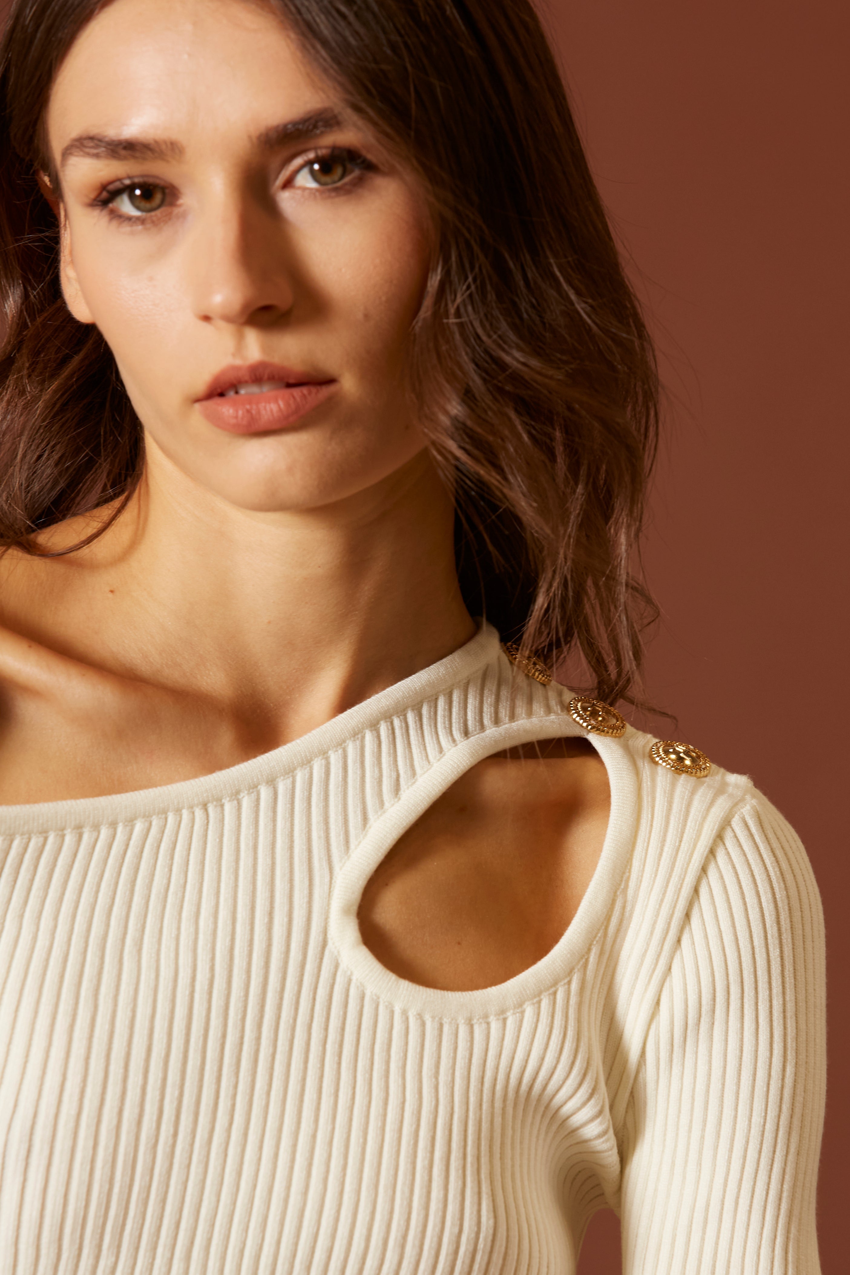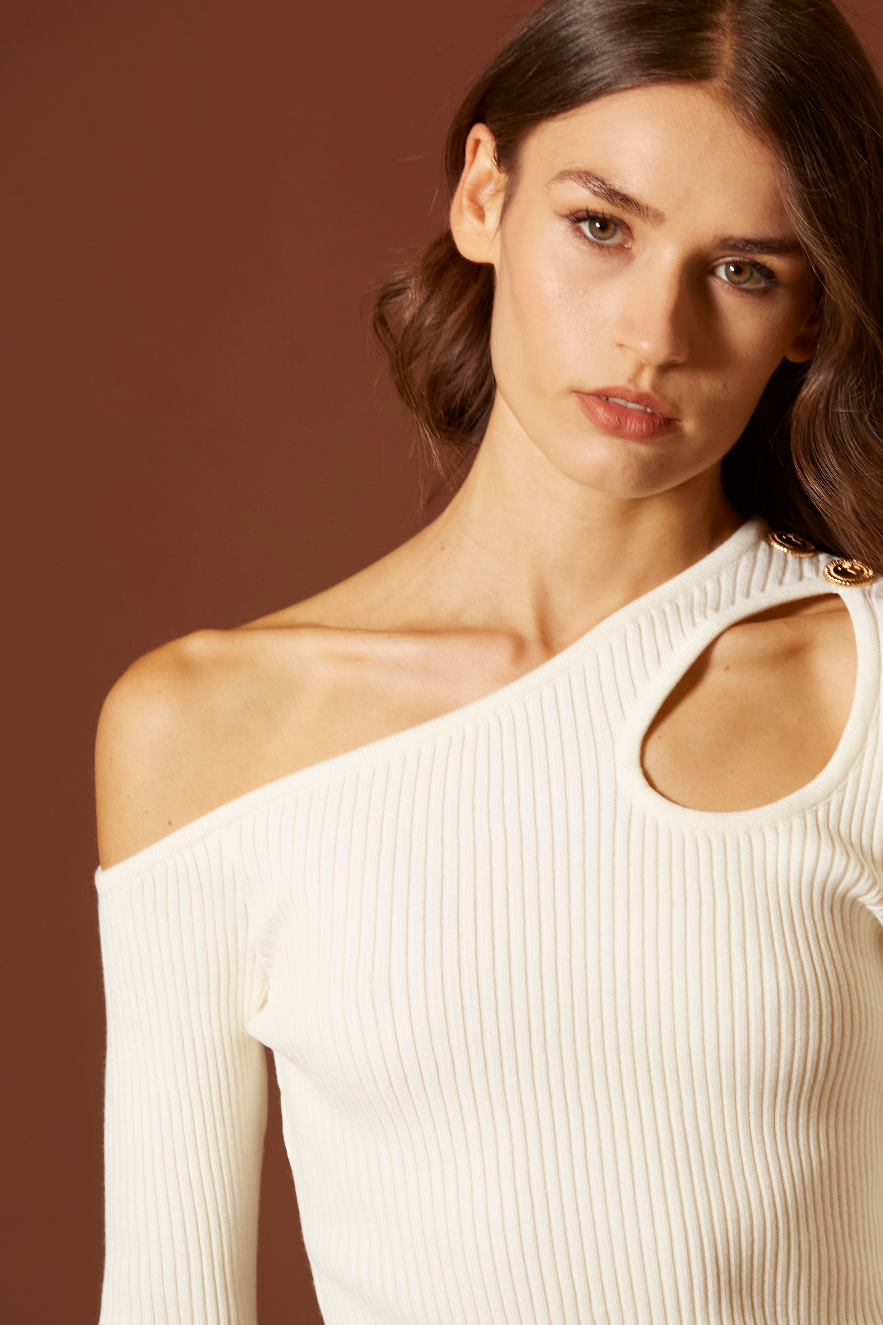 Era pensata per donne che non hanno bisogno di alzare la voce. A loro basta un dettaglio. Un taglio. Un riflesso d’oro su una spalla.