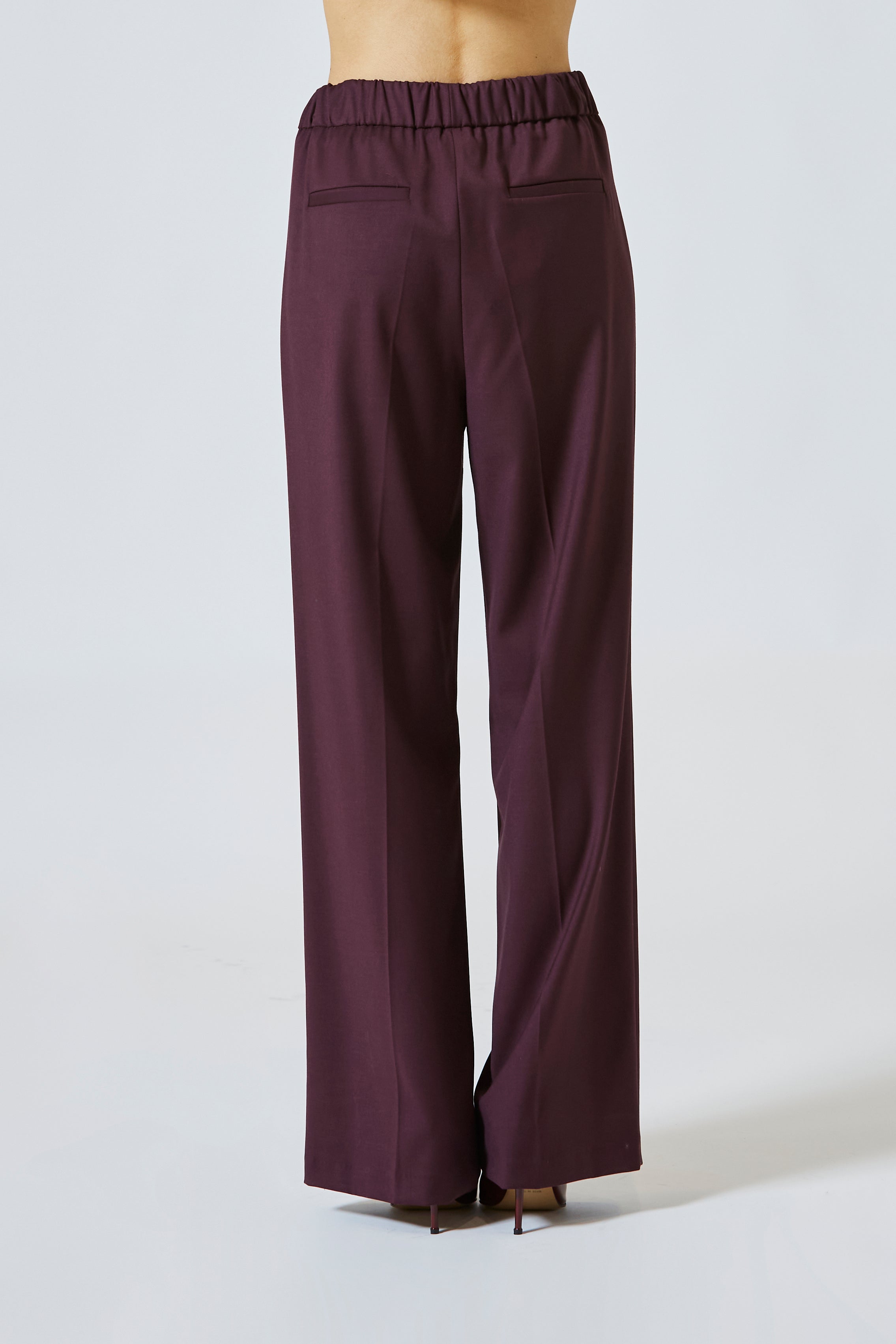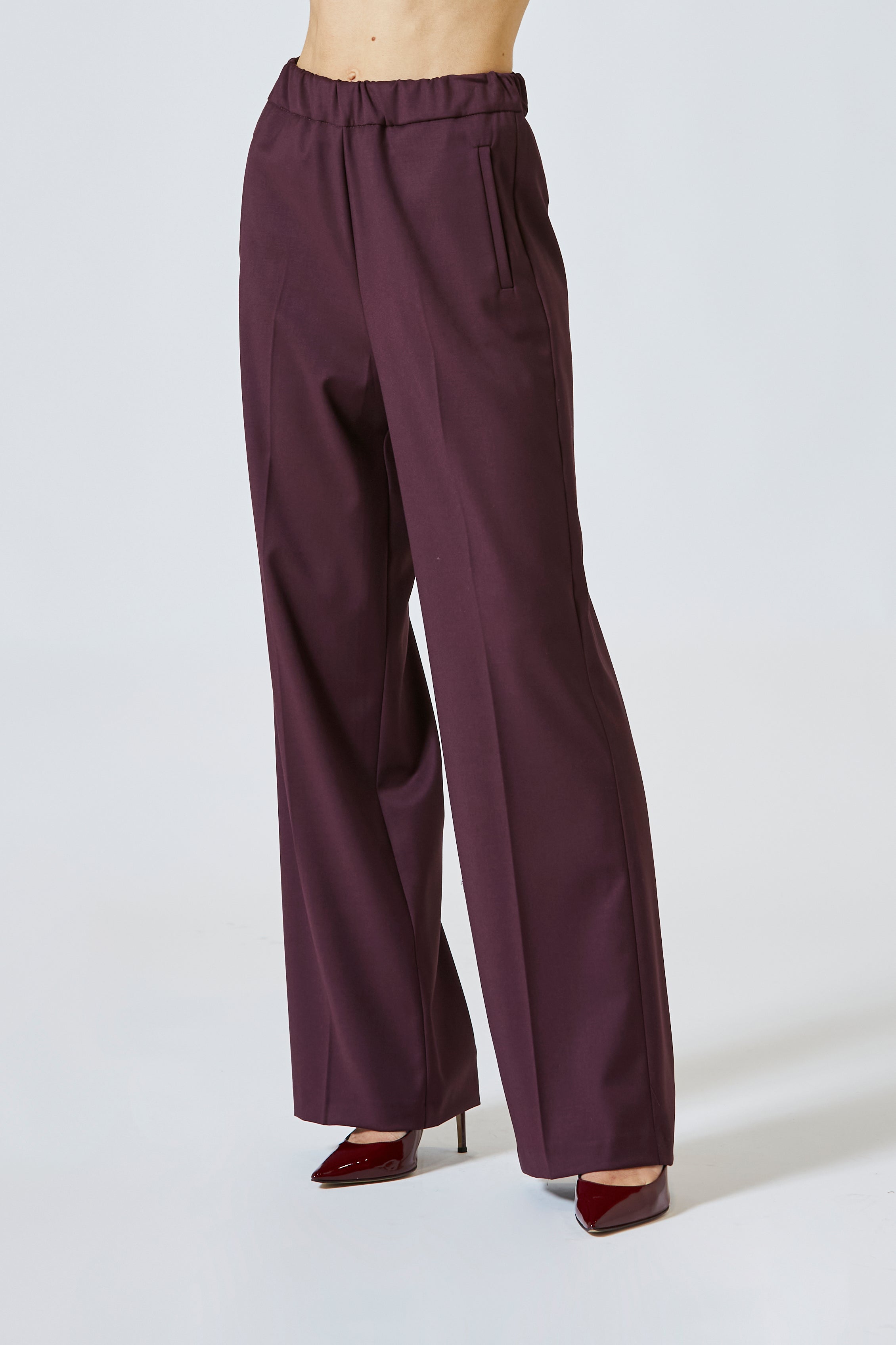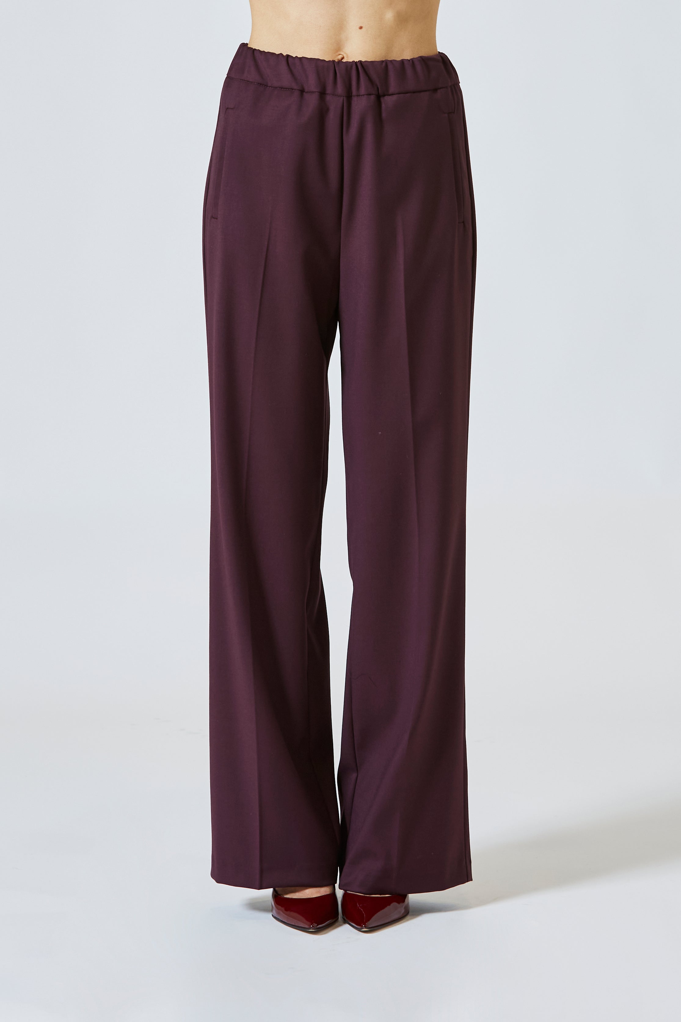 Realizzato in un tessuto pregiato Made in Italy, il pantalone scivola leggero sulle gambe, creando linee fluide che accompagnano il movimento naturale del corpo. L’elastico in vita garantisce comfort e praticità, adattandosi delicatamente alle forme senza rinunciare a stile e proporzioni perfette. La gamba ampia dona slancio e leggerezza, trasformando ogni passo in un gesto elegante e sicuro di sé.