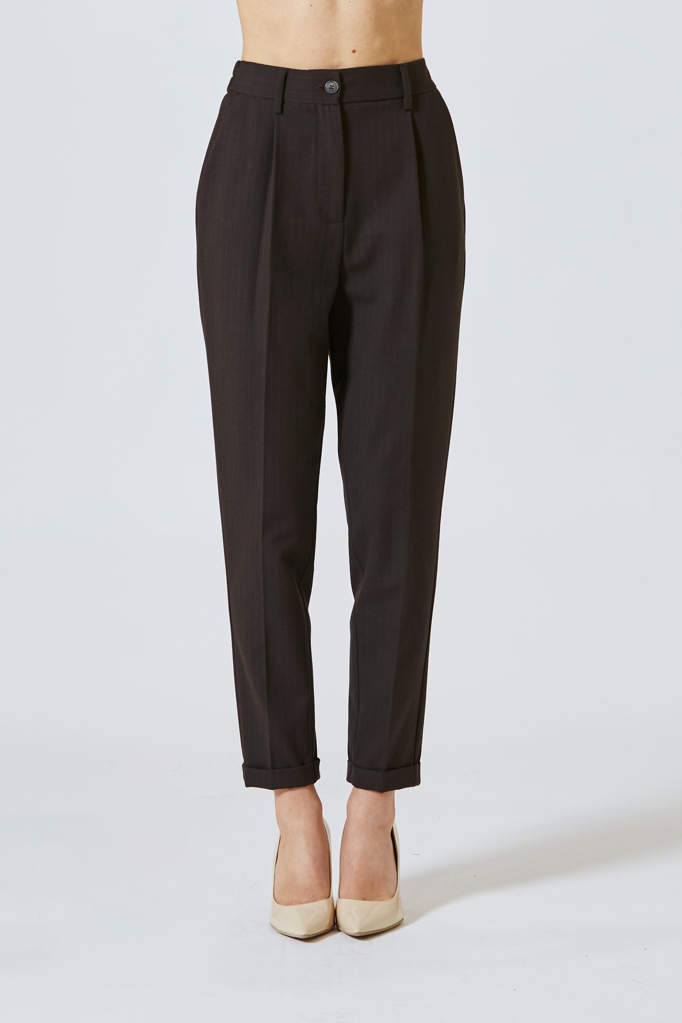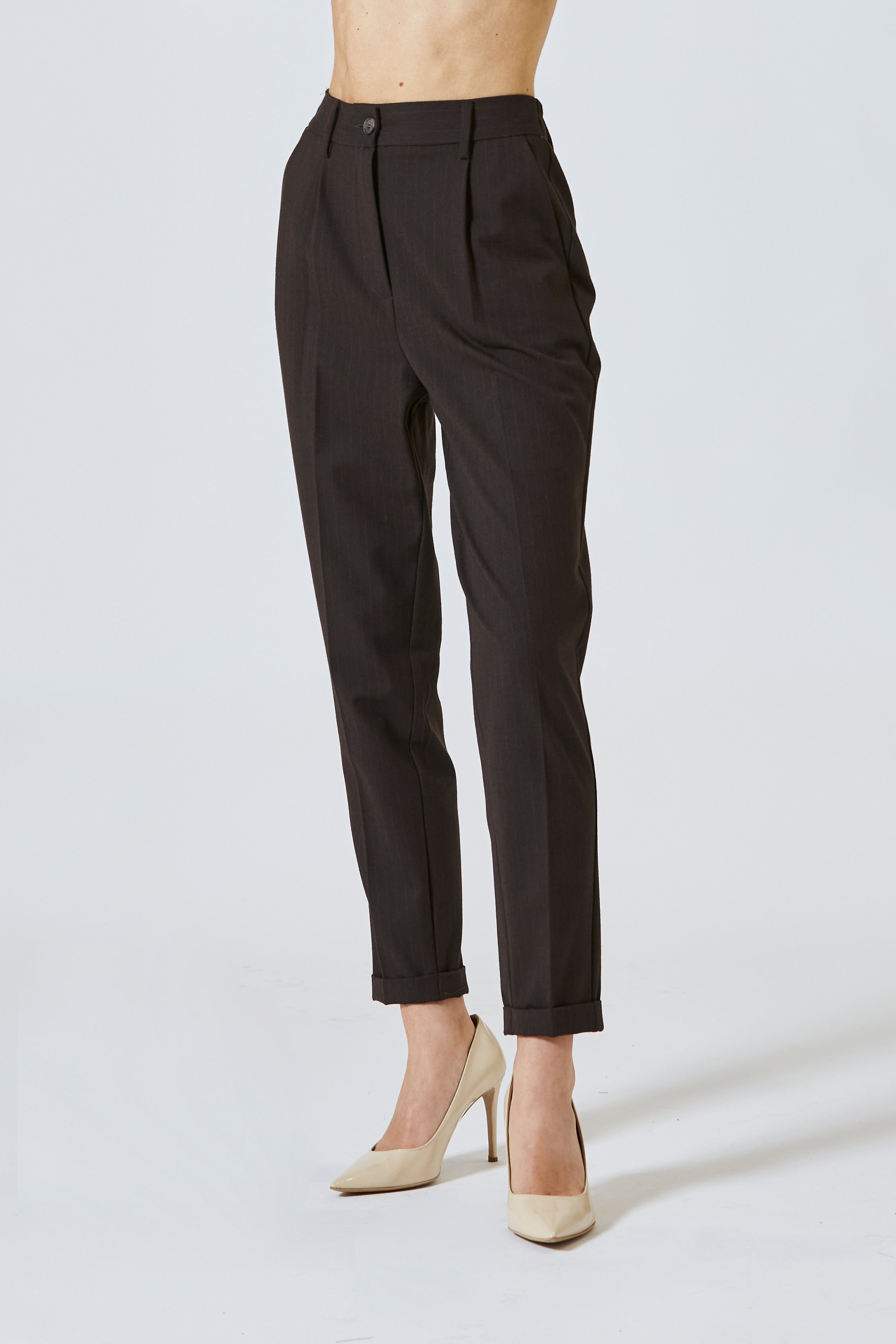 Il risvoltino alla caviglia, poi, aggiunge un tocco urbano e versatile, rompendo la formalità con una punta di ironia sottile. Una piega che racconta la storia di una donna che si muove tra uffici, aperitivi, viaggi e incontri, sempre con passo sicuro e stile riconoscibile. Da portare con un mocassino lucido, uno stivaletto o una sneaker minimal: ogni abbinamento lo veste di una nuova personalità.