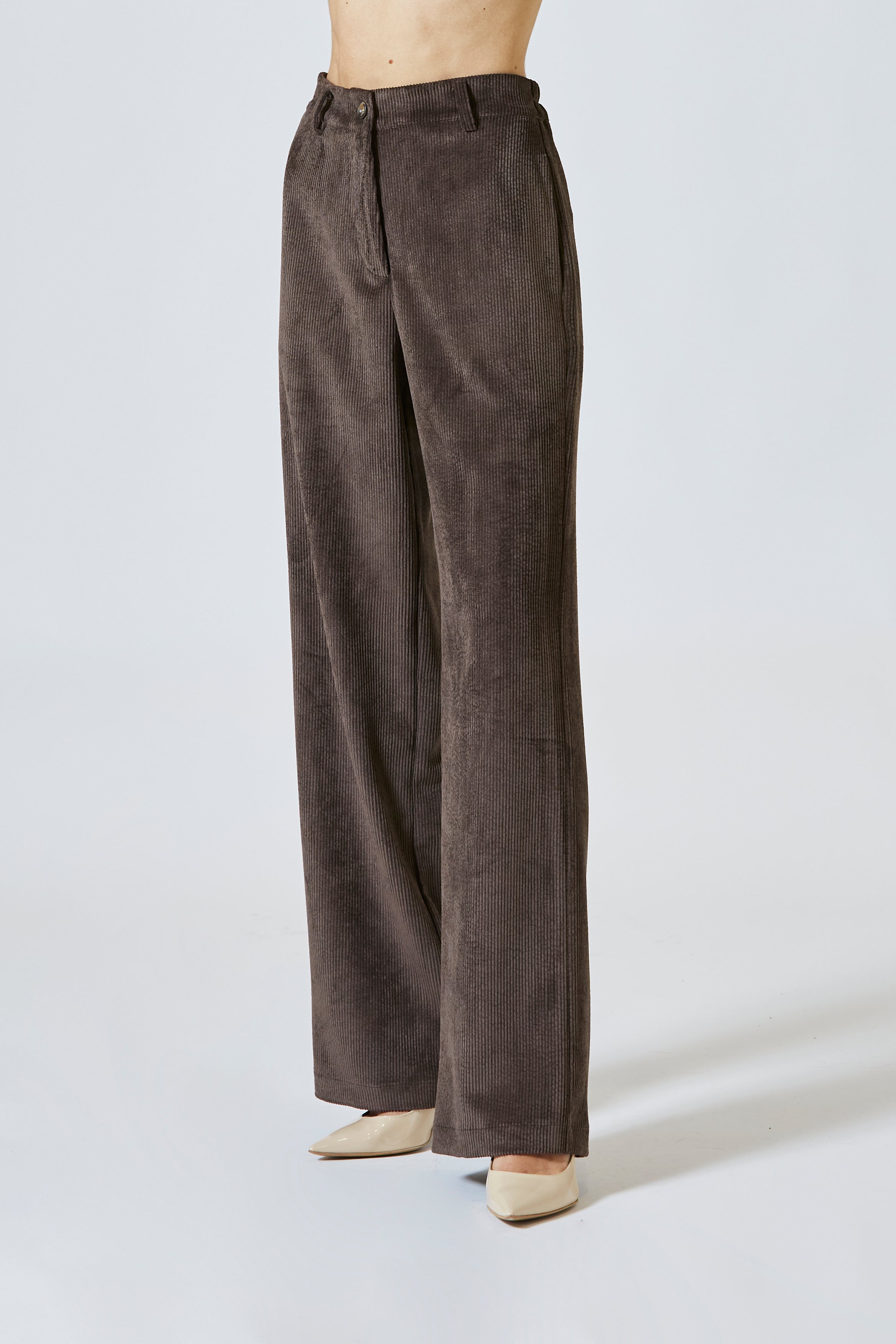 Perfetto se indossato come completo con la giacca in velluto, questo pantalone si presta anche a innumerevoli mix: con una camicia in seta per un’eleganza classica, con un top minimal per un look più disinvolto, o con un maglione oversize per un contrasto moderno e sofisticato.