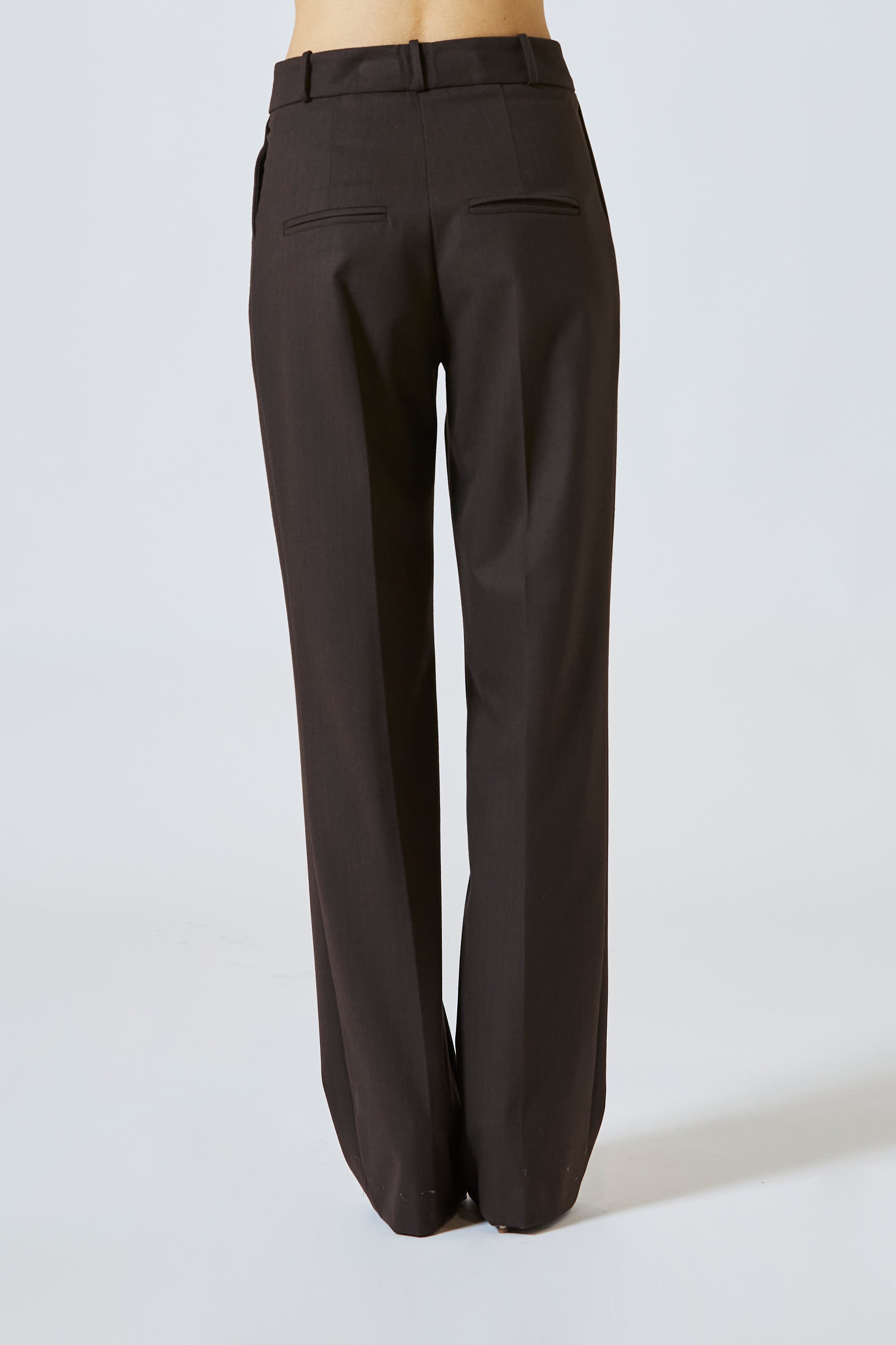 La vita regolare, leggermente alta, sottolinea il punto più elegante del corpo e dona slancio. Ai lati, le tasche anteriori a filo si aprono con naturalezza, mentre sul retro, due tasche a filetto mantengono la pulizia della linea, lasciando che a parlare siano il taglio e la trama.