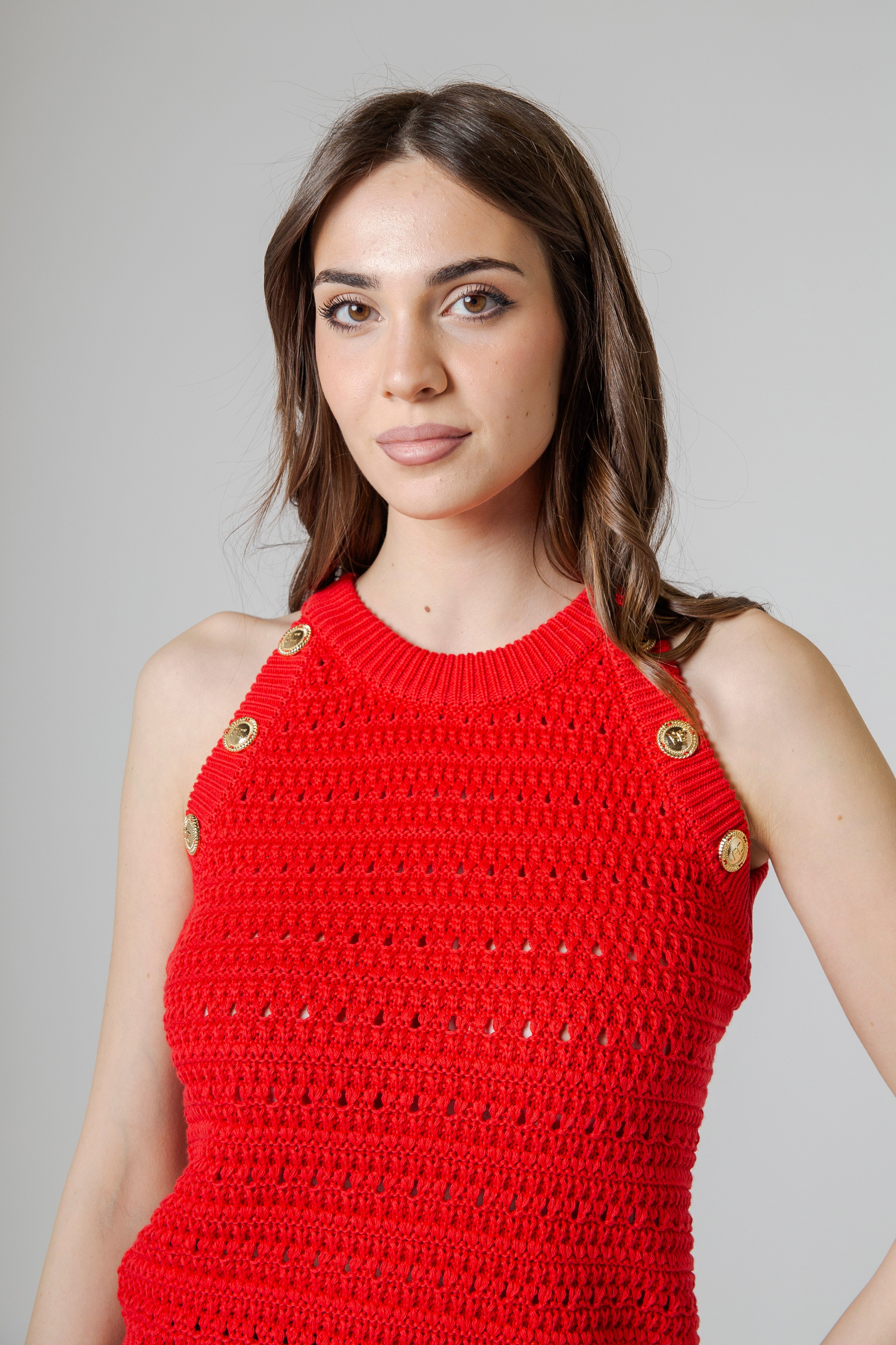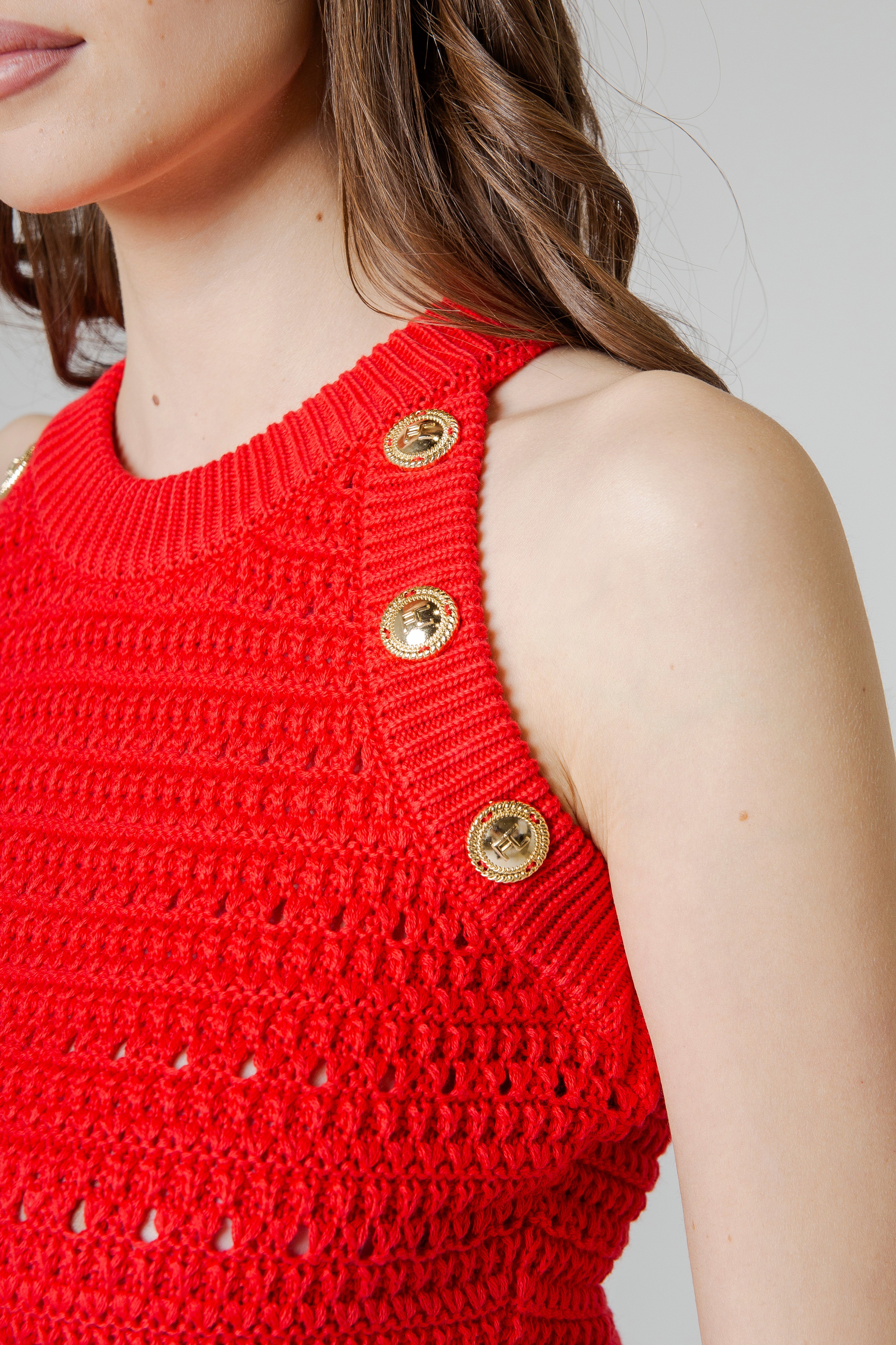 Essenziale nella linea, prezioso nei dettagli: il top senza maniche in maglia 100% cotone leggermente traforato firmato FC Flavio Castellani è la perfetta sintesi tra naturalezza e raffinatezza.
